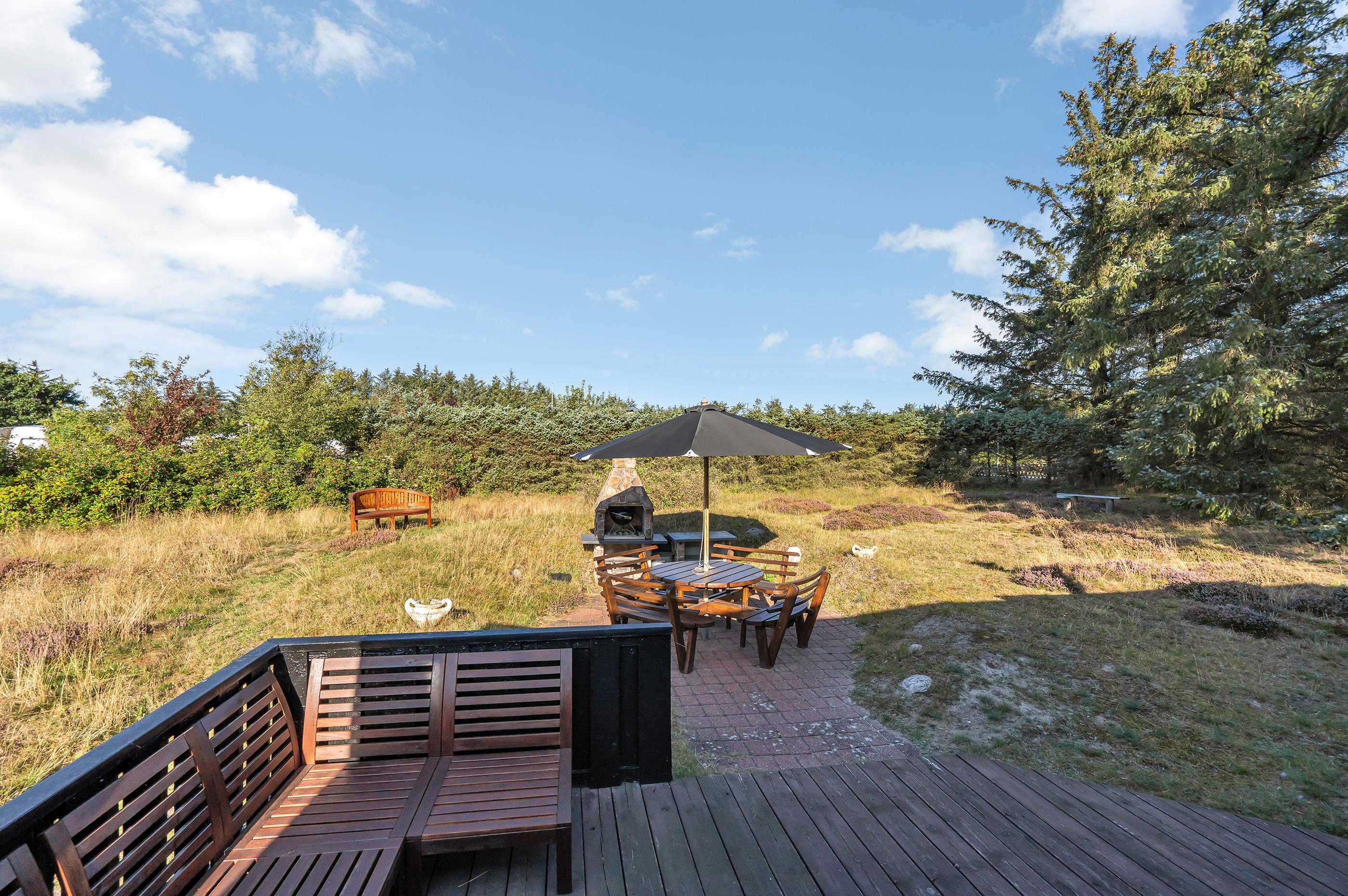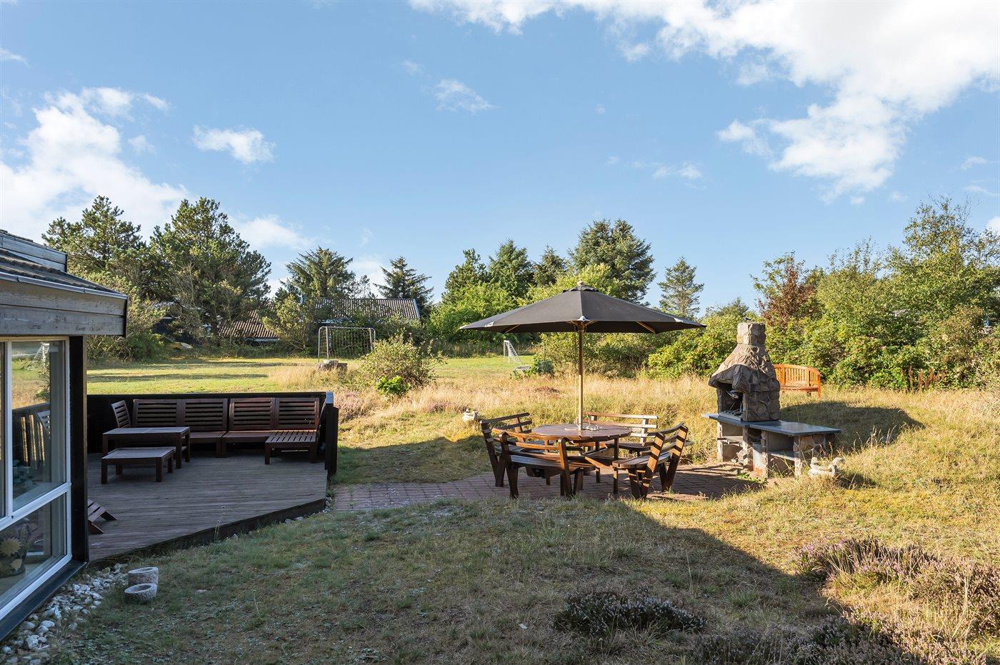 Ferieboligen er beliggende på en 2576 m² stor naturgrund. Der er 1500 m til havet. Nærmeste forretning er beliggende i en afstand af 3000 m. Til ferieboligen hører 50 m² terrasseareal. Trampolin. Fodboldmål. Grill til rådighed. Parkering ved ferieboligen.