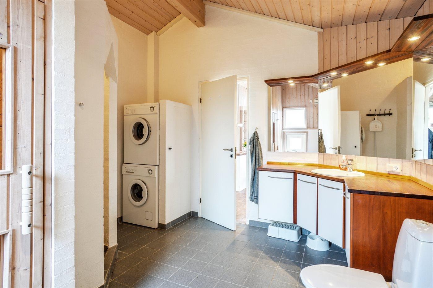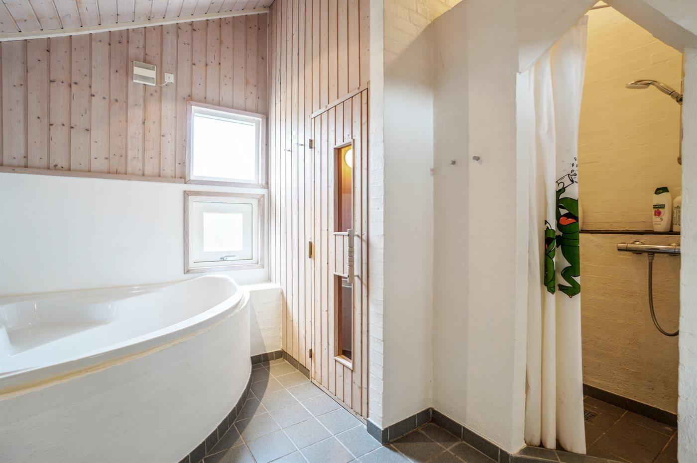 Der er 1 badeværelse med gulvvarme, bruseniche samt badekar og 1 badeværelse med gulvvarme og bruseniche. I saunaen er der mulighed for afslapning.