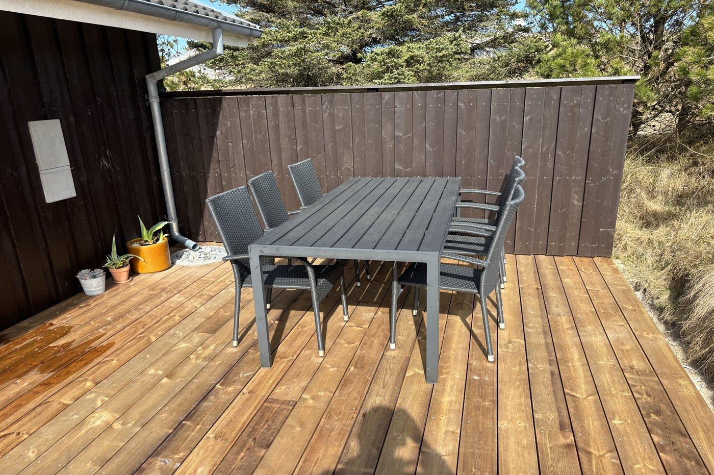 Ferieboligen er beliggende på en 1534 m² stor naturgrund. Der er 700 m til havet. Nærmeste forretning er beliggende i en afstand af 2500 m. Der er en golfbane i en afstand af 10000 m. Til ferieboligen hører åbent terrasseareal. Gynge. Grill til rådighed. Der er installeret stik til opladning af elbil. Parkering ved ferieboligen.