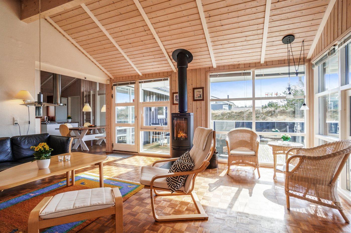 Rummeligt sommerhus nær Saltum strand med sauna, brændeovn og oplader til elbil.