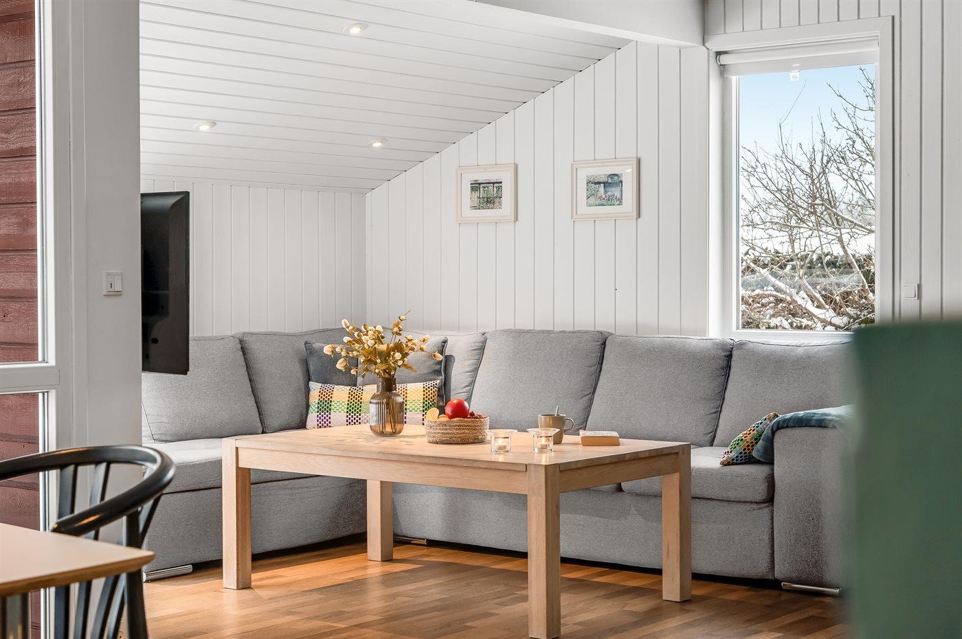 Huset er meget velholdt og indretningen er lys med en hyggelige atmosfære og moderne møbler. Her er der plads til hyggeligt samvær med familie og venner.