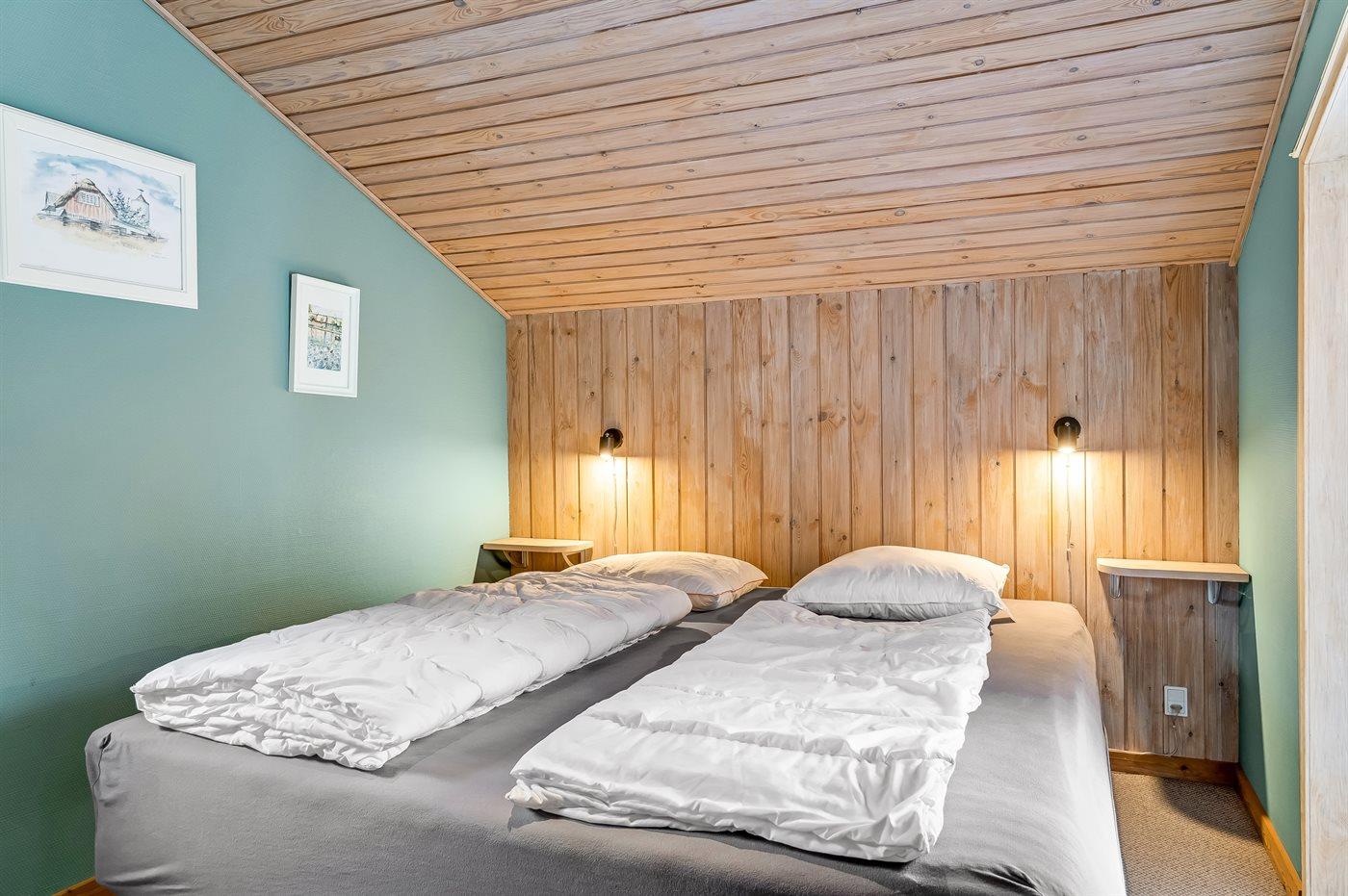 Der er i alt 4 soveværelser. Sovepladserne fordeler sig på: 4 sovepladser i dobbeltsenge. 2 sovepladser i enkeltsenge. Derudover er der 1 stk. barneseng.