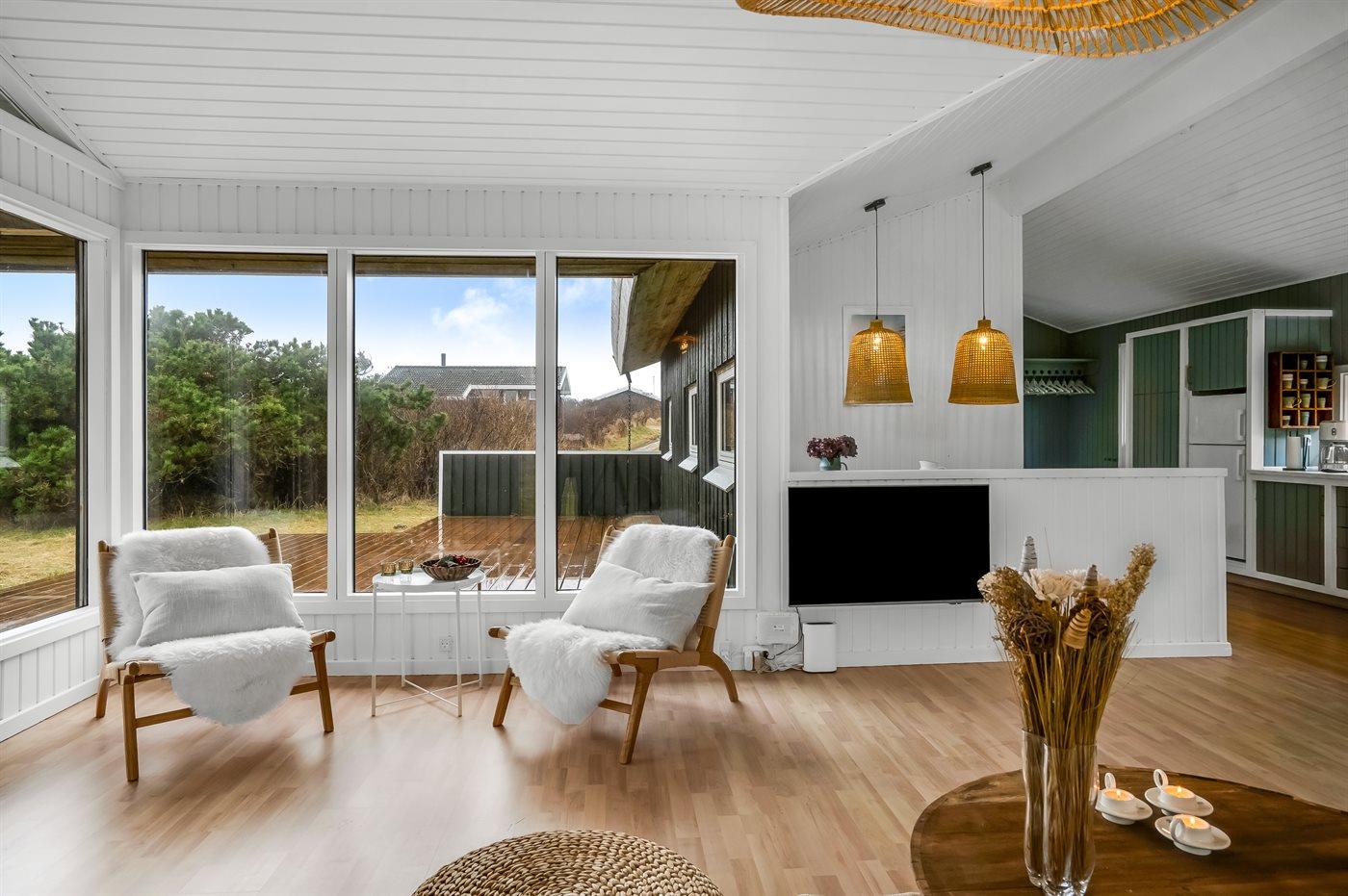 Beliggende på en fantastisk naturgrund, kun 200 meter fra den brede sandstrand og det brusende Vesterhav, er huset ideelt for både badeferier, lange gåture langs kysten og afslapning i rolige omgivelser.