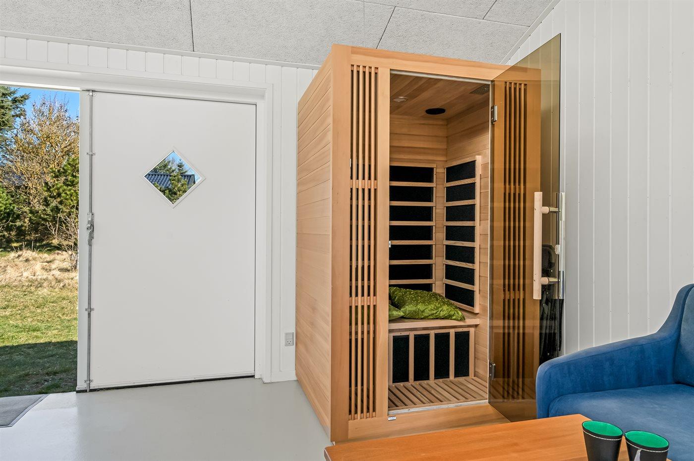 Der er 1 badeværelse med bruseniche og 2 toiletter, heraf 1 gæstetoilet. Der er gulvvarme på 1 badeværelse. Der er gulvvarme på gæstetoilettet. I den infrarøde sauna er der mulighed for afslapning.