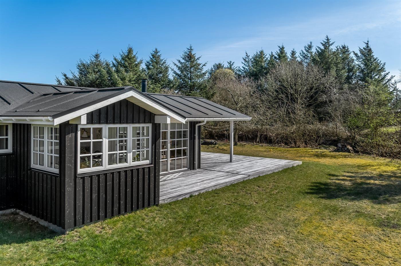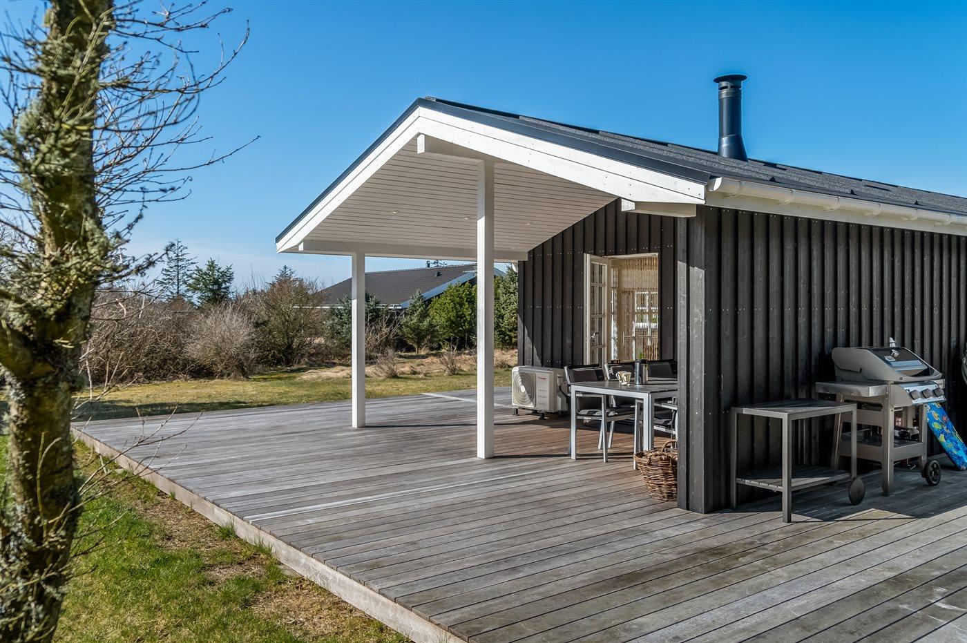 Ferieboligen er beliggende på en 5188 m² stor naturgrund. Der er 1000 m til havet. Nærmeste forretning er beliggende i en afstand af 4000 m. Der er en golfbane i en afstand af 12000 m. Til ferieboligen hører åbent terrasseareal. Desuden er der overdækket terrasse. Der er redskabsrum. Sandkasse. Fodboldmål. Der ligger en legeplads i en afstand af 4000 m. Udendørs bruser. Grill til rådighed. Der er installeret stik til opladning af elbil. Type 2 stik. Med 16 kW ladeeffekt. Parkering ved ferieboligen.