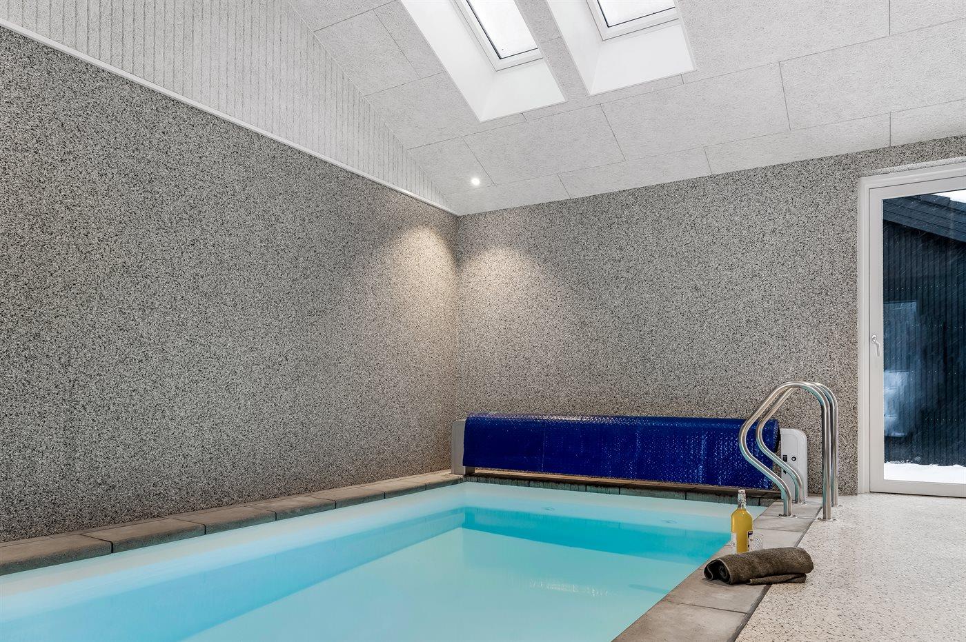 I den indendørs swimmingpool er der mulighed for leg og hyggeligt samvær. Swimmingpoolen måler op til 2,8 m i bredden, 5 m i længden og den er op til 1,3 m dyb. Vandet er mellem 24 og 28° C varmt. Der er gulvvarme i swimmingpoolområdet.