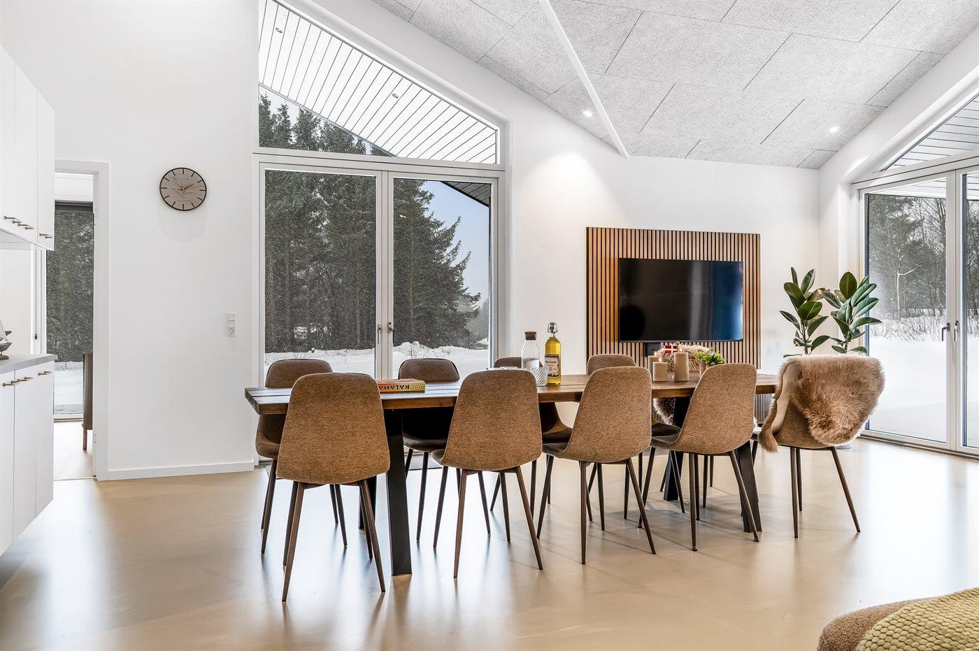 Sommerhuset er opført i høj kvalitet med sans for de små detaljer, og her er tænkt på både hygge og underholdning. Lyse rum, moderne indretning og store vinduespartier skaber en dejlig atmosfære.