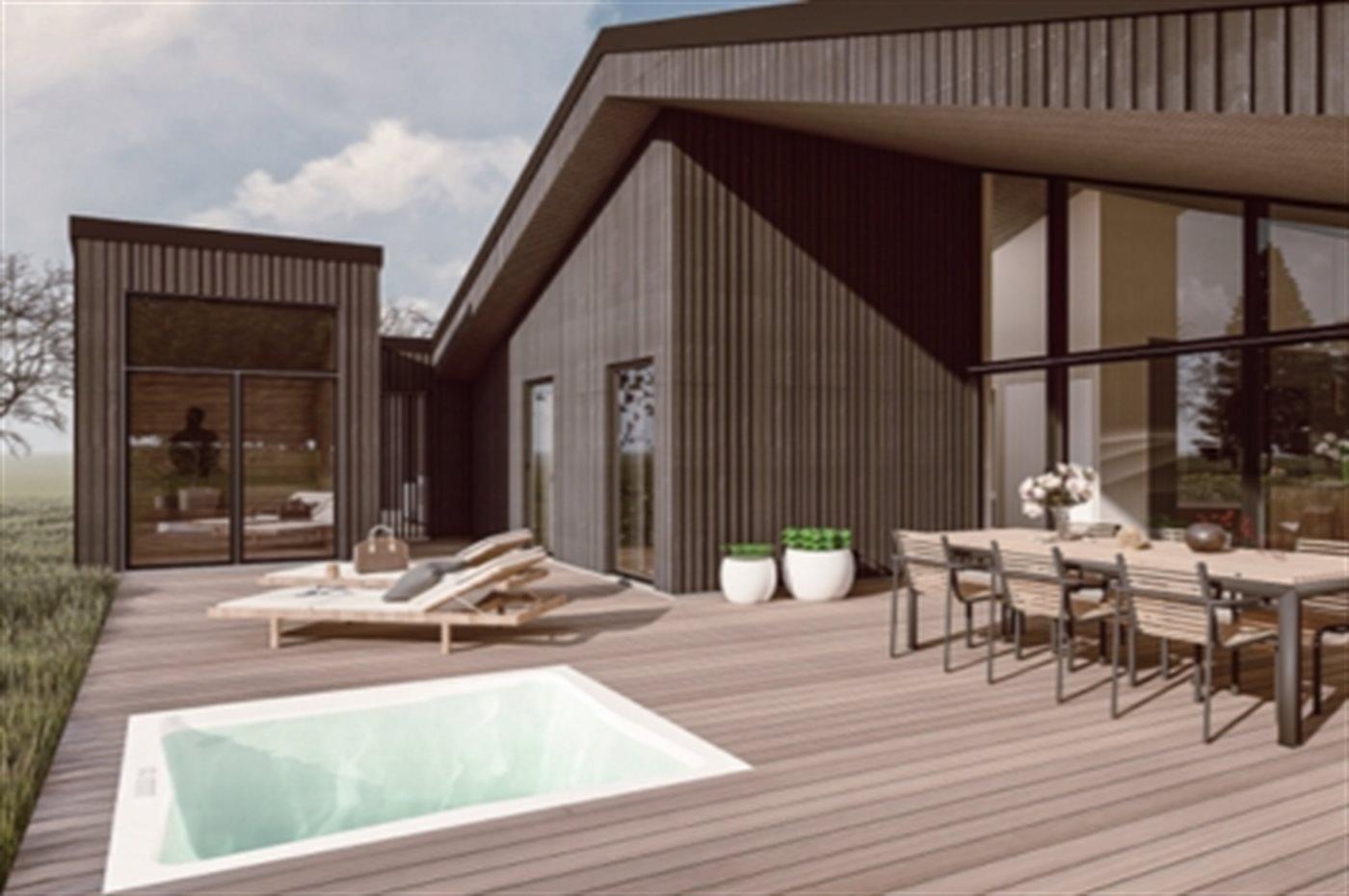 Bemærk, at de viste billeder er computer-genererede og kan afvige fra det endelige resultat. Udendørs spa og udendørs bruser kan benyttes i perioden fra den 01.04 til den 10.01.
