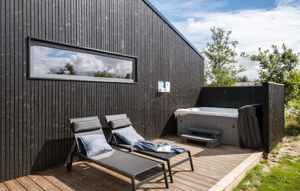 Det attraktive udendørsområde er perfekt til afslappende øjeblikke. Nyd morgenmaden på den overdækkede terrasse, grill på sommeraftenerne eller læn jer tilbage i liggestolene. Vil I nyde ferien lidt ekstra, er der et udendørs spabad, hvor I kan sætte jer til rette sidst på dagen.