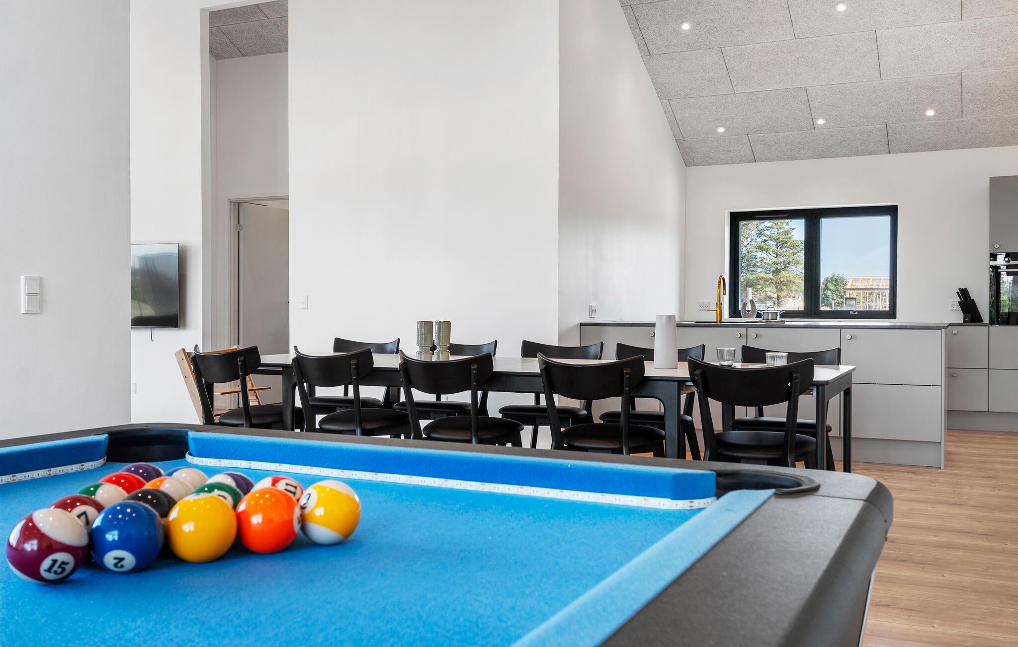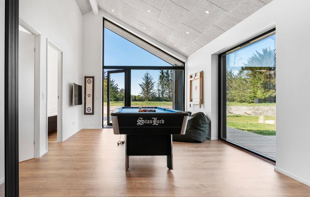 Hvis I er på udkig efter en rummelig og veludstyret bolig til et ophold med den udvidede familie eller flere vennefamilier, er I kommet til det helt rette sted. Dette fine hus ligger kun få kilometer fra stranden og flere familievenlige udflugtsmål, og indvendigt får I en lang række faciliteter til et sjovt og komfortabelt ophold på tværs af generationerne. Indretningen fremtræder flot og attraktivt med højt til loftet, materialer af høj kvalitet og et veludstyret køkken, hvor familiens kokke tage sig god tid med madlavningen til det store festmåltid. Efter aftensmaden kan I duellere ved pool-bordet eller forkæle jer selv med en aftentur i saunaen, mens I lægger planer for de kommende dage.