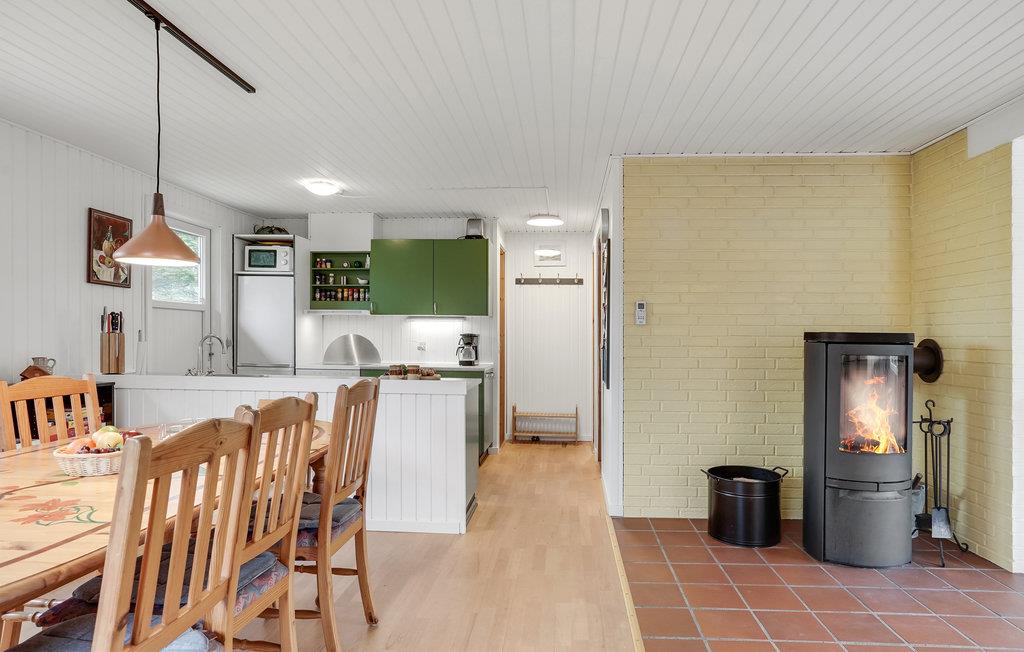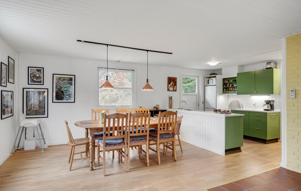 Det charmerende hus byder velkommen i en smuk, rolig beliggenhed på en ejendom omgivet af træer. De lyse værelser danner de ideelle rammer for en hyggelig ferie i en hjemlig atmosfære. Efter en begivenhedsrig dag inviterer den behagelige sofa til film- eller spilleaften, her kan I hygge jer sammen, mens flammerne knitrer i brændeovnen. Nyd solen udenfor huset, mens jeres børn leger og boltrer sig i haven. Afslut dagen med en lækker grillmiddag på terrassen og nyd de lange sommeraftener.