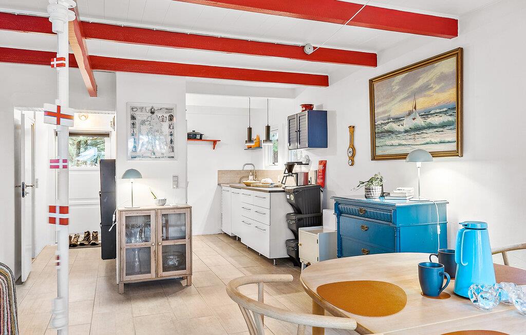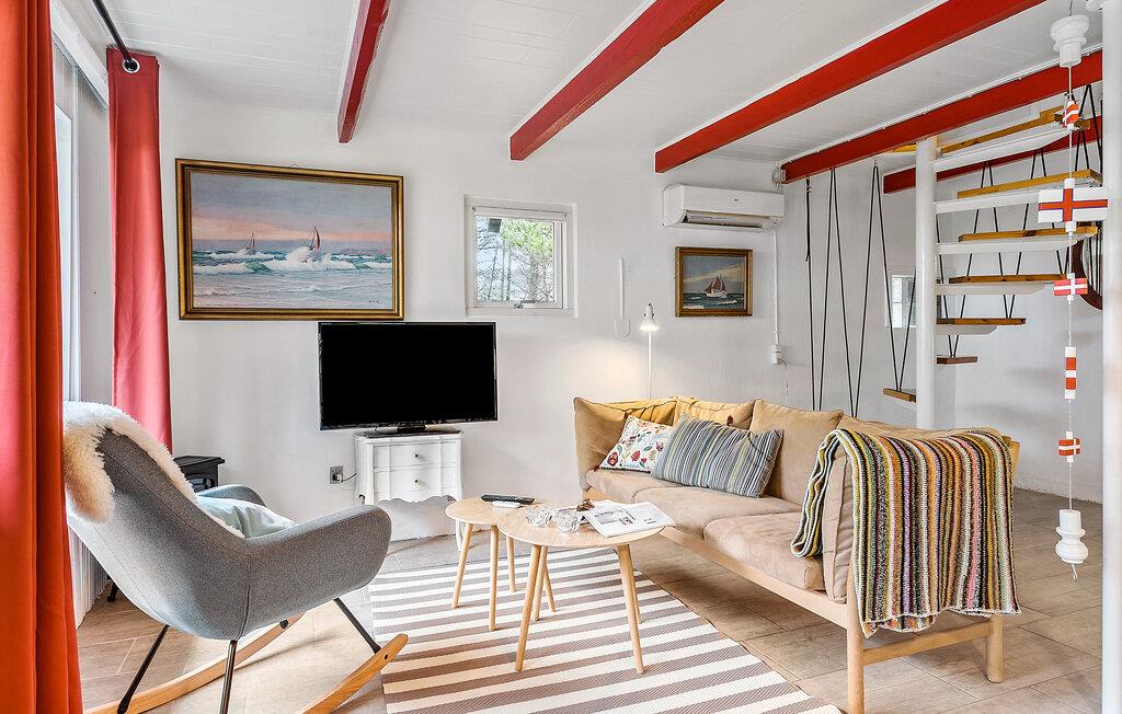 Velkommen til dette hyggelige hus i to etager, der ligger i et roligt område på en stor naturgrund. Indvendigt emmer det af idyl med rød-hvide farver og maritim kunst på væggene, der sammen med det åbne boligkoncept og de rustikke møbler gør det nemt at slappe af her. Køkkenet er stort og veludstyret, så gør madlavningen til et sjovt fællesprojekt og dæk op ved spisebordet til det store festmåltid.