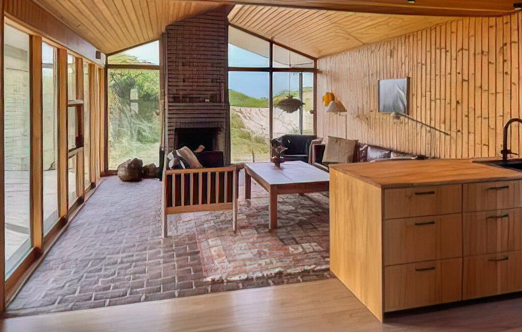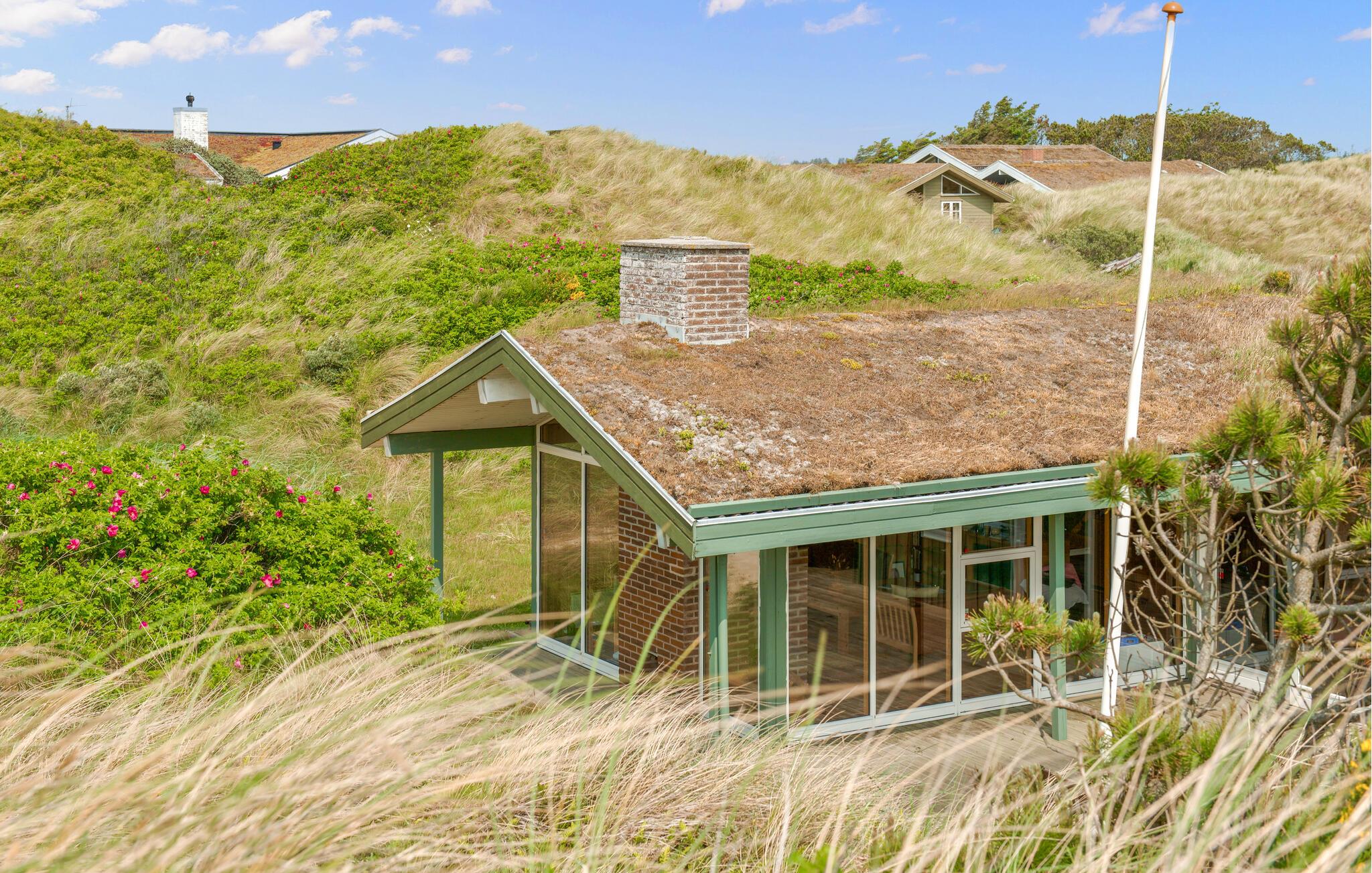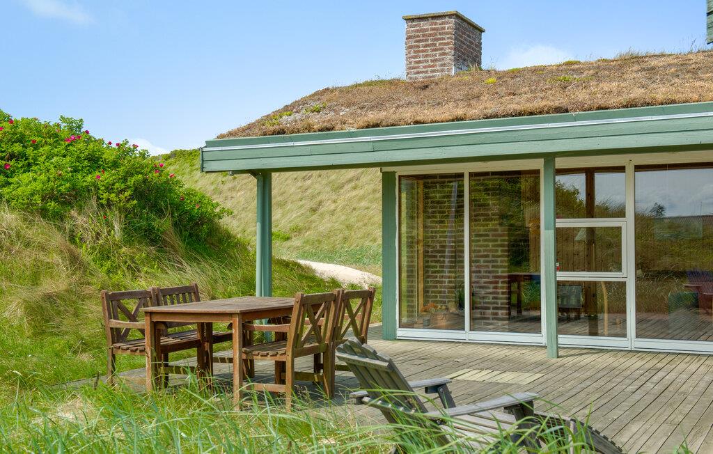 Nyd jeres tid i dette charmerende hus med græstag, beliggende i et fantastisk klitlandskab. Tilbring jeres tid i den hyggelige opholdsstue med brændeovn og store vinduer. Lad blikket vandre over naturen eller slap af på sofaerne med en bog eller en film. Indretningen er præget af naturskønne materialer med træ, varme farver og gennemtænkte detaljer, der skaber en hyggelig atmosfære. Lav mad sammen i det åbne køkken i træstil, og nyd måltiderne i den lyse spisestue med udsigt over klitterne. Der er en sauna til afslapning.