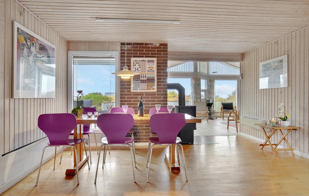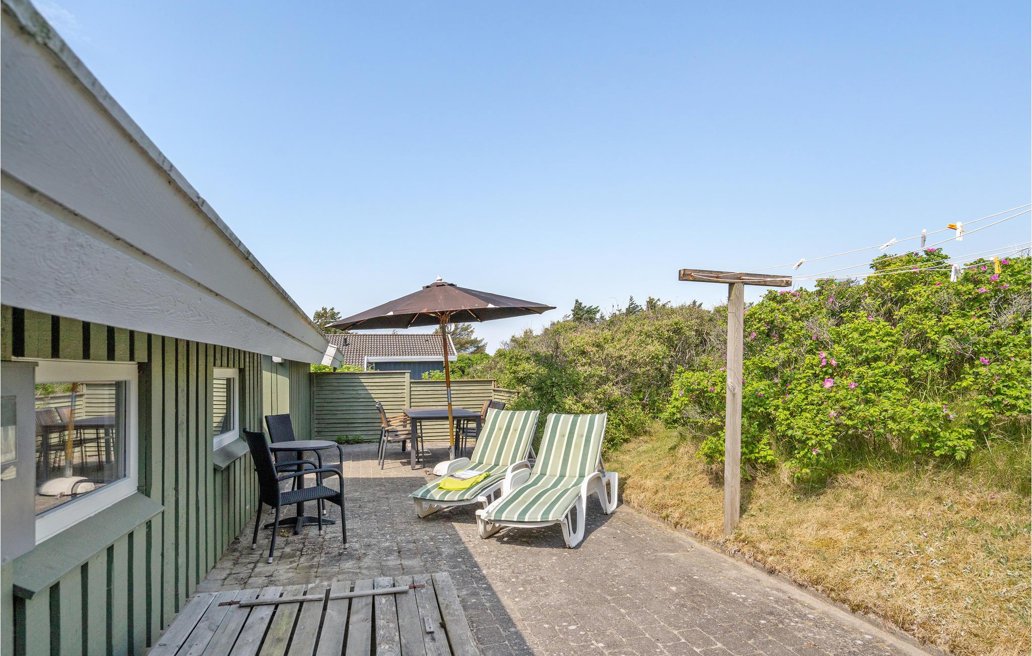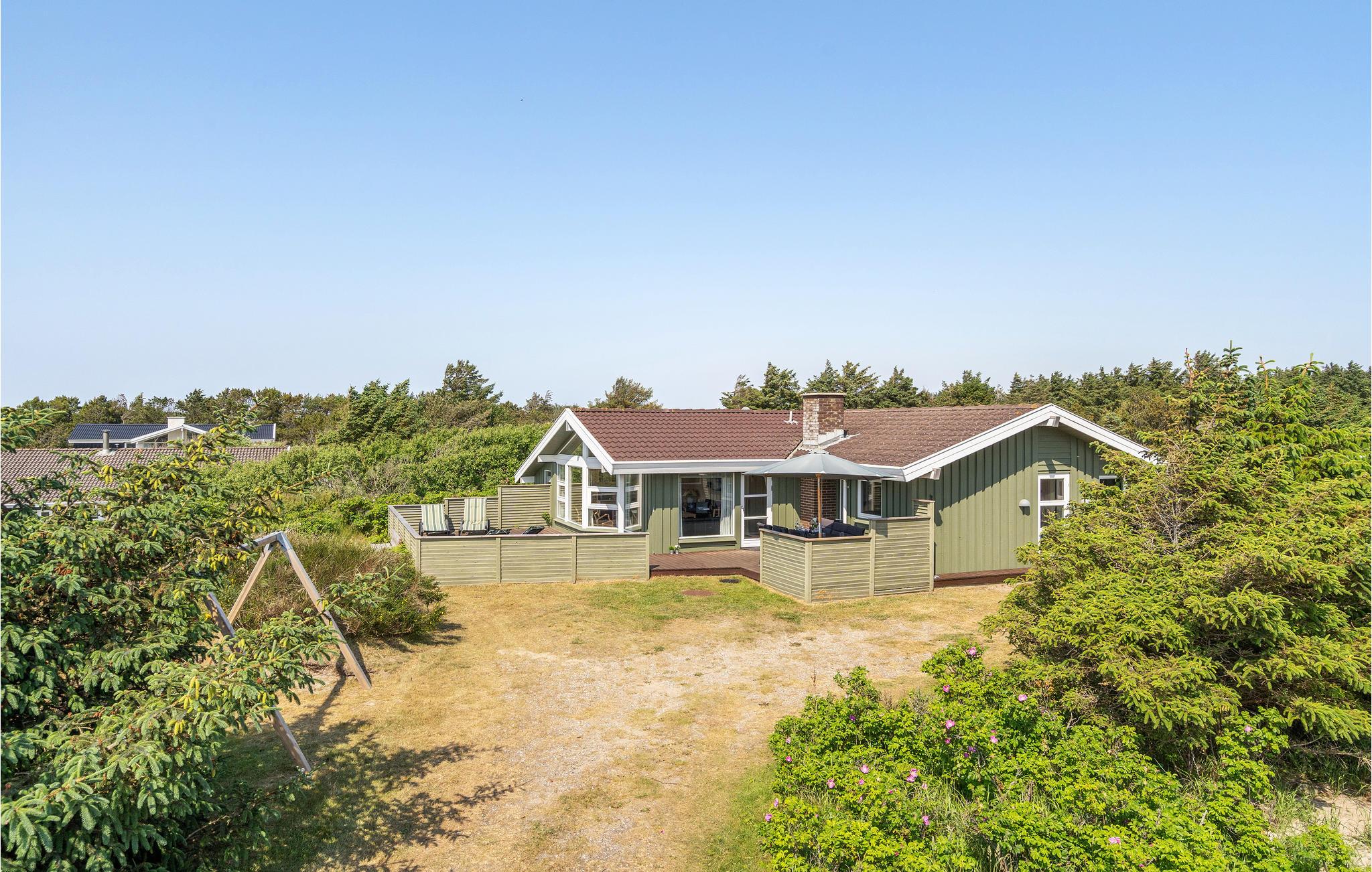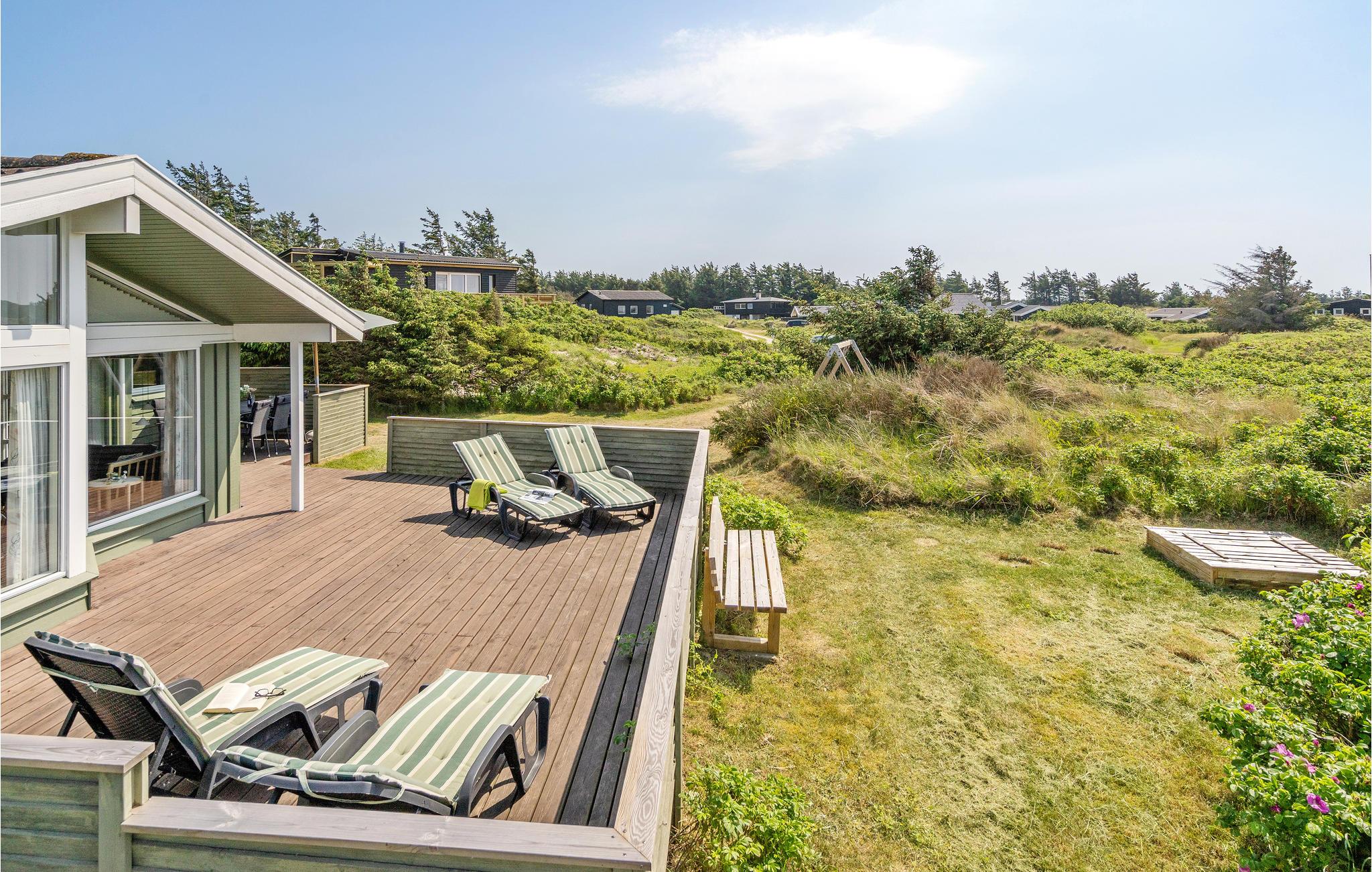 I et roligt og naturskønt område få minutters gang fra Vesterhavet ligger dette velindrettede og moderne feriehus. Det er omgivet af flotte og funktionelle træterrasser med gode muligheder for at finde læ og nyde solen på de dejlige sommerdage. Huset er nydeligt indrettet med store vinduespartier, således at der fra stuen er en udmærket udsigt til havet. I stuen er der i øvrigt flotte trægulve. Et skønt og rigt udstyret feriehus med plads til to familier.