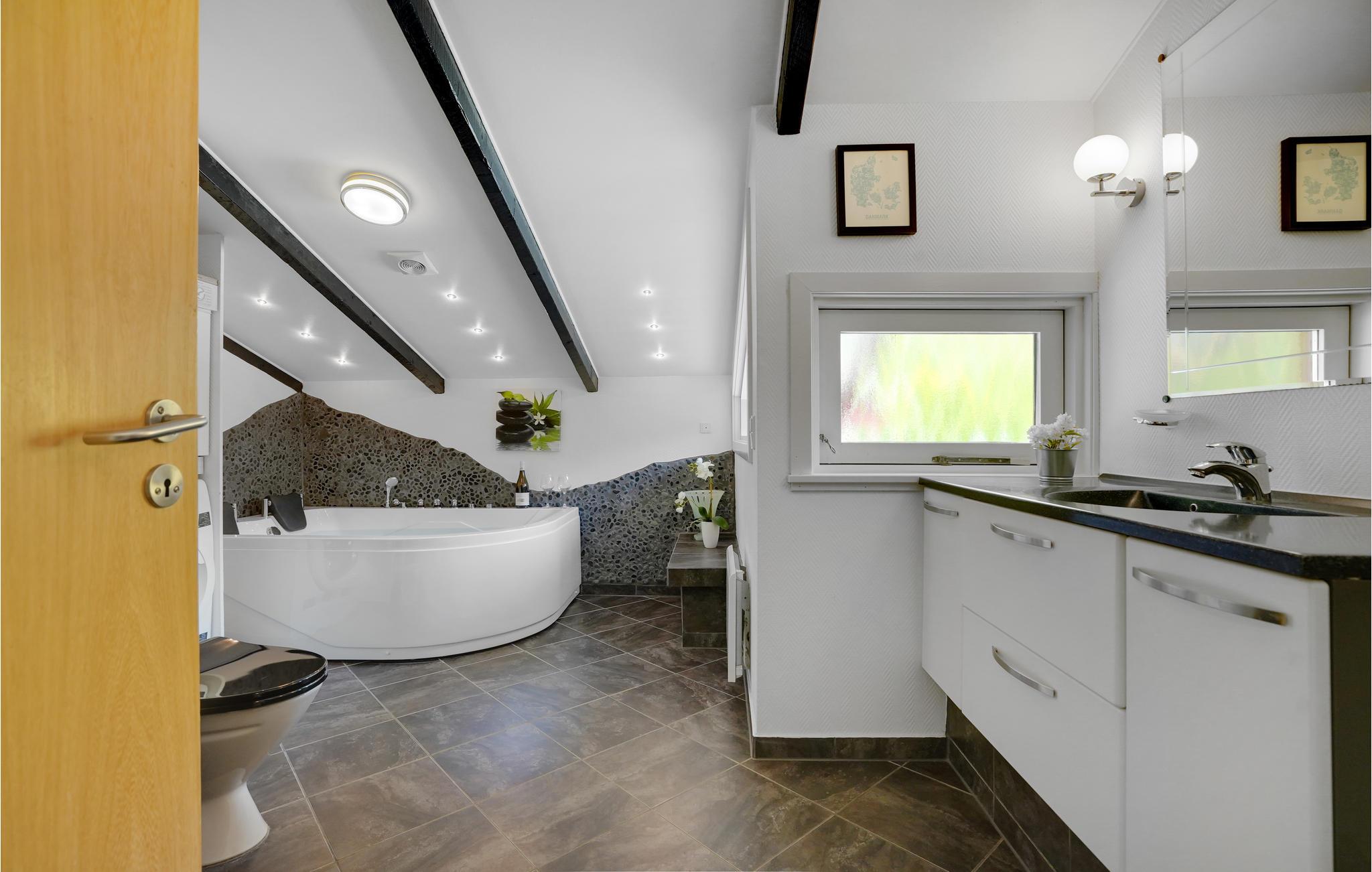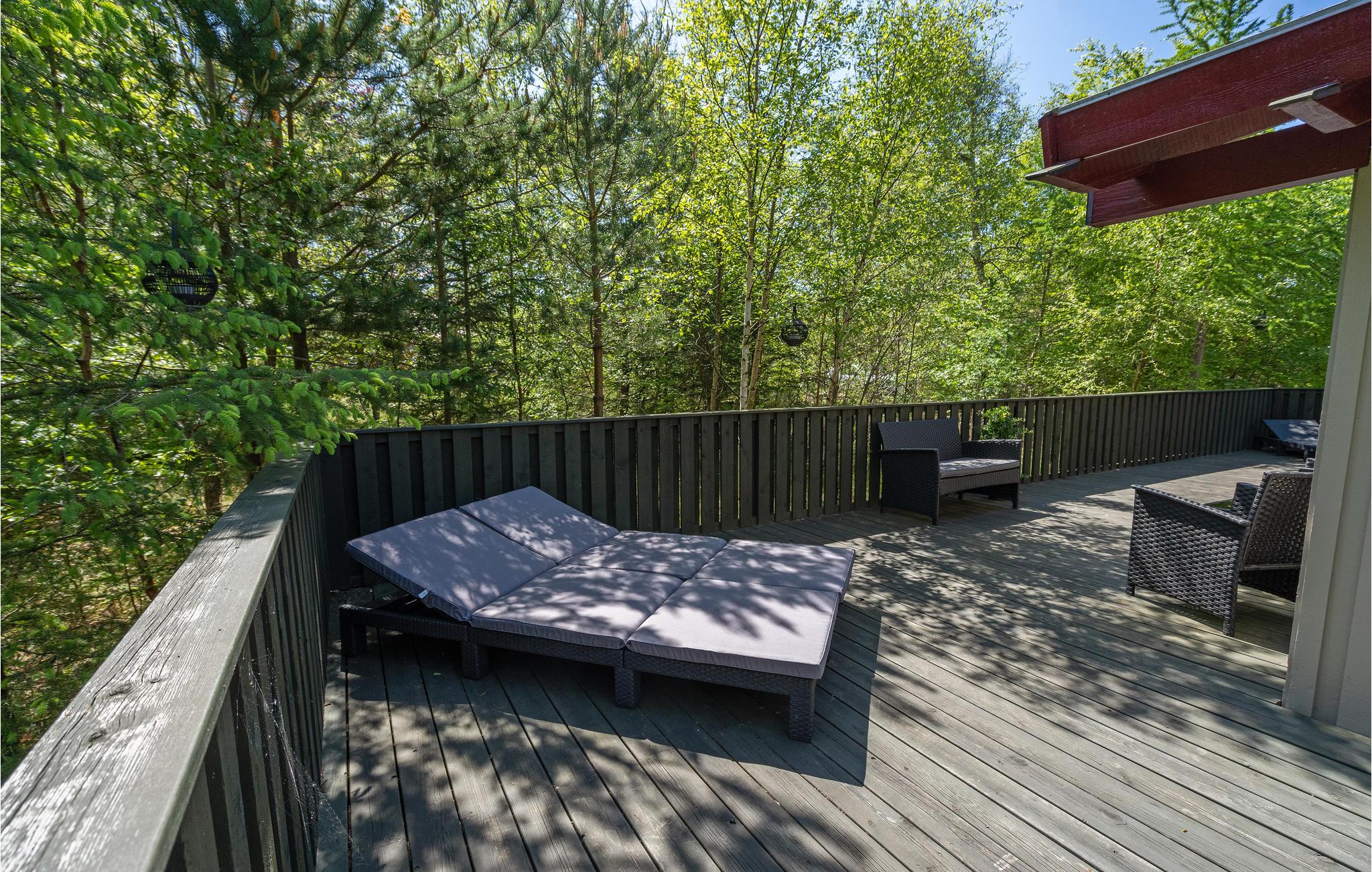 Nyd ferien i det rummelige køkken/alrum med skønt lysindfald og 2 udgange til terrasserne og naturen. Der er en skøn spiseplads, dejlig sofagruppe og en hyggekrog med 2 gode lænestole. Der er 3 indbydende værelser med gode senge og et dejligt stort nyere badeværelse med spabad.