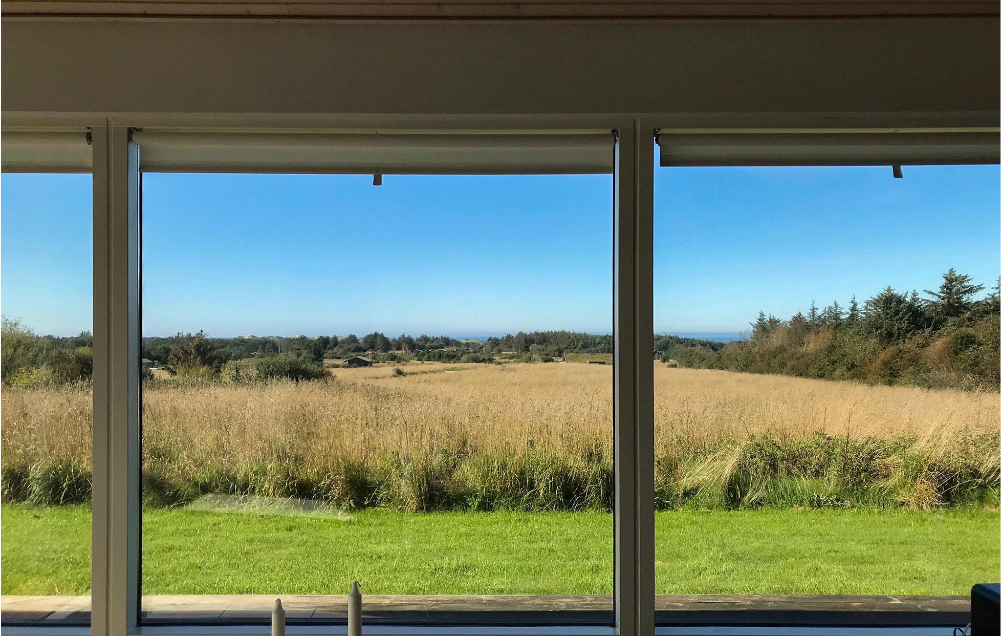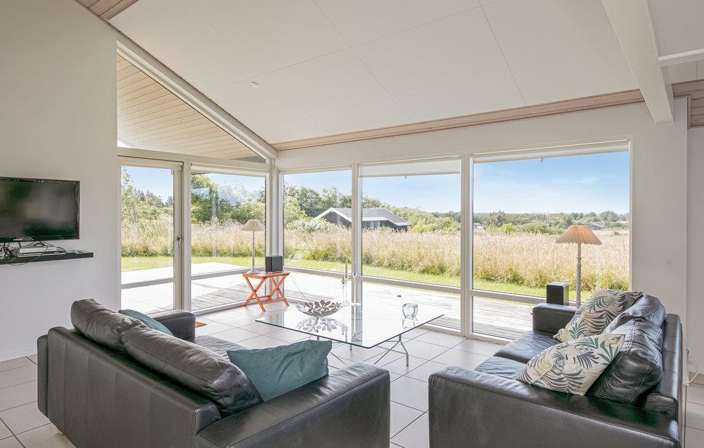 Højtbelligende på en dejlig naturgrund med udsigt til Vesterhavet ligger dette særdeles velindrettede og lyse sommerhus.