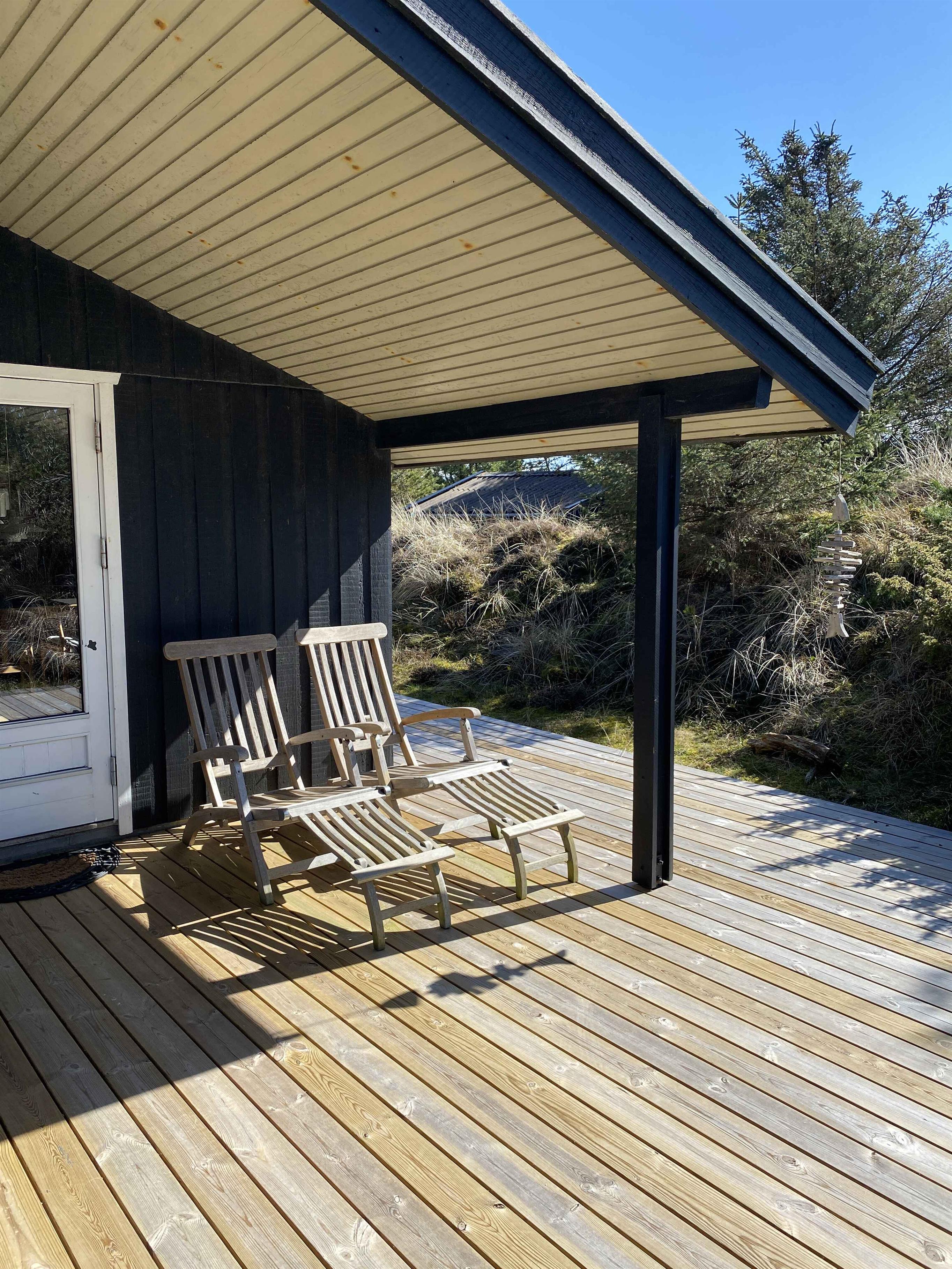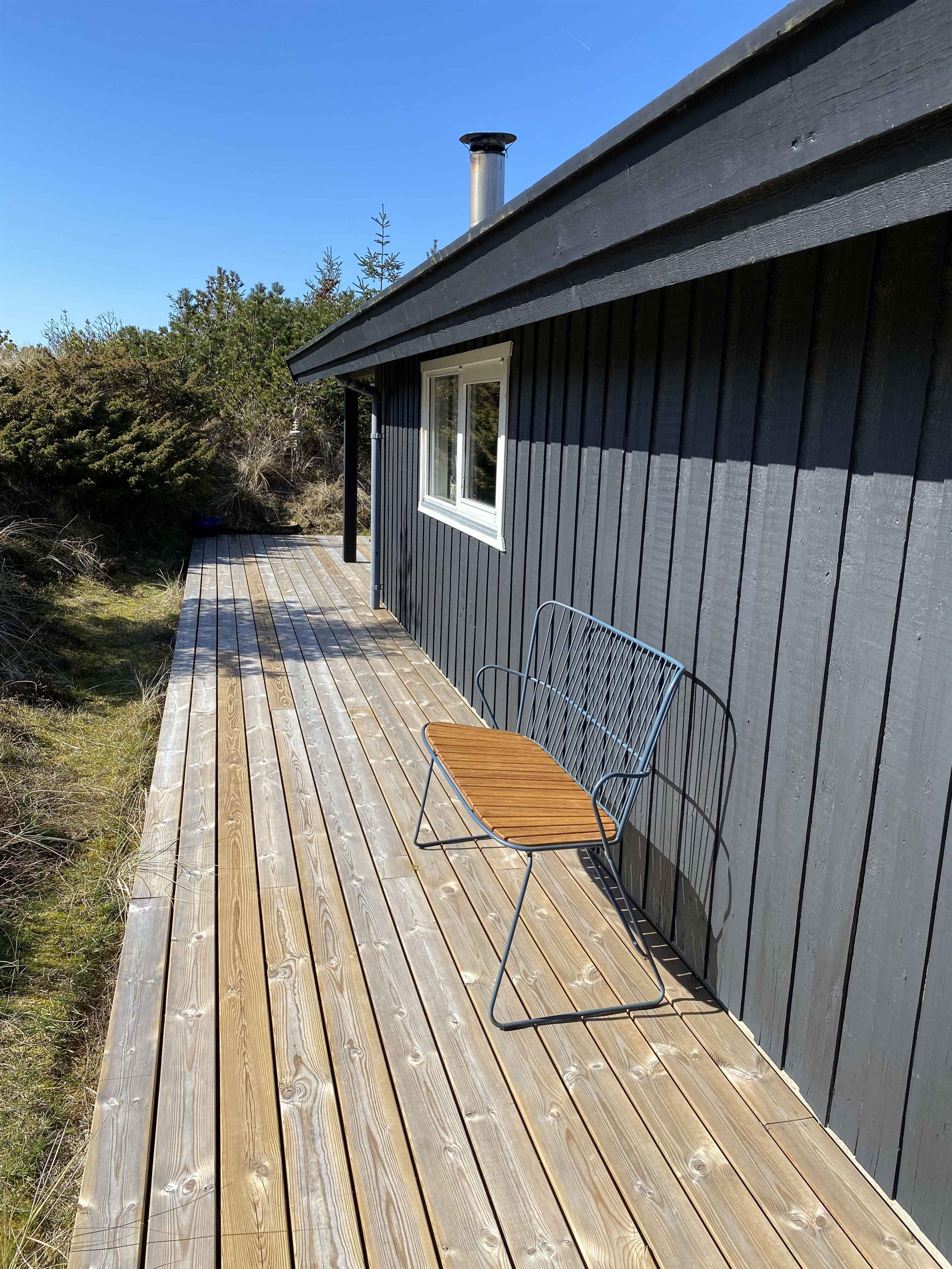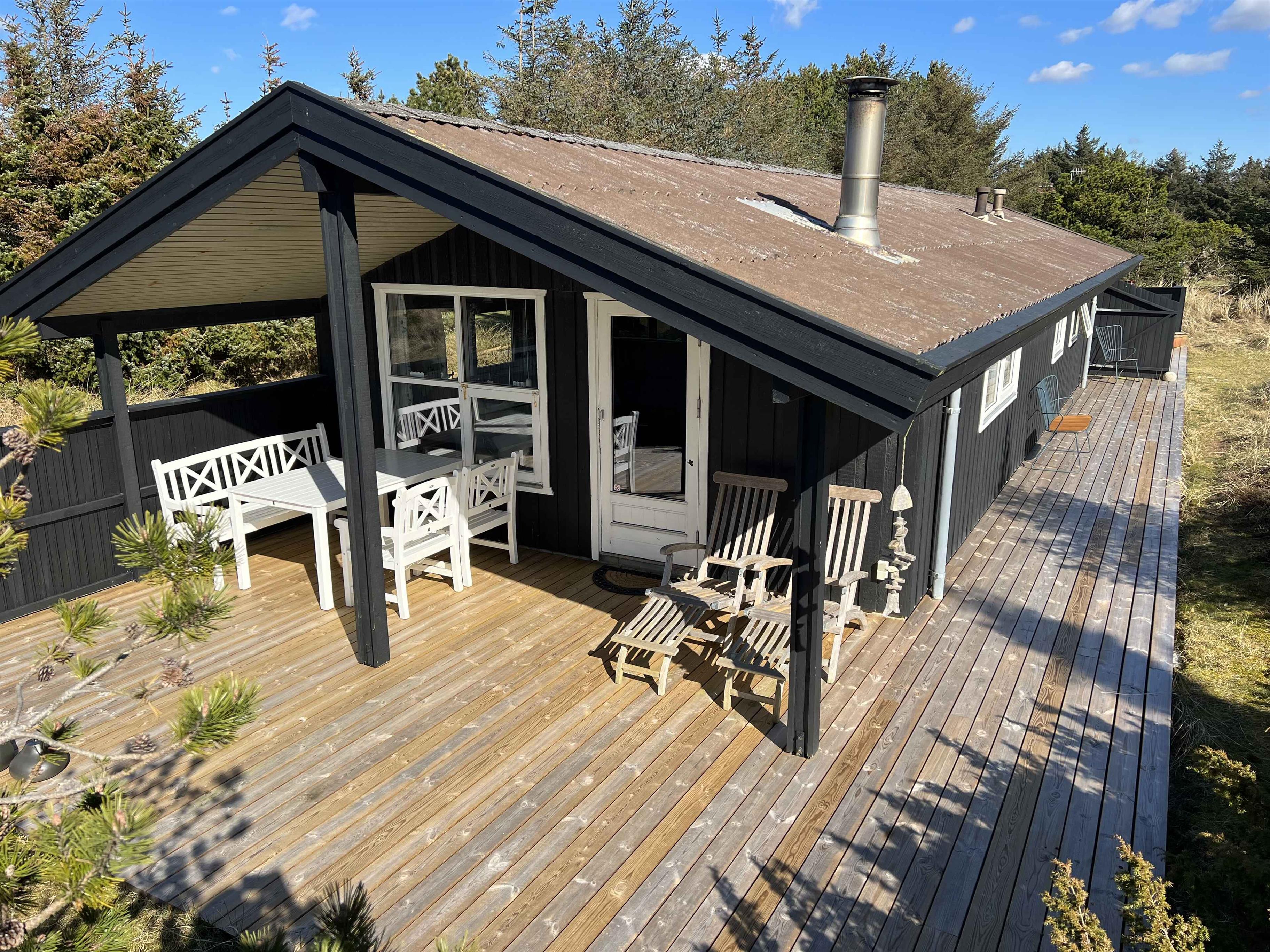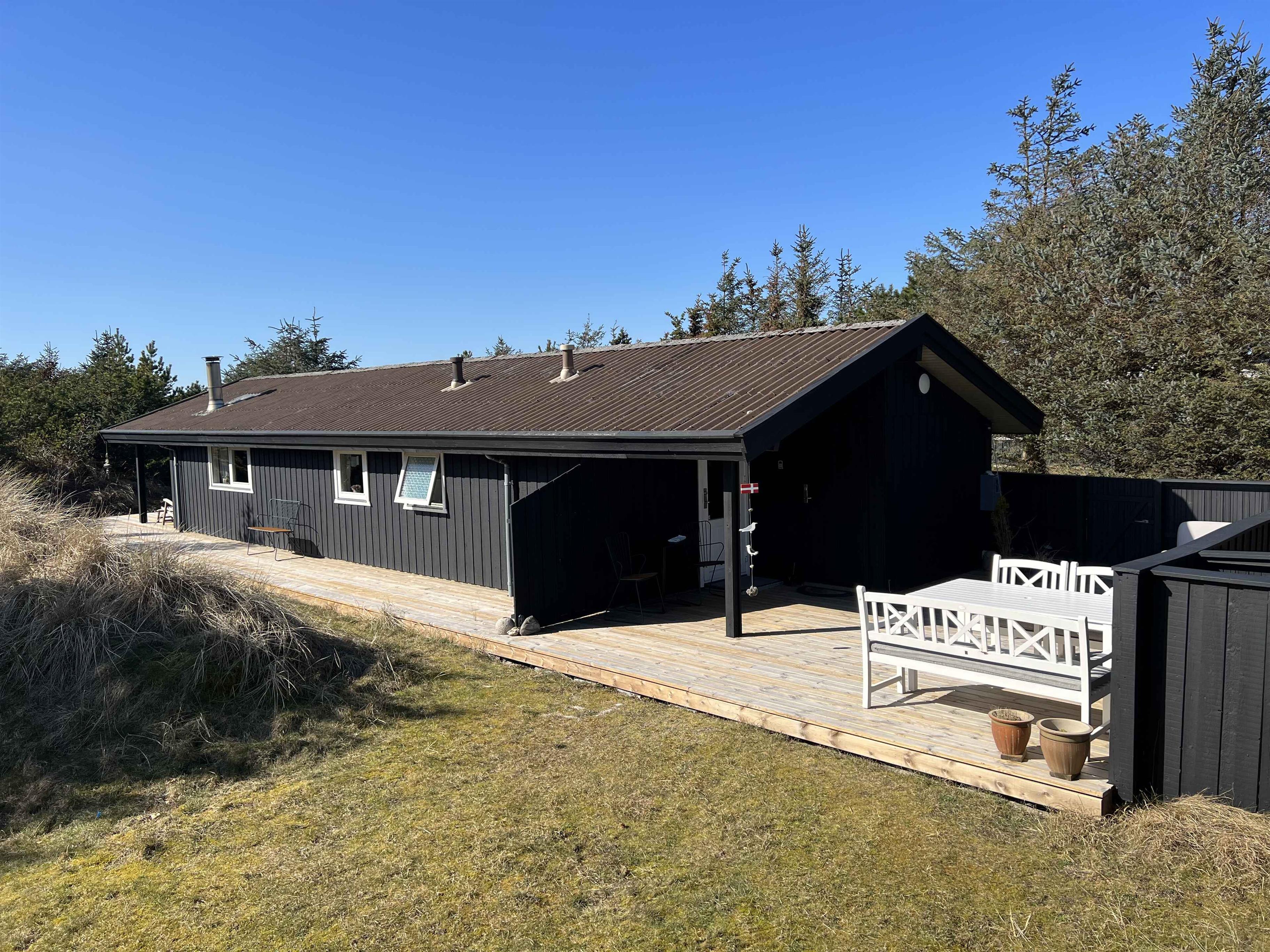Lyst og indbydende feriehus på ugeneret klitgrund ca. 1600 m², tæt på skov og strand (700 m). Stue med brændeovn og udgang til stor overdækket sydvestterrasse samt delvist overdækket sydøstterrasse. Nyt terrasse 2022 og gulv 2023.