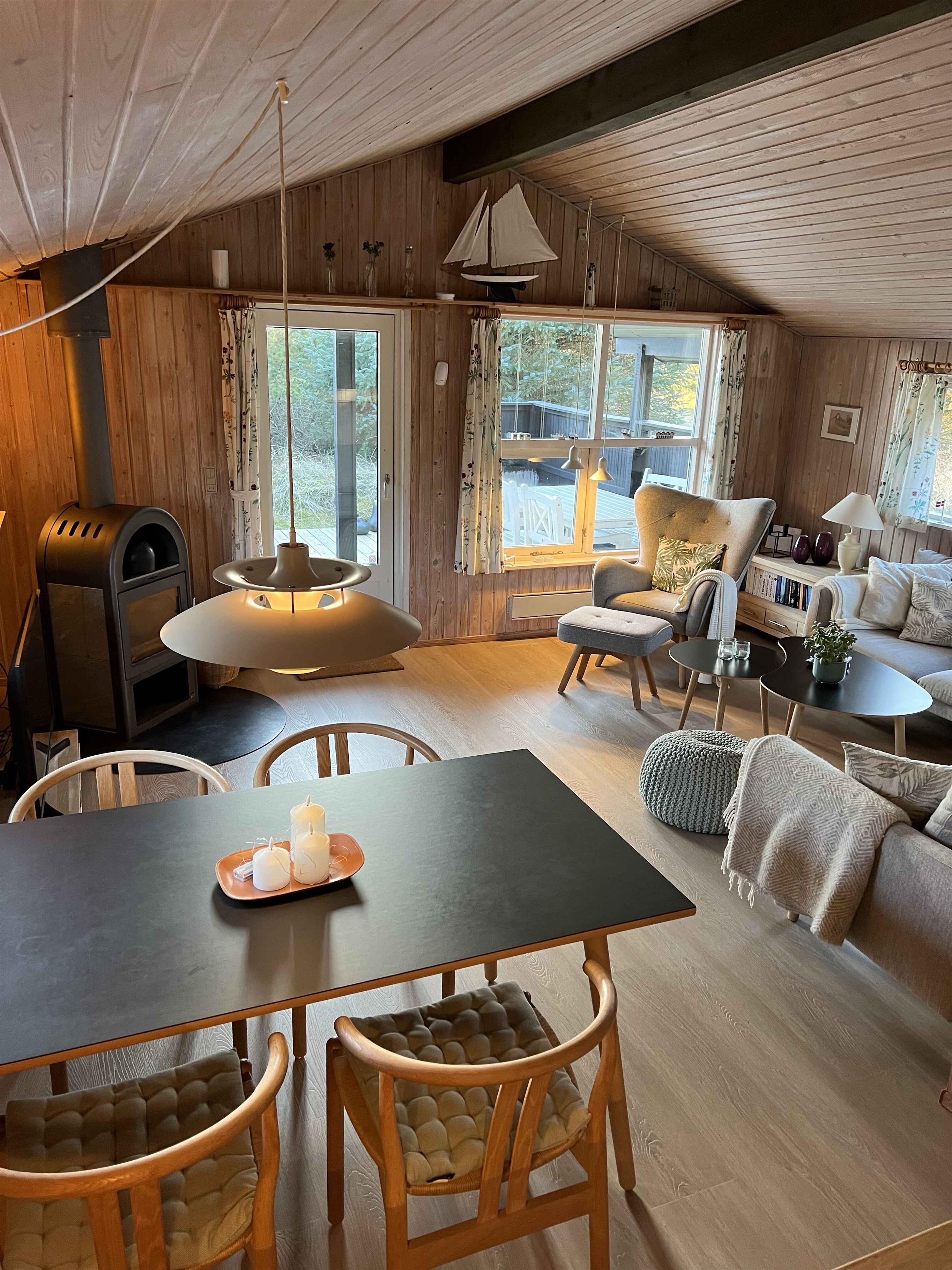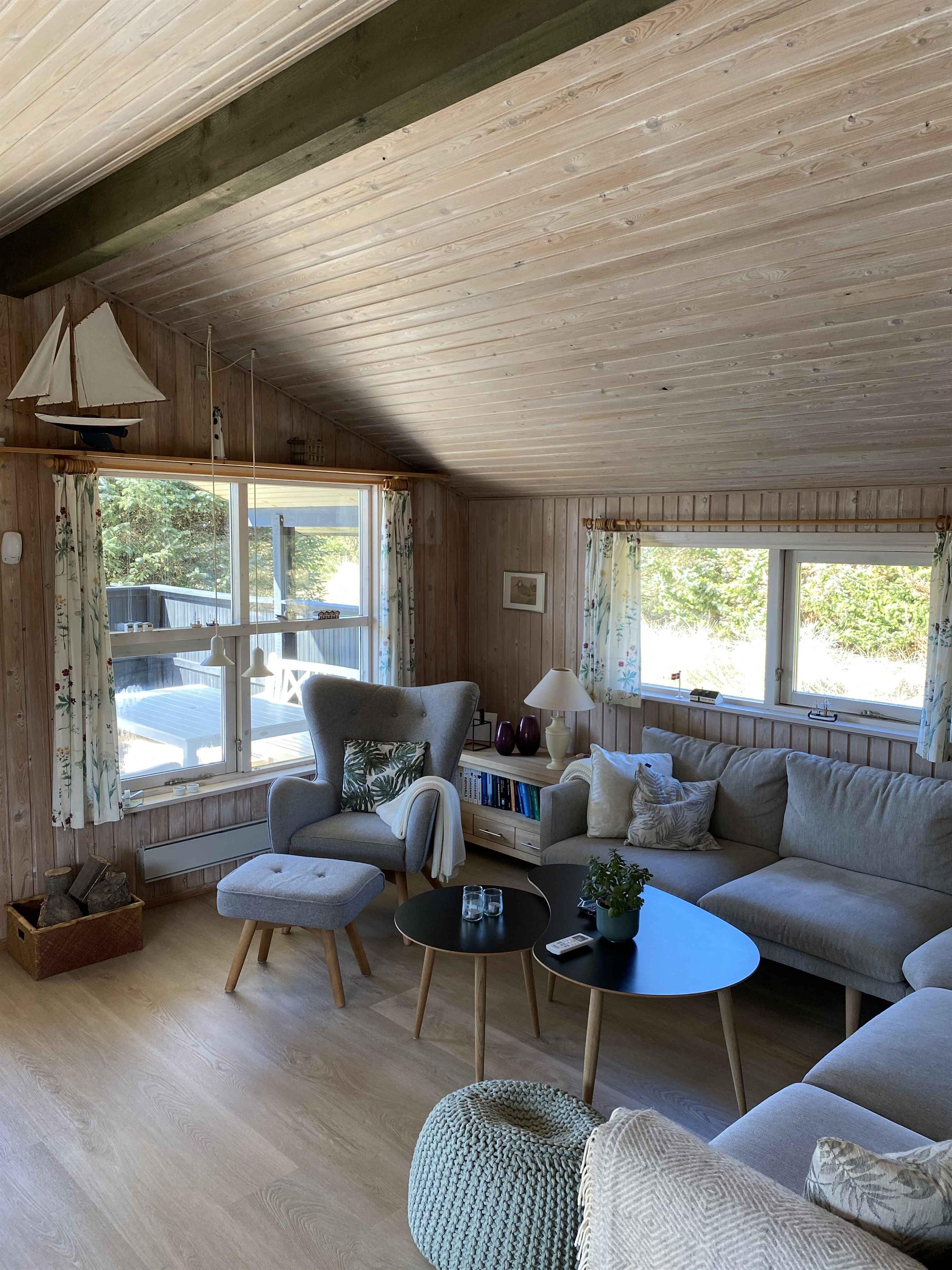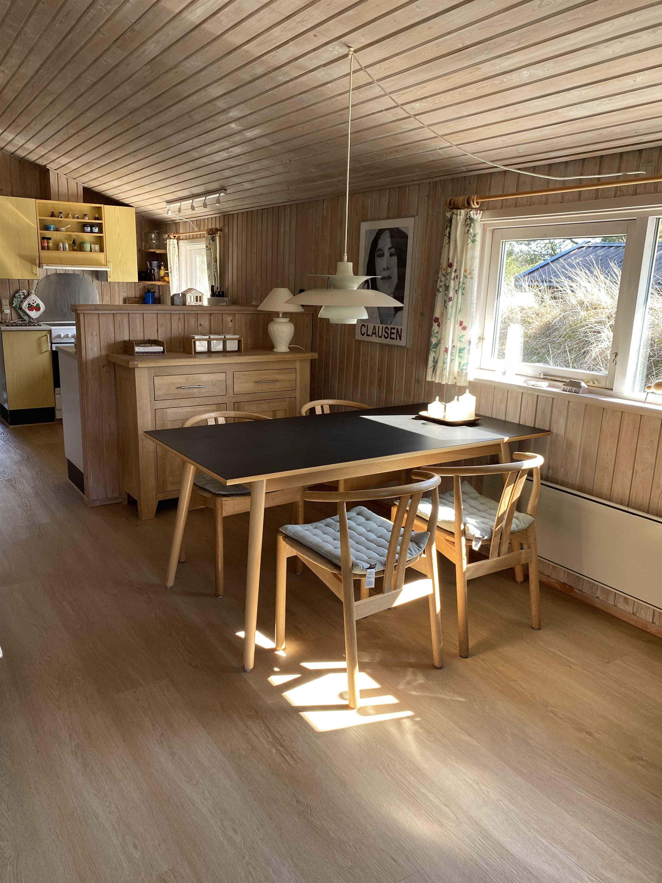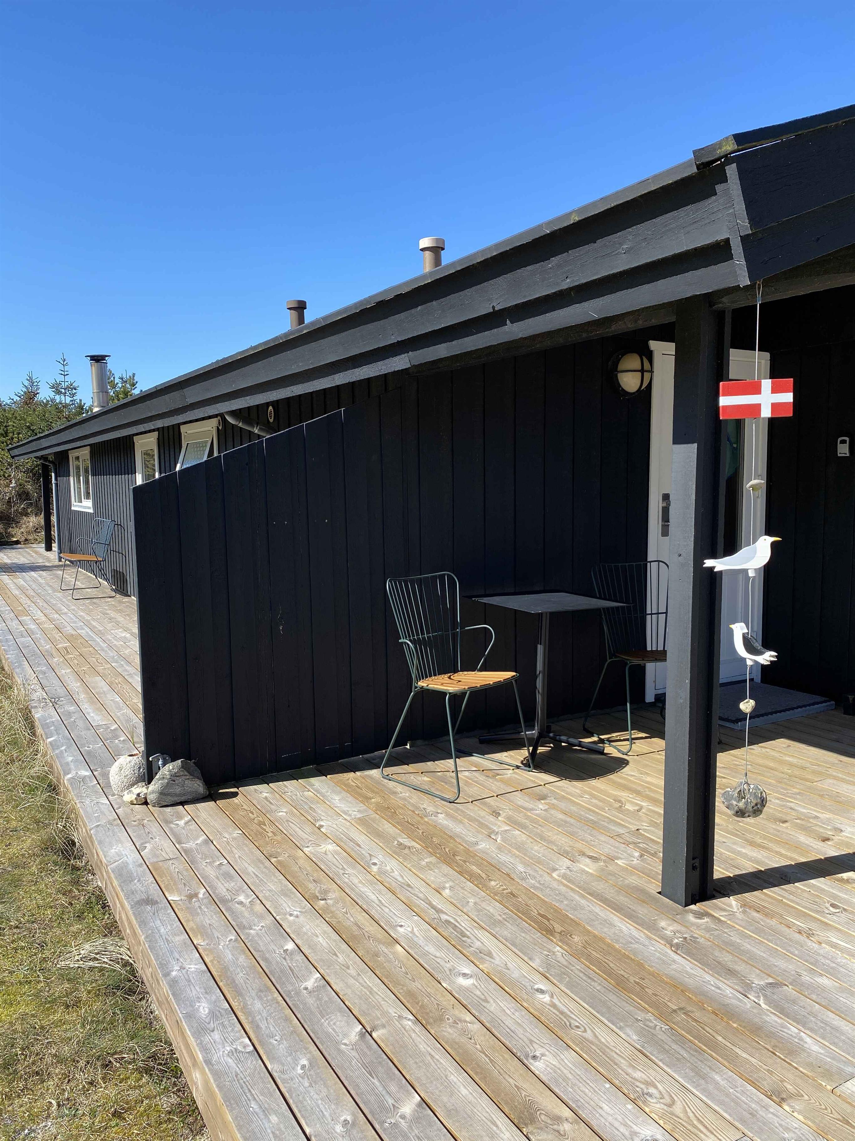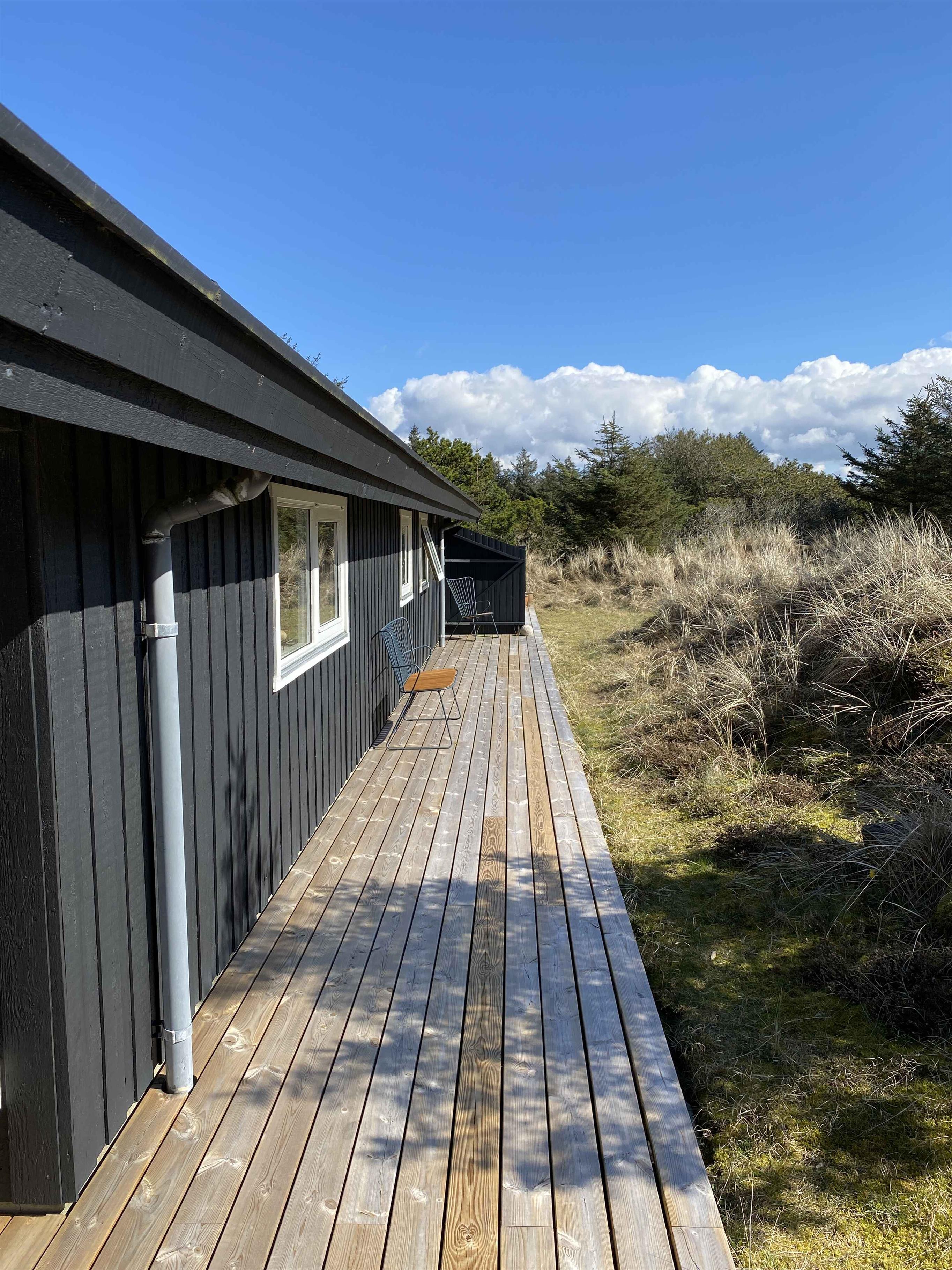 Lyst og indbydende feriehus på ugeneret klitgrund ca. 1600 m², tæt på skov og strand (700 m). Stue med brændeovn og udgang til stor overdækket sydvestterrasse samt delvist overdækket sydøstterrasse. Nyt terrasse 2022 og gulv 2023.