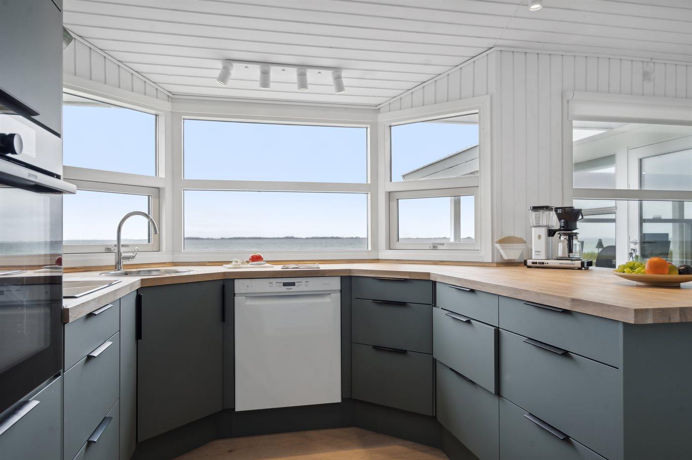 Køkkenet er udstyret med 1 køleskab. Der er 4 induktionskogeplader, bageovn, mikrobølgeovn samt opvaskemaskine.