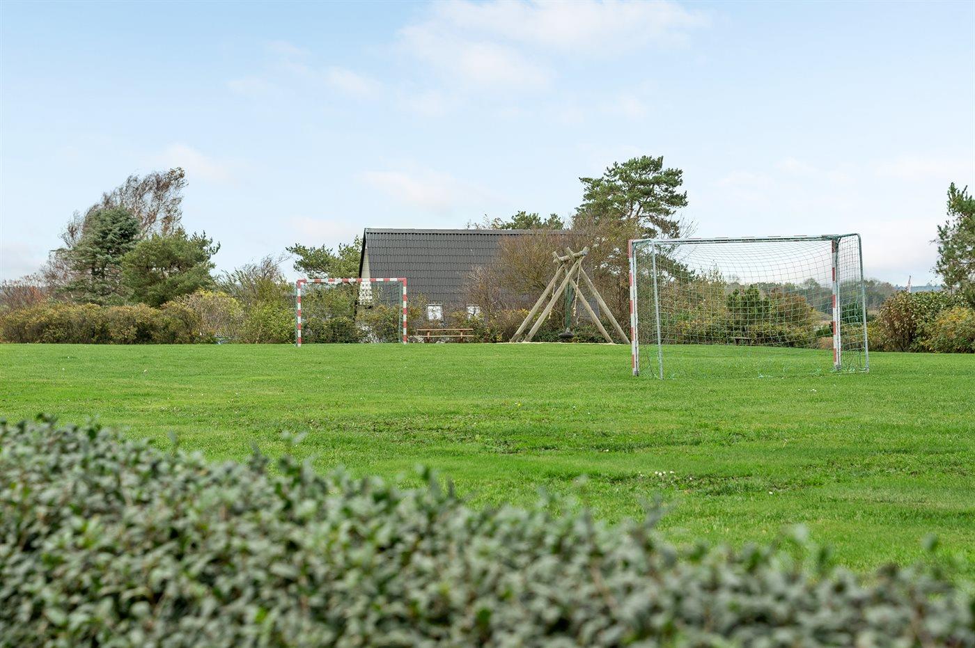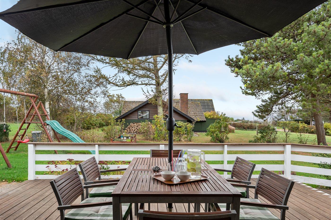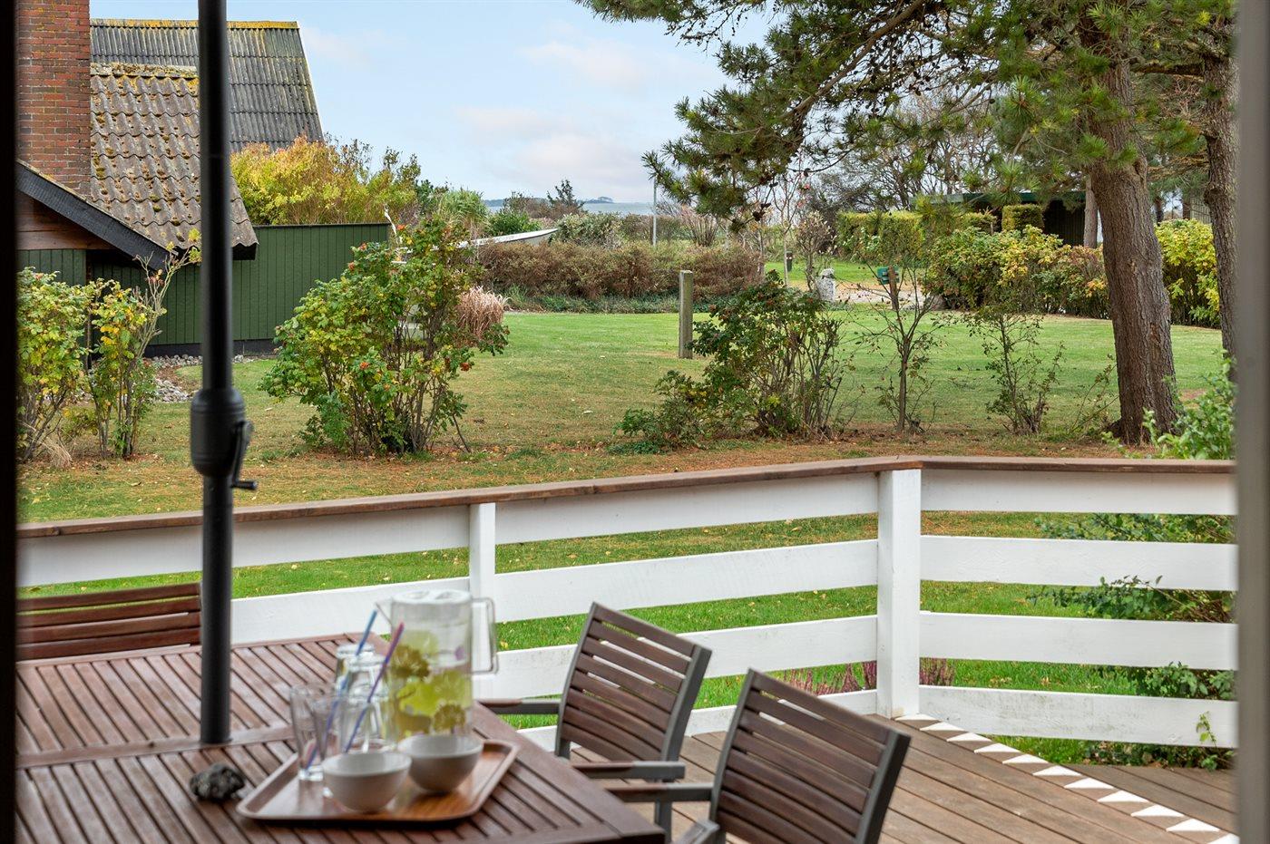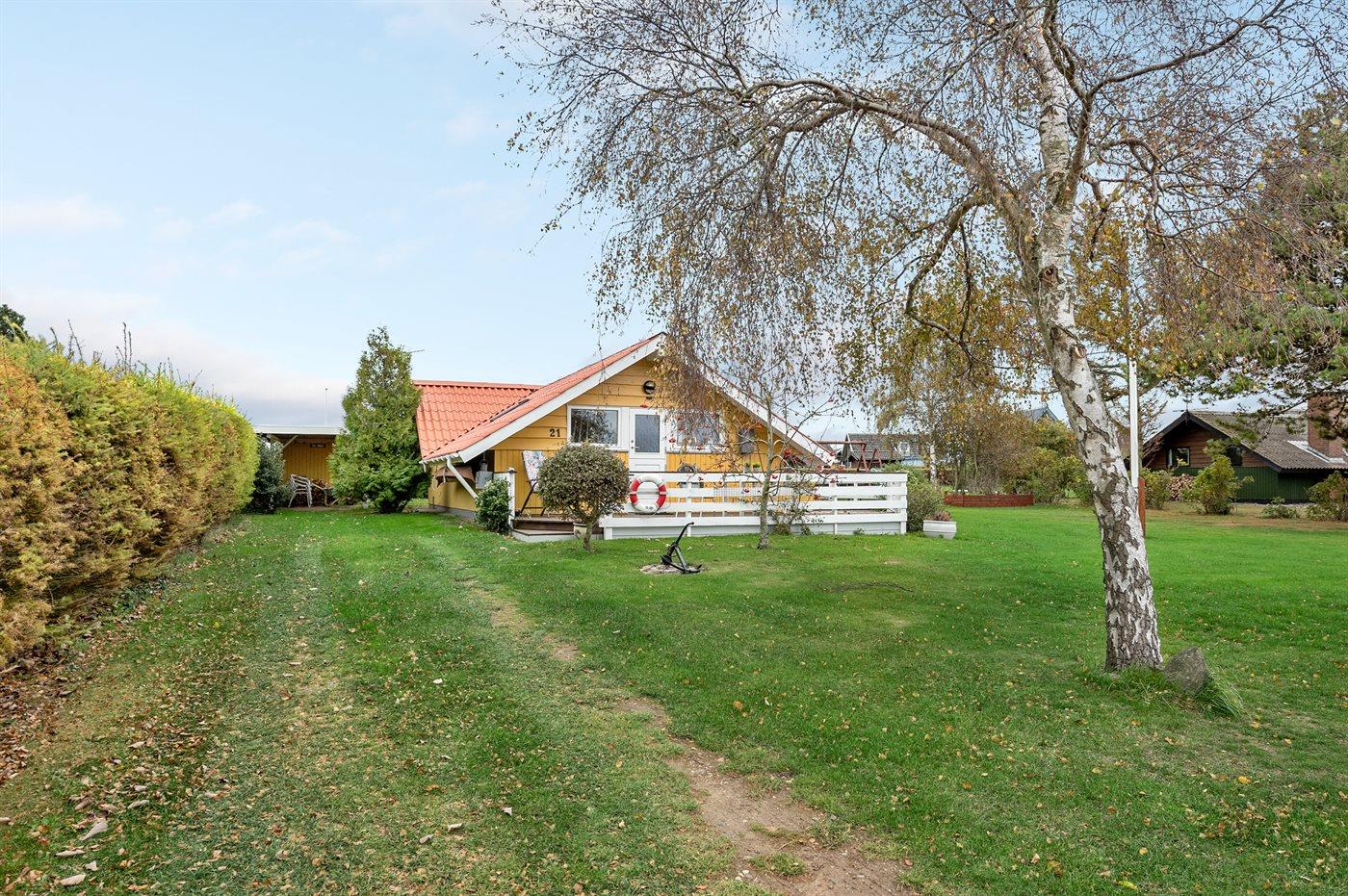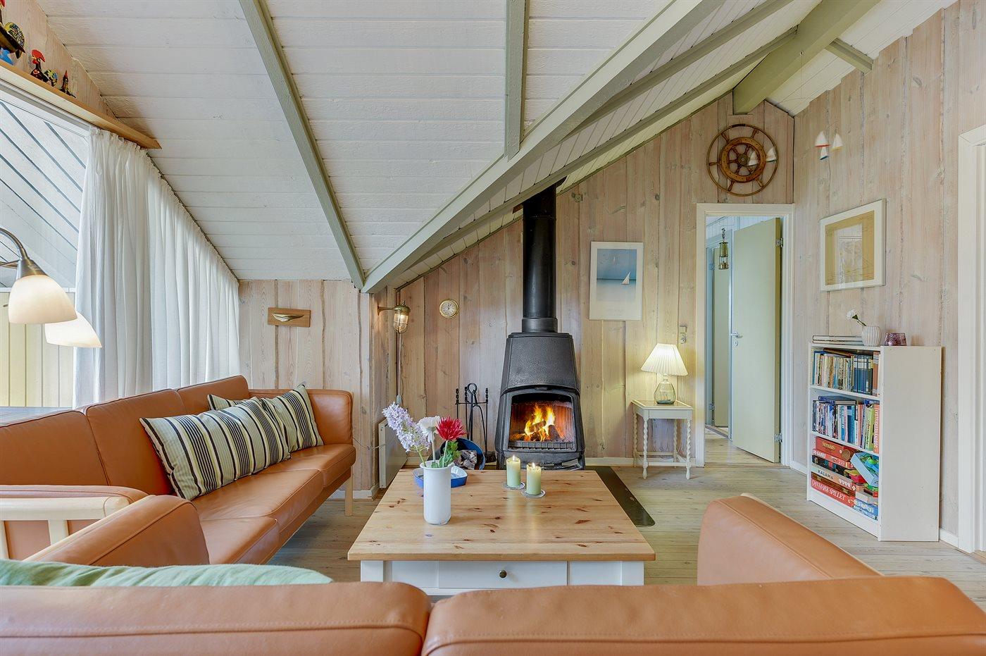Hyggeligt sommerhus nær badestrand med brændeovn, terrasse og adgang til fælles boldbane i Sanderager Næs.