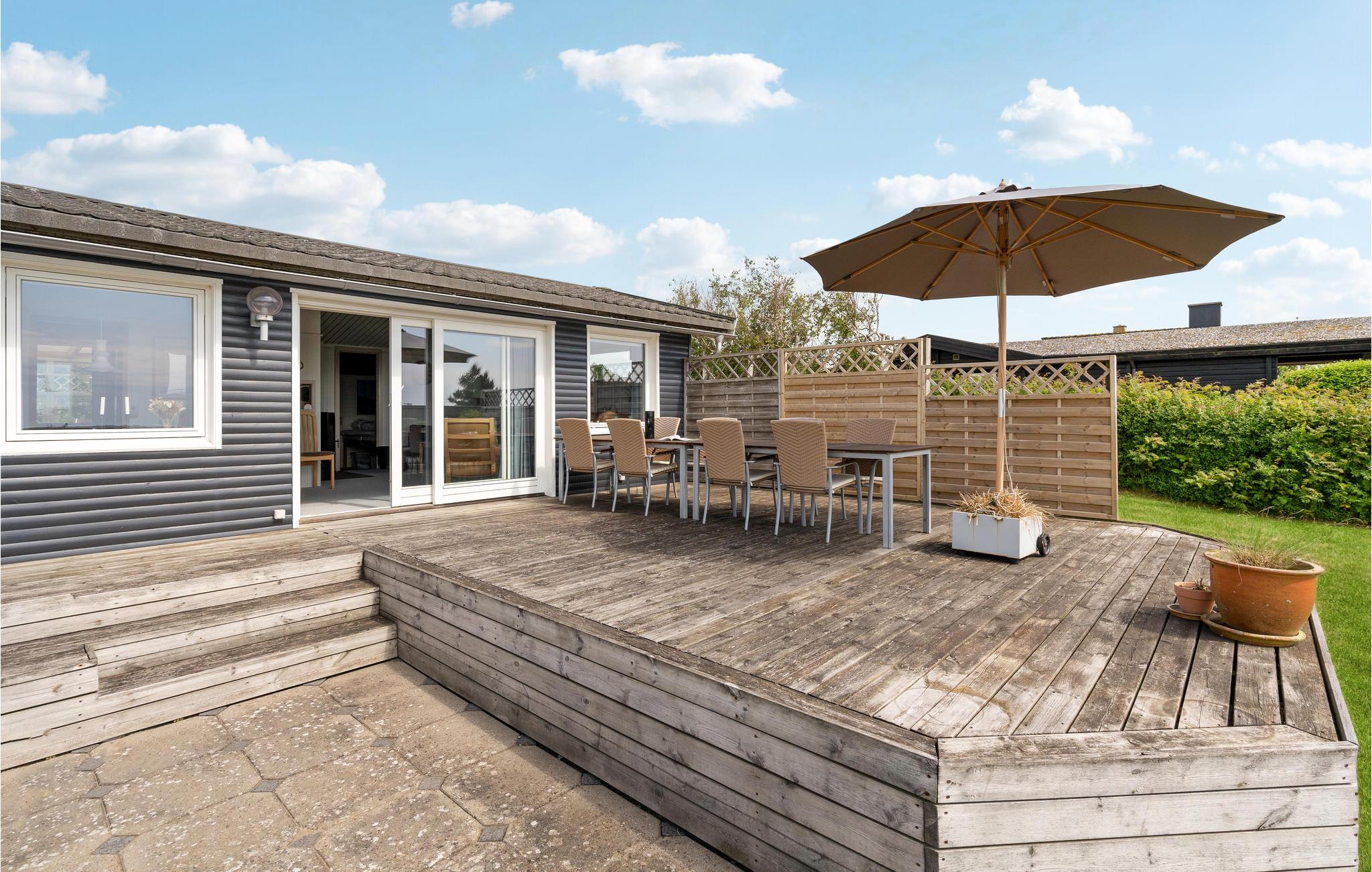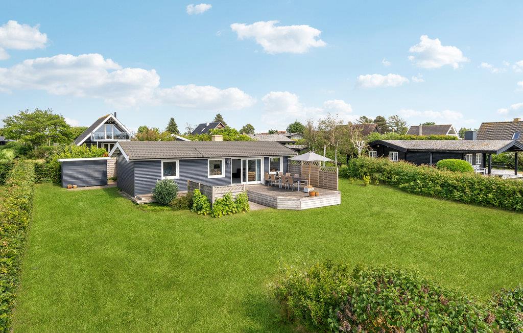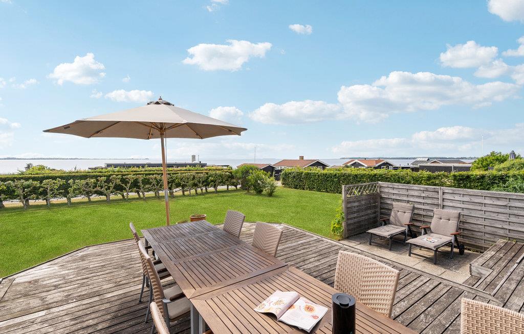 Den store træterrasse bliver jeres foretrukne sted i sommerhalvåret, for her kan I sætte jer med noget køligt i glassene og nyde udsigten til havet, mens solen går ned.