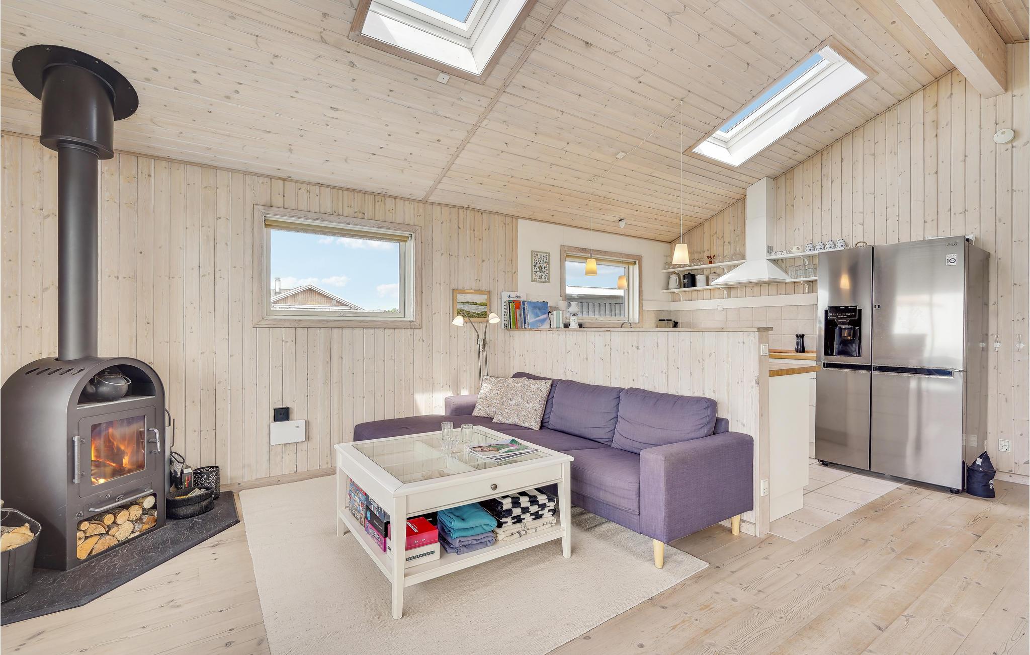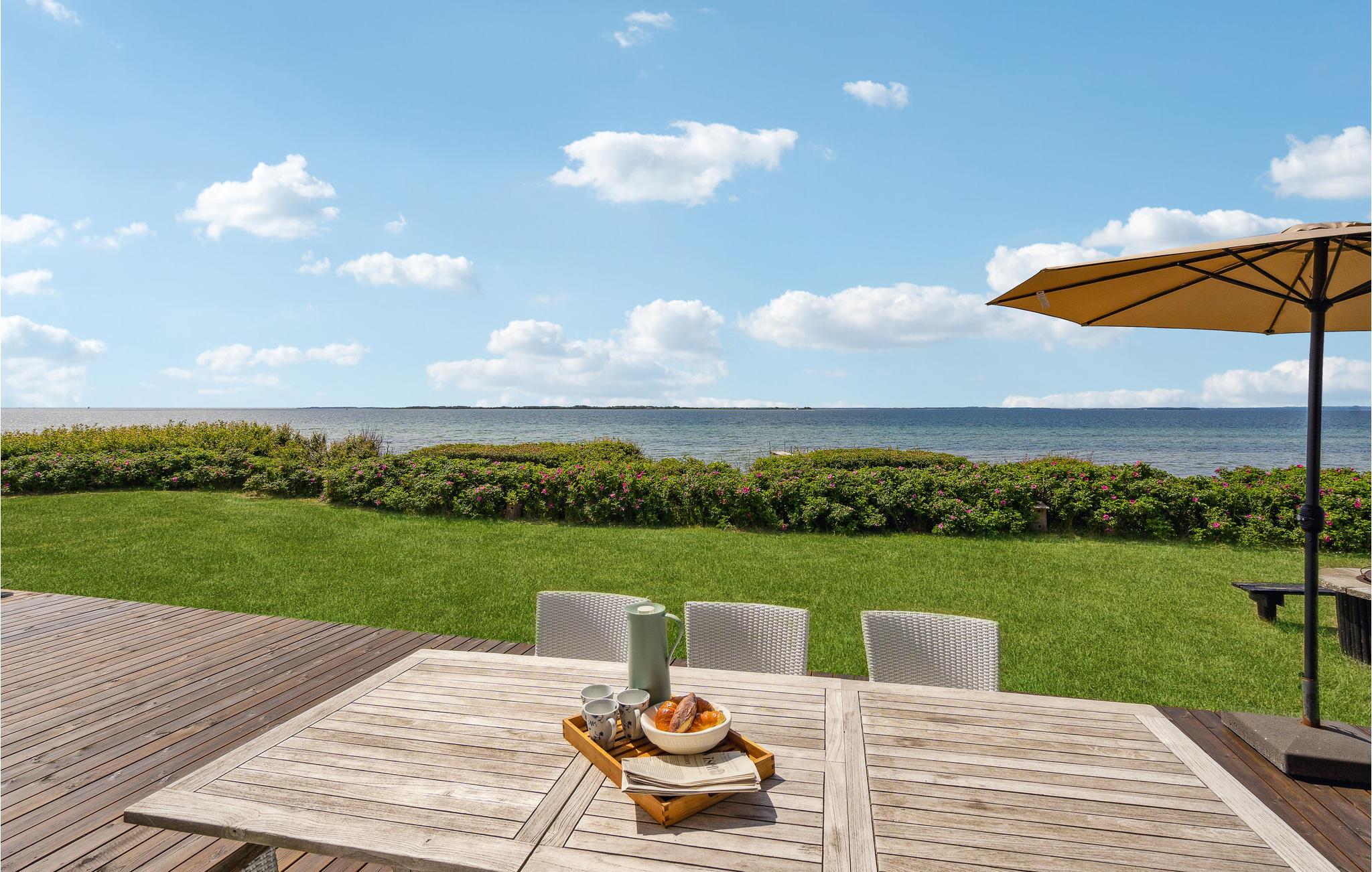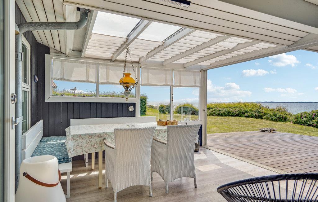 Er ønsket ubegrænset udsigt over havet fra både hus og grund, så kan det opfyldes her. Dette sommerhus af træ, ligger på en grund der støder op til stranden og er på 88 m², med plads til seks personer. Det rummer fire soveværelser og et badeværelse, og har stue og køkken i et. Vælg mellem flere udendørs muligheder: en udestue (u/varme), delvist overdækket og åben terrasse hvor solsengene står parat til solbad. Her kan I dufte havet og nyde lyden af bølgerne der slår mod stranden for enden af grunden. Der er 11 km til Assens, hvorfra I også kan tage den lille rød/hvide færge over til Baagø, og tilbringe dagen med at gå øen rundt, eller bare slappe af på sandstranden lige ved siden af færgelejet. I Assens kan I købe ind, gå på museum og spise på en af byens gode restauranter. Køreturen mellem Assens og Faaborg er for øvrigt en af Fyns mest naturskønne og idylliske.