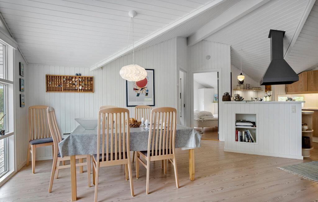 Med en stor, lækker træterrasse rundt om huset ligger dette feriehus ved skønne Sandager Næs. I det kombinerede stue/køkkenområde er der et stort vinduesparti ud mod terrassen, og her findes ligeledes en hyggelig brændeovn og spisebord. Huset er desuden indrettet med tre fine soveværelser samt et badeværelse.