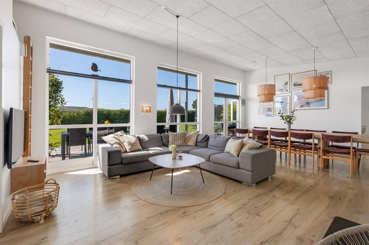 Ferieboligen er beliggende på en 1000 m² stor havegrund. Der er 600 m til havet. Nærmeste forretning er beliggende i en afstand af 6000 m. Der er en golfbane i en afstand af 18000 m. Til ferieboligen hører åbent terrasseareal. Desuden er der overdækket terrasse. Gynge. Sandkasse. Trampolin. Rutchebane. Fodboldmål. Grill til rådighed. Der er installeret stik til opladning af elbil. Type 2 stik. Med 11 kW ladeeffekt. Parkering ved ferieboligen.