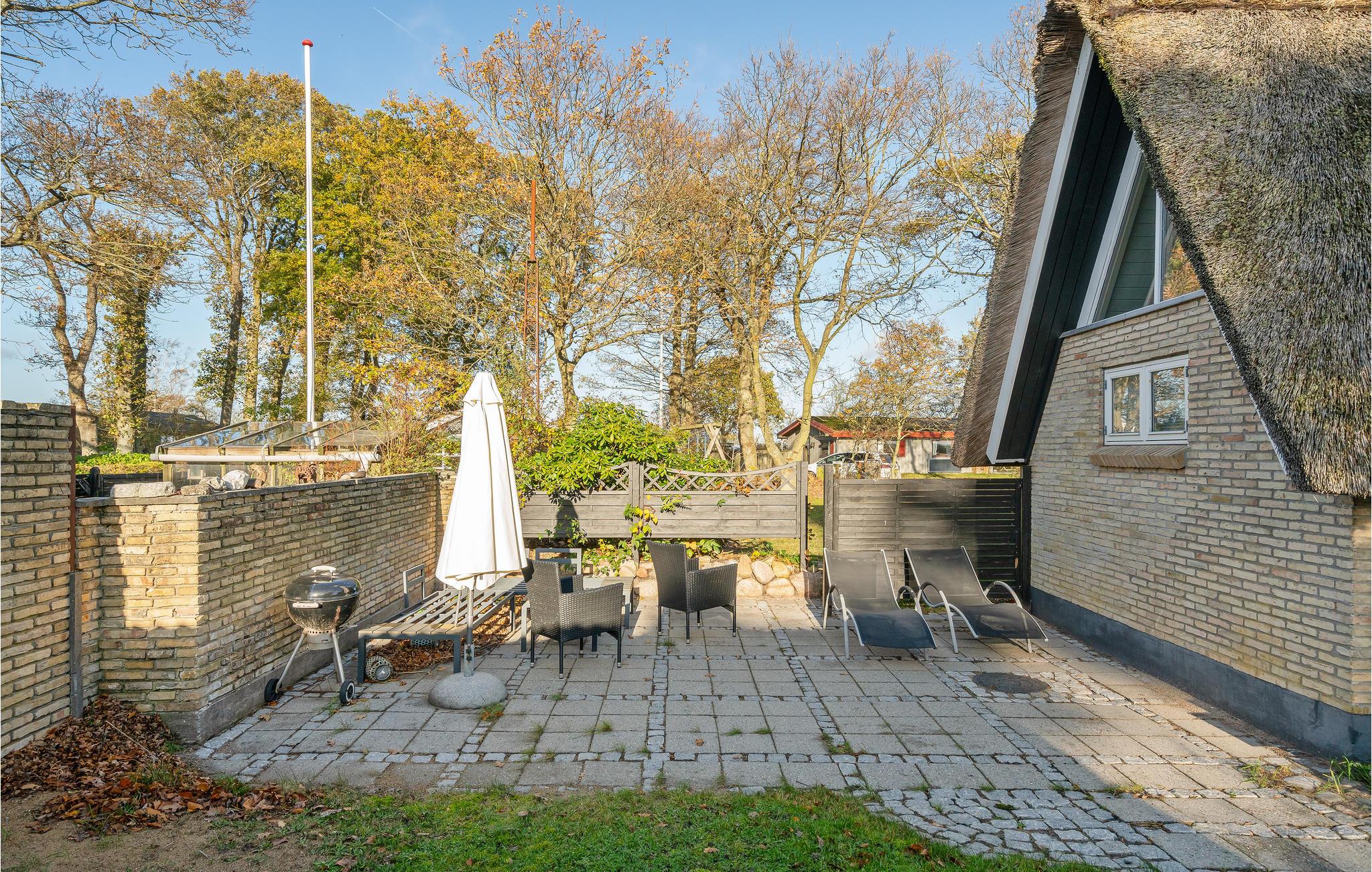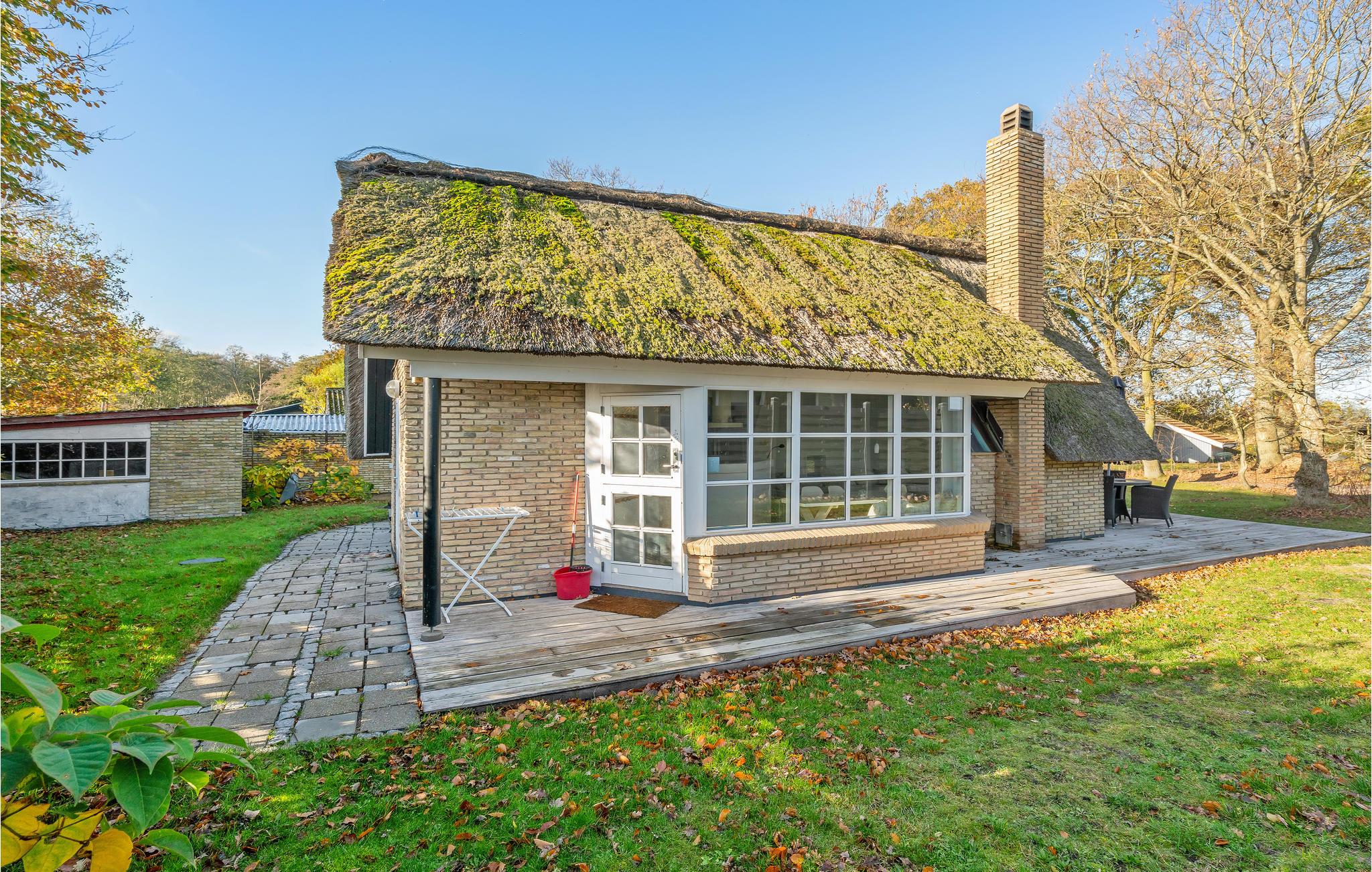 Dette charmerende sommerhus er opført i sten og tækket med strå. Huset ligger i de smukke omgivelser ved Sandersvig Stand. Indvendigt fremstår huset lyst og venligt, og i dele af huset er der loft til kip med fritlagte spær. Huset emmer af traditionel sommerhusstemning, både i valget af interiør og stilen huset er renoveret i. Huset indeholder et lille køkken, som er adskilt med en halvmur ind mod stuen. I stuen er der spiseplads, sofaarrangement, brændeovn og tv. Huset indeholder to soveværelser, det ene med en dobbeltseng og det andet med en etageseng. Husets terrasse ligger godt placeret på den hyggelige grund, hvorfra der er kig til vandet. Stranden ligger lige bag det næste hus, så det er nemt at komme frem og tilbage efter en tur i vandet.