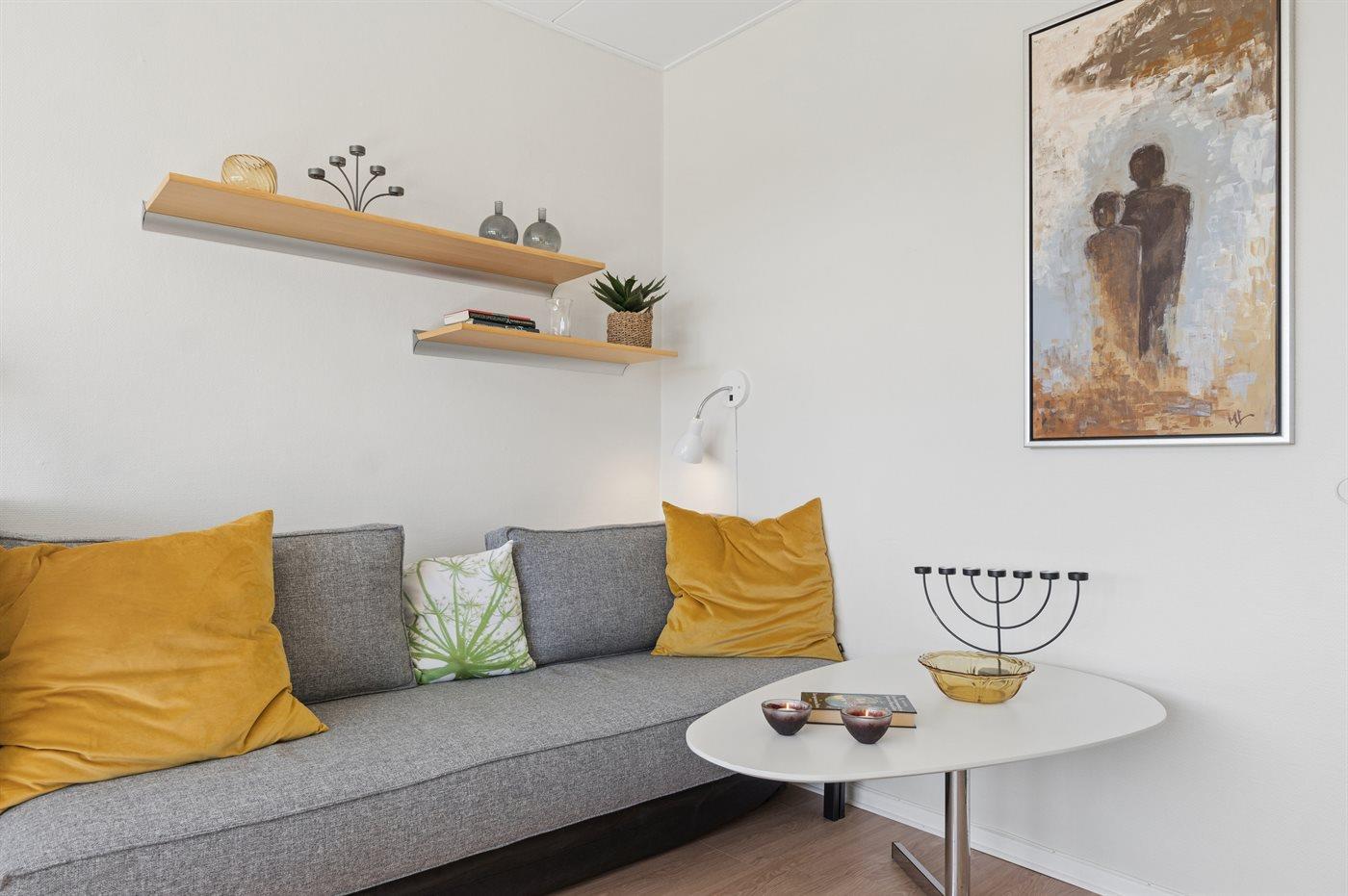 Ferielejligheden er indrettet med stue, mindre køkken, indbydende badeværelse og dobbelt sovesofa i stuen.