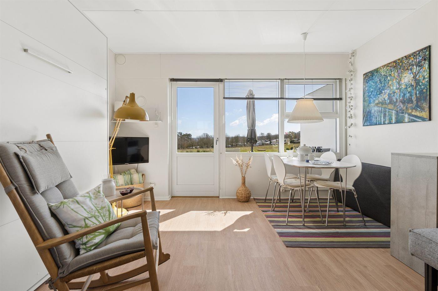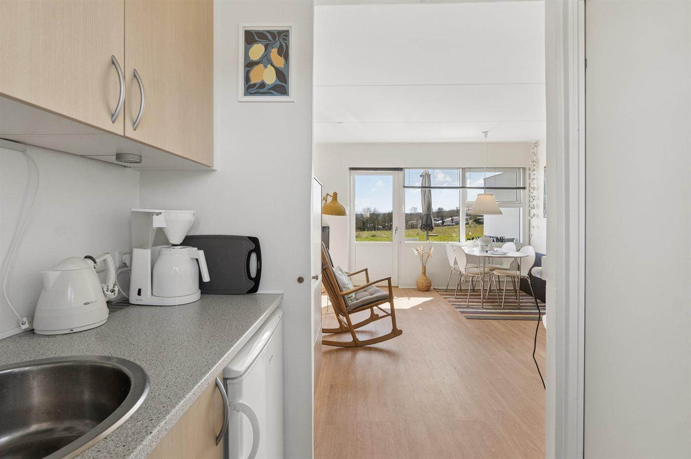 Lys ferielejlighed på 27 kvadratmeter beliggende med den fineste udsigt ud over markerne i det skrånende terræn og ud over Østersøen med Christians Ø i det fjerne.