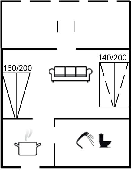 Sovepladserne fordeler sig på:2 sovepladser i dobbeltseng.1 soveplads i sovesofa (dobbelt). Disse sovepladser befinder sig i stuen.