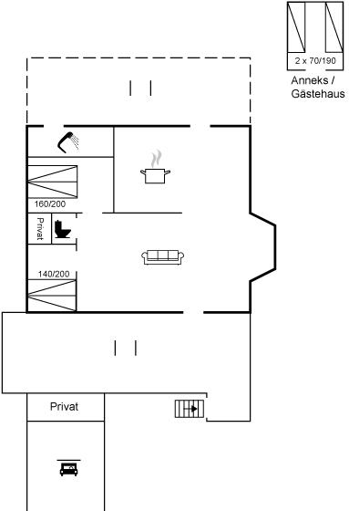 Der er i alt 3 soveværelser. Sovepladserne fordeler sig på: 4 sovepladser i dobbeltsenge. 2 sovepladser i enkeltsenge. 2 af disse sovepladser befinder sig i et anneks. Derudover er der 1 stk. barneseng.