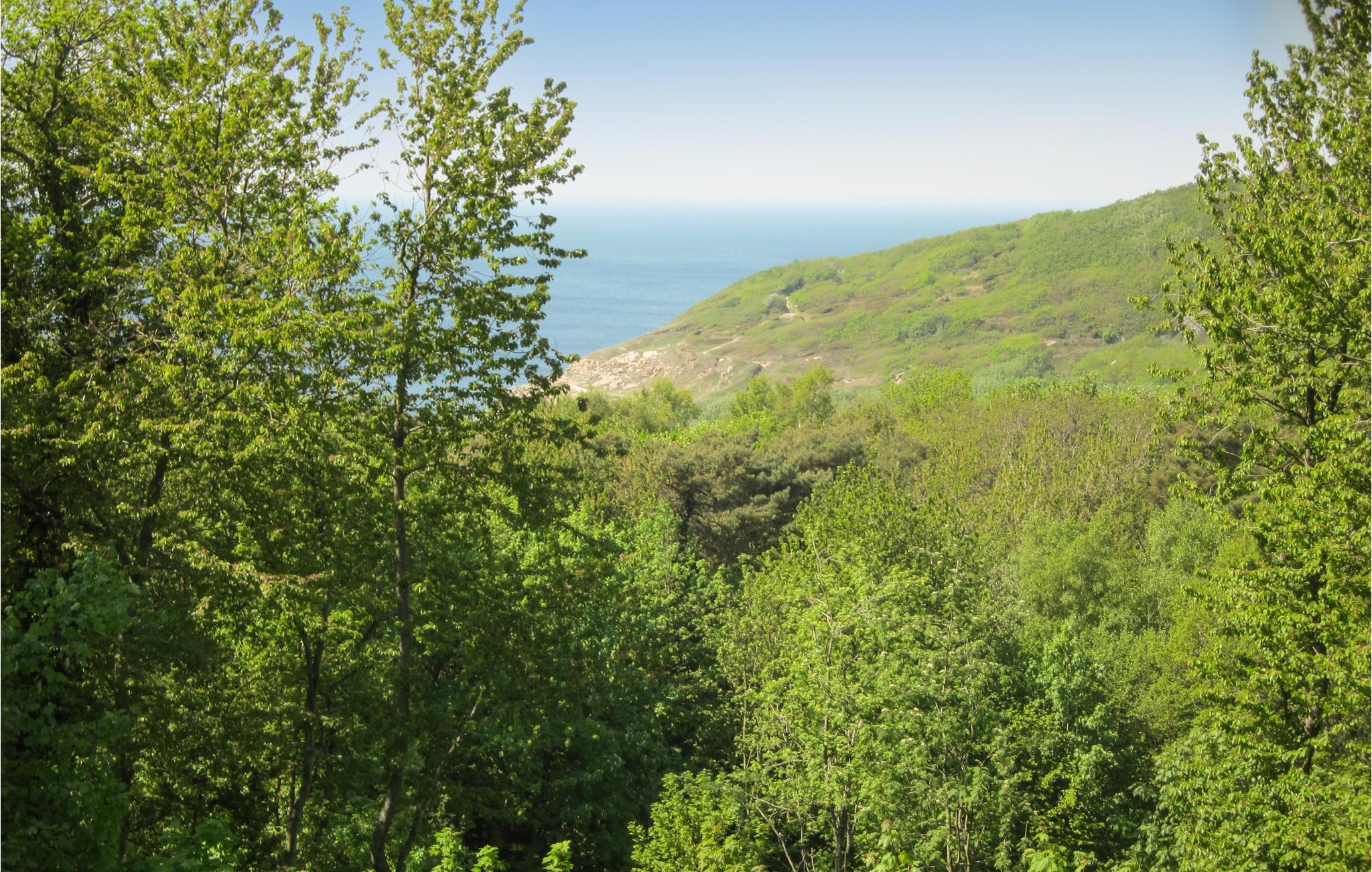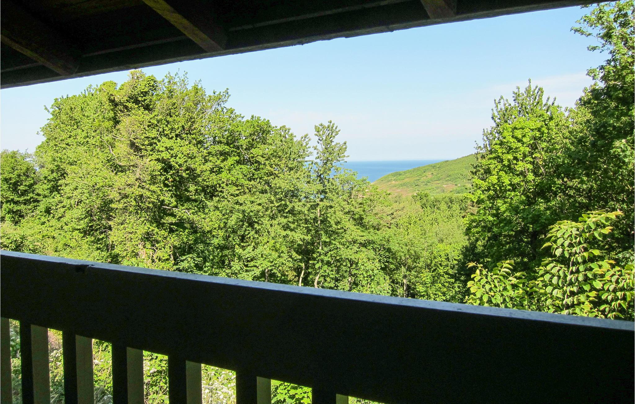 Hyggelig to-etagers ferielejlighed med havkig og overdækkede terrasser i naturskønne omgivelser nær Hammershus.