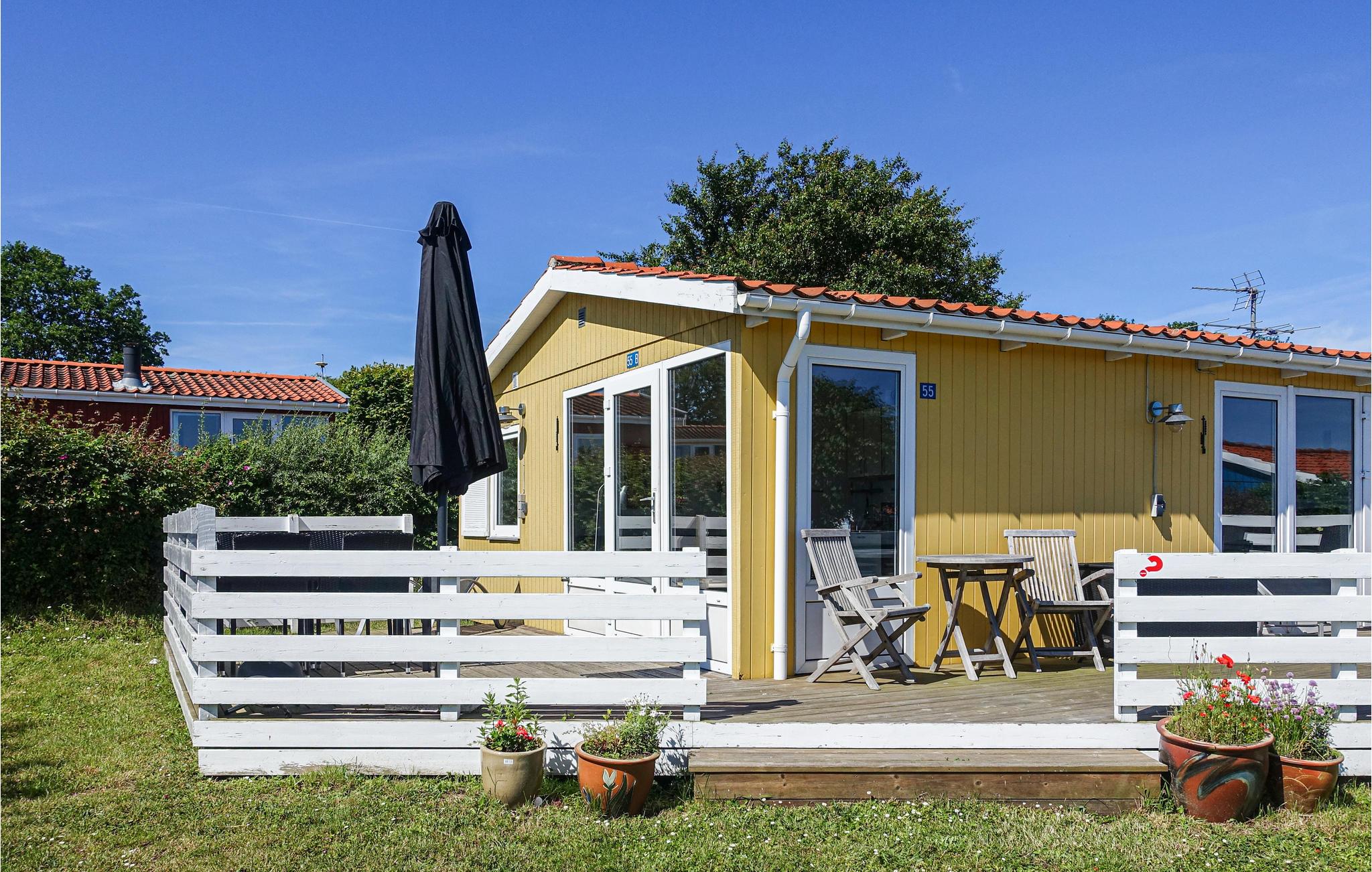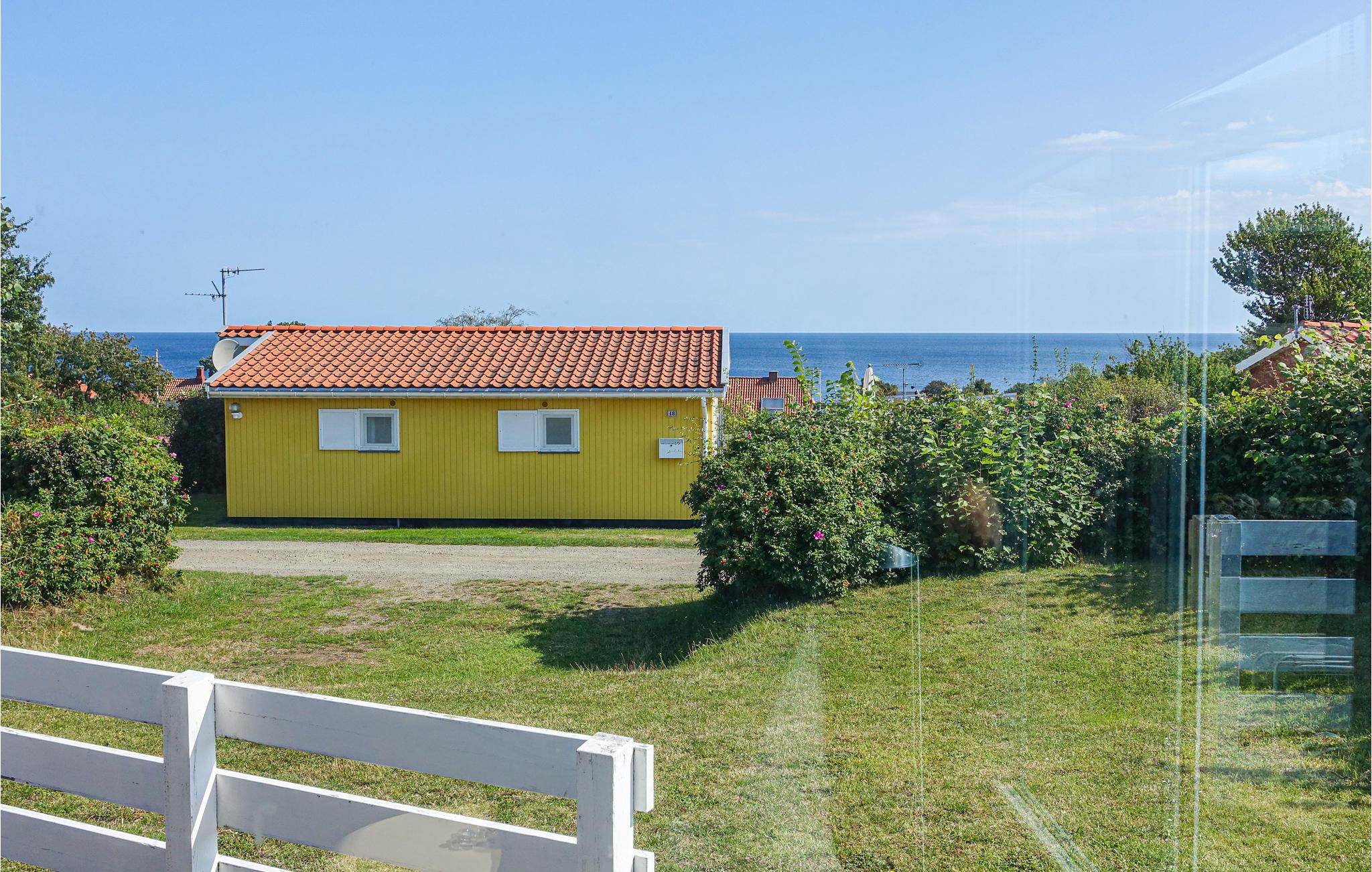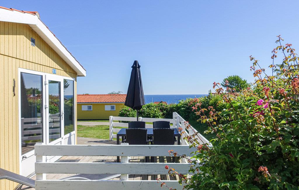 Hyggeligt træsommerhus med havudsigt nær Allinge-Sandvig, ideelt til par eller små familier.