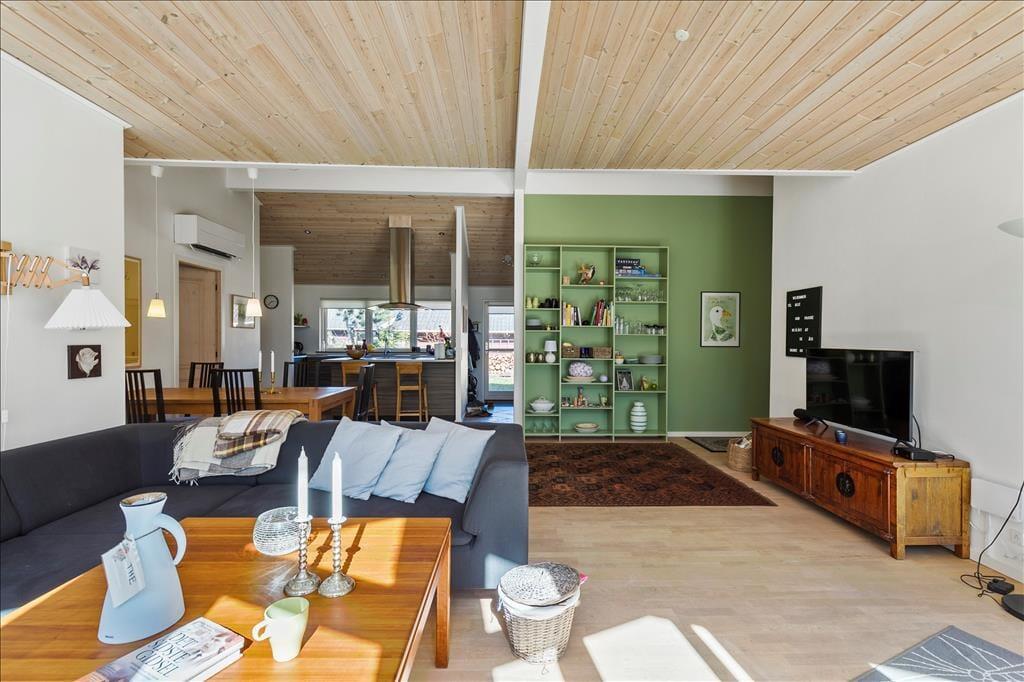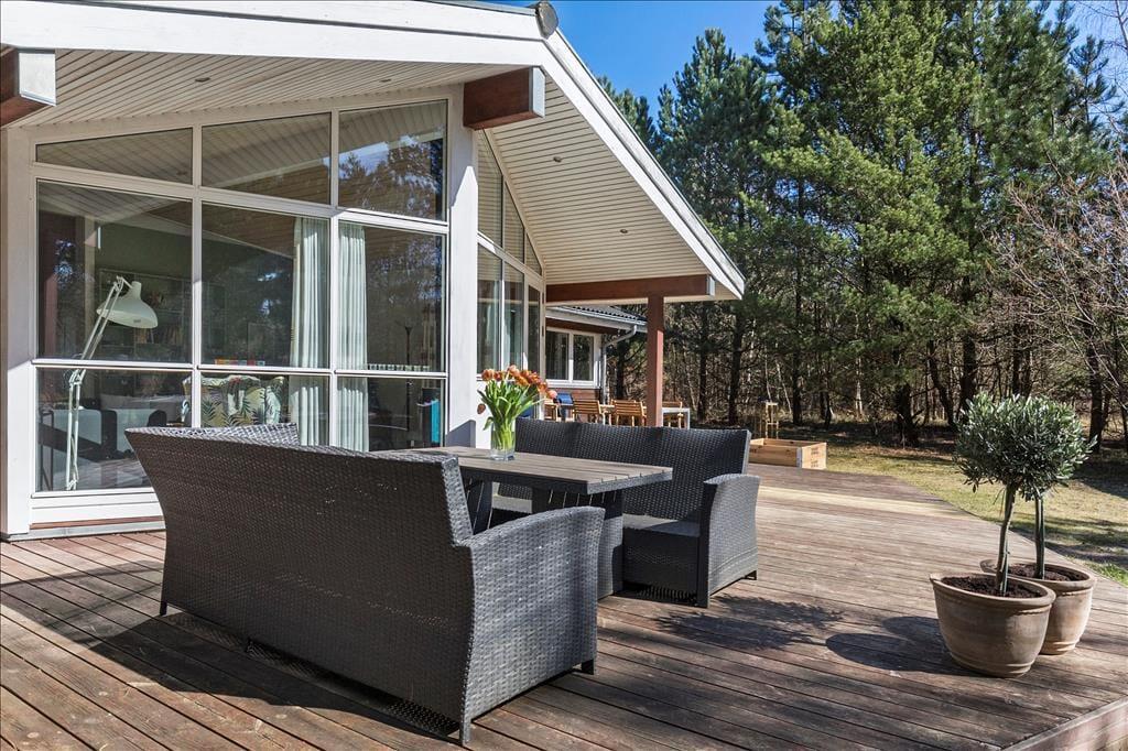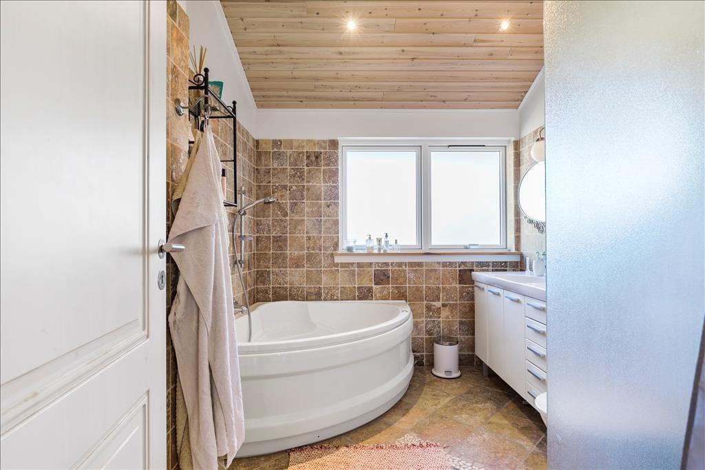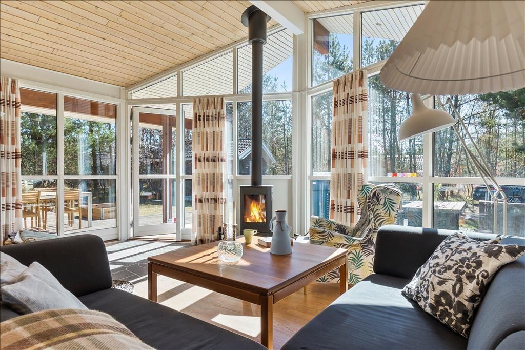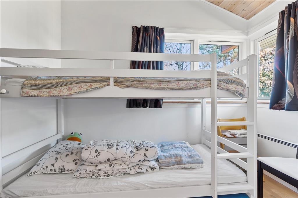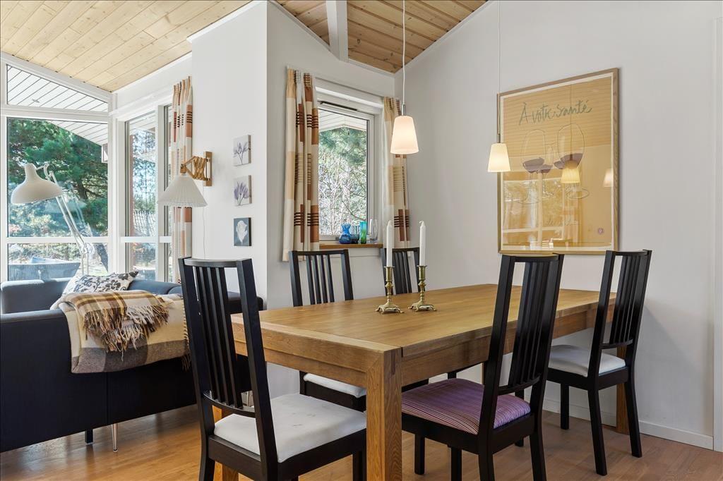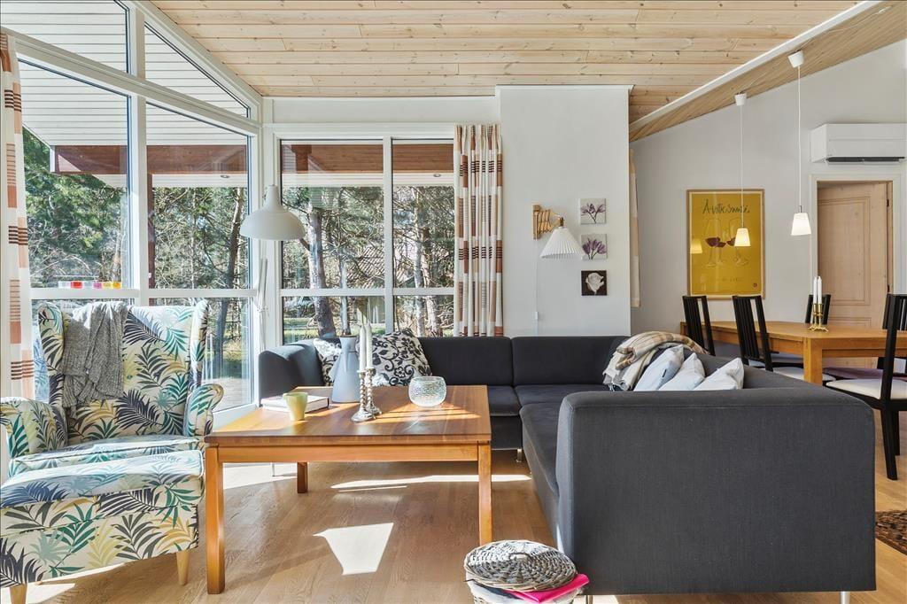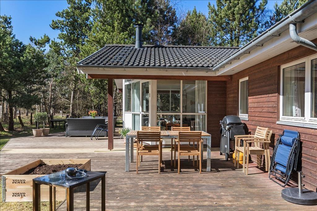 Rummeligt feriehus som er velegnet til 2 familier. Stor stue med brændeovn og godt lysindfald fra de store vinduer. Åbent køkken med opvaskemaskine og mikroovn og god plads til at fremtrylle lækre feriemiddage. Huset indeholder 2 badeværelser med smukke fliser, der skaber middelhavsstemning. Det ene badeværelse indeholder SPA og det andet en sauna. Der er 4 gode soveværelser med henholdsvis 2 dobbeltsenge, 1 enkeltseng og en køjeseng samt skabsplads til tøj. I bryggerset finder du både vaskemaskine og tørretumbler. Fra stuen er der udgang til den hyggelige træterrasse, hvor du kan grille, slappe af og betragte det rige dyreliv.