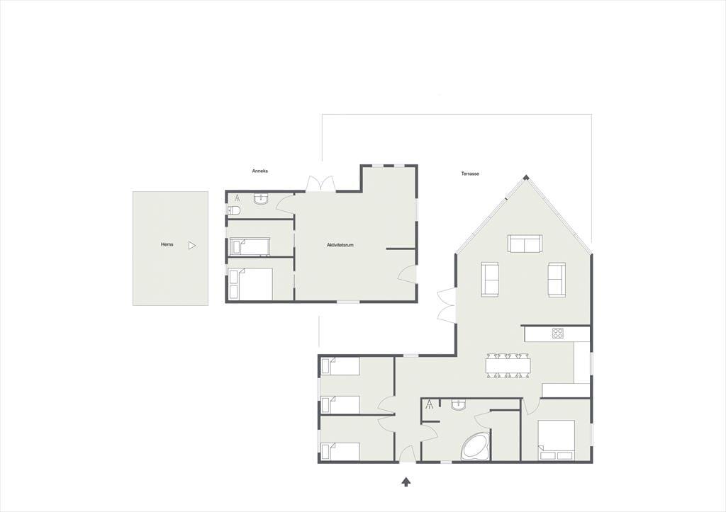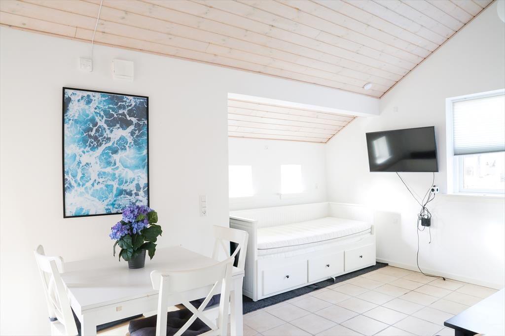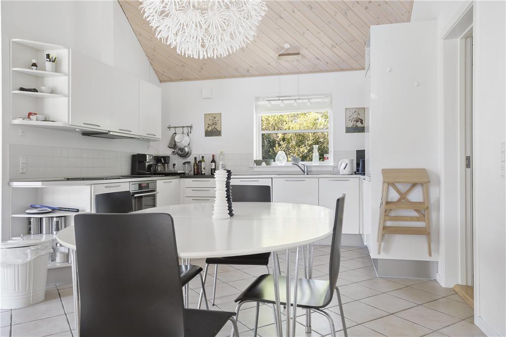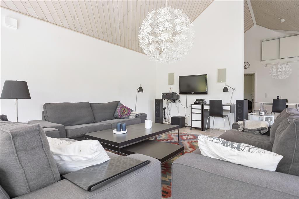Dette store indbydende og lyse familieferiehus byder på et væld af aktivitets- og afslapningsmuligheder både inde og ude. I den store, rummelige stue kan I slappe af i de bløde sofaer, og der er også mulighed for at få varmet kroppen godt igennem i saunaen eller i spabadet. Bagefter kan I hjælpes ad med madlavning i det rummelige, åbne køkken og spise sammen ved spisebordet. Skal I konkurrere er der mulighed for at tage en omgang bordfodbold i annekset, spille dart eller vægttræne.