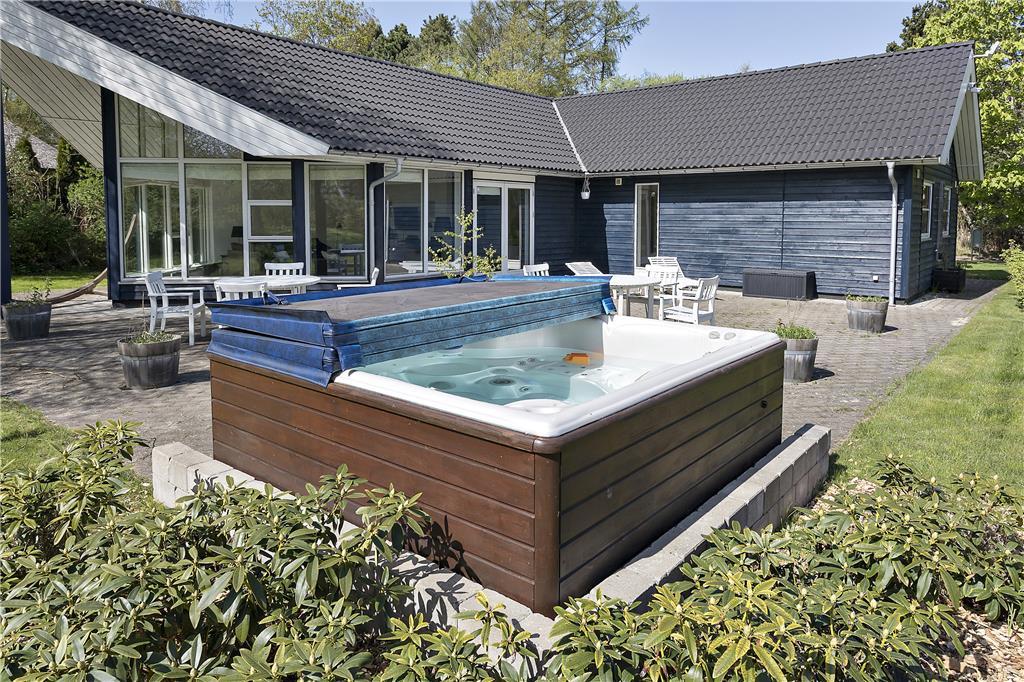 Med en volleyball-bane og petanquebane har du masser af mulighed for at byde på en familiær dyst i den store have. Bagefter kan I tage en tur i det udendørs spabad, inden I kan lade solen tørre jer i liggestolene på terrassen. Når dagen går på hæld, er det på tide at få tændt op i grillen og kalde til samling omkring terrassebordet, for nu vanker der lækre bøffer og pølser, nye kartofler og grøn salat.
