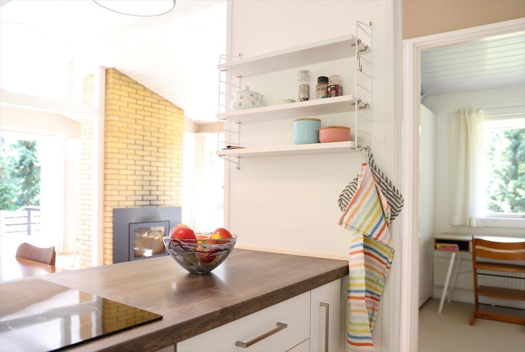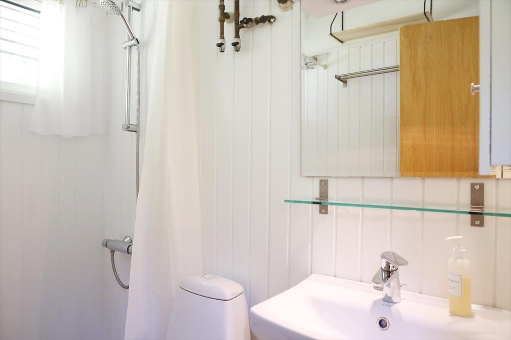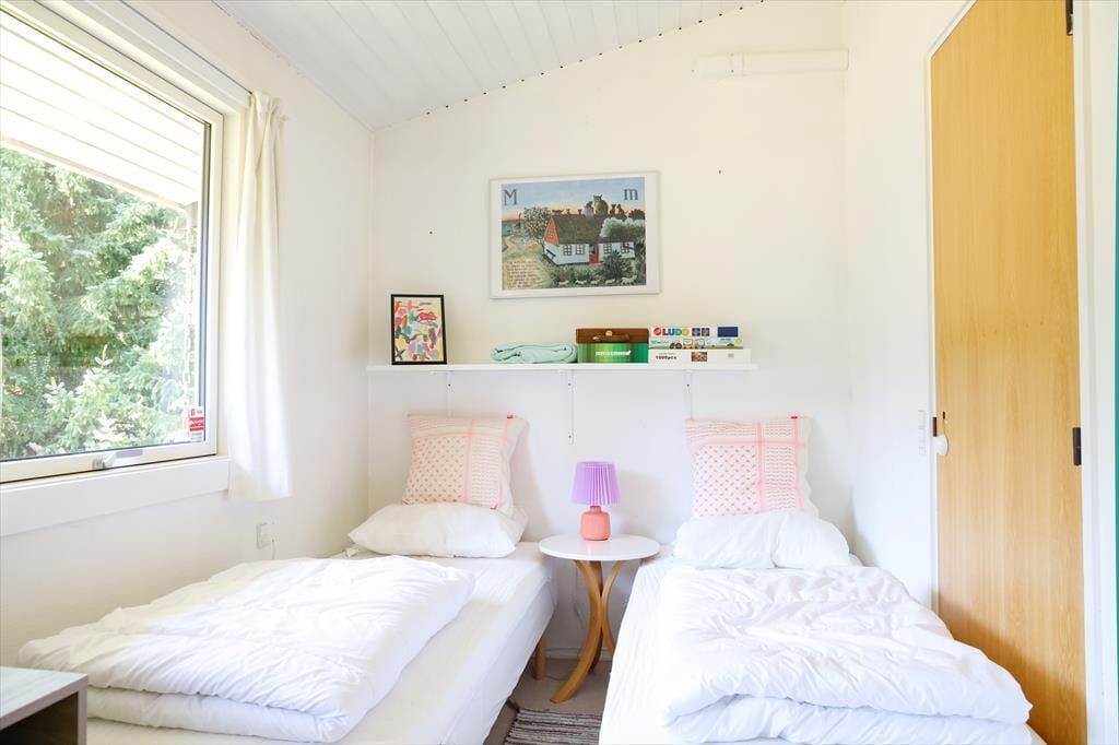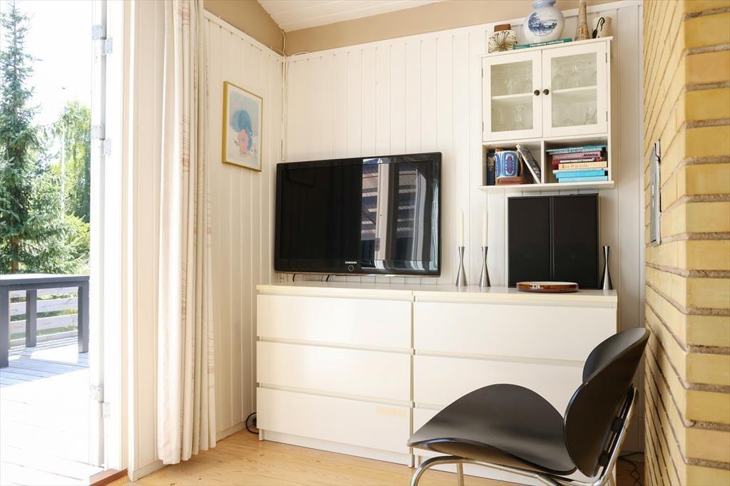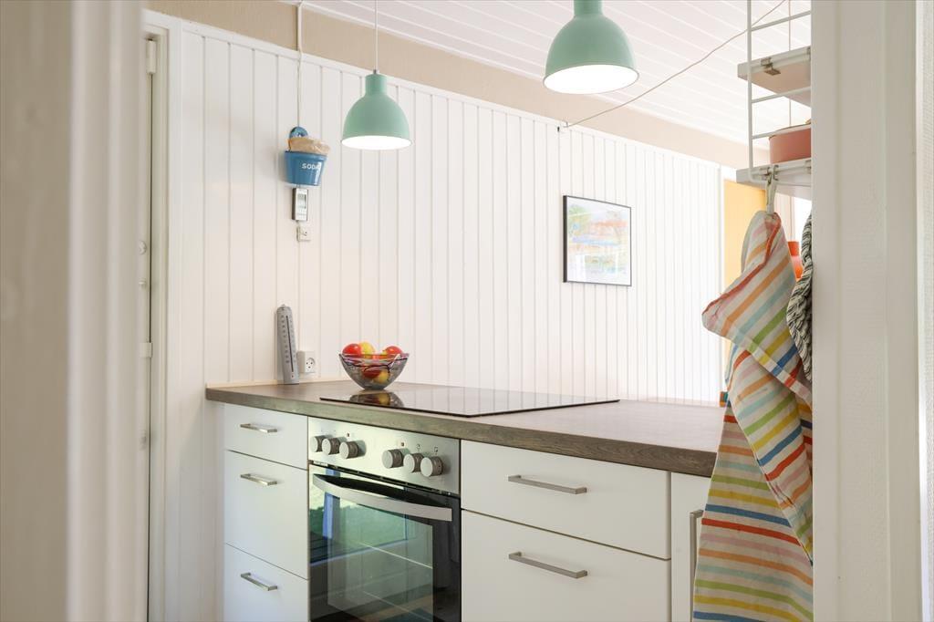 Sommerhuset byder indendørs på en hyggelig, lys og indbydende sommerhusstemning. Det mærkes tydeligt at skuldrene sænker sig og ferie og afslapning nu kan begynde. I køkkenet der er i åben forbindelse med stuen, kan det gode morgenbord nydes og planer for dagen tilrettelægges. I stuen kan aftenen nydes foran brændeovnen alt imens krimien læses eller der streames en god film i TV. Det er dog kun muligt at streame via eget abonnement.