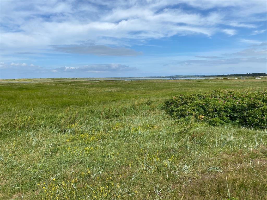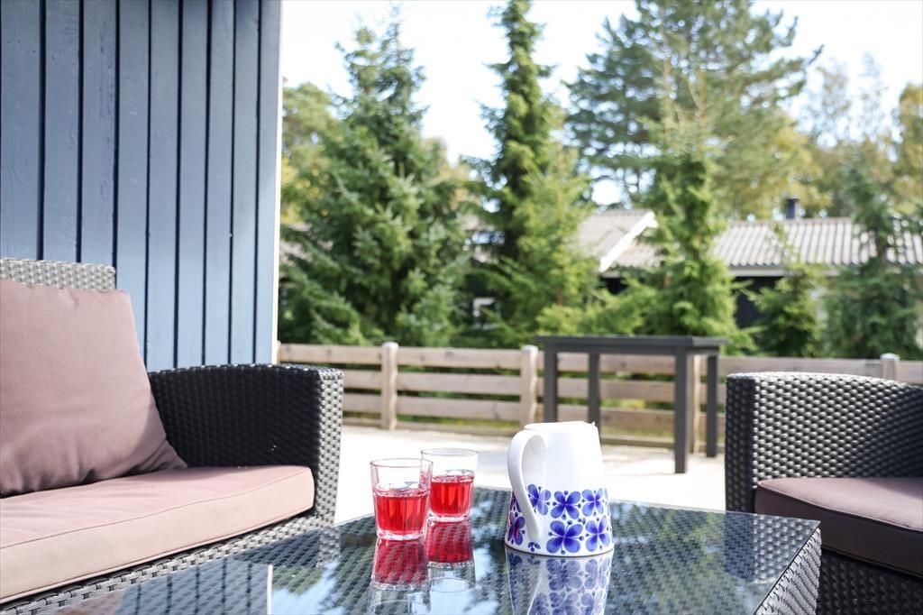 Sommerhuset er beliggende på en skøn grund omkranset af træer og buske så du kan sidde i naturskønne omgivelser og nyde din frokost, og altid finde en skyggeplads hvis solen skulle blive for skarp. Der er tidlig morgensol på terrassen hvorfra der er udgang fra køkkenet og på den store træterrasse er der sol fra middag til aften. Står dagen på naturoplevelse, så er der kun en kort gåtur til Ellinge skov hvor der er stier rundt i skoven, ligeså er det også en kort gåtur til Korevlerne der byder på masser af dyreliv inden du for enden ad Korevlerne når ud til en skøn sandstrand.