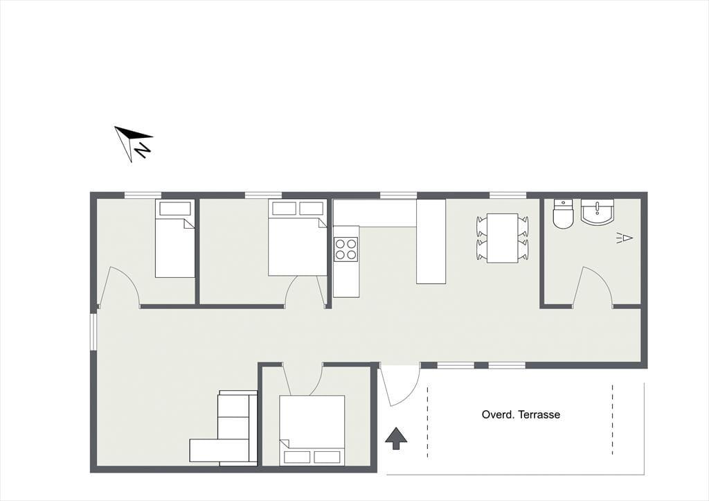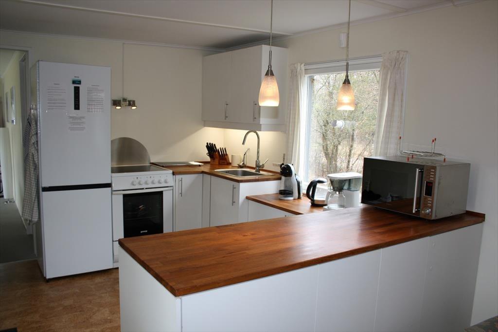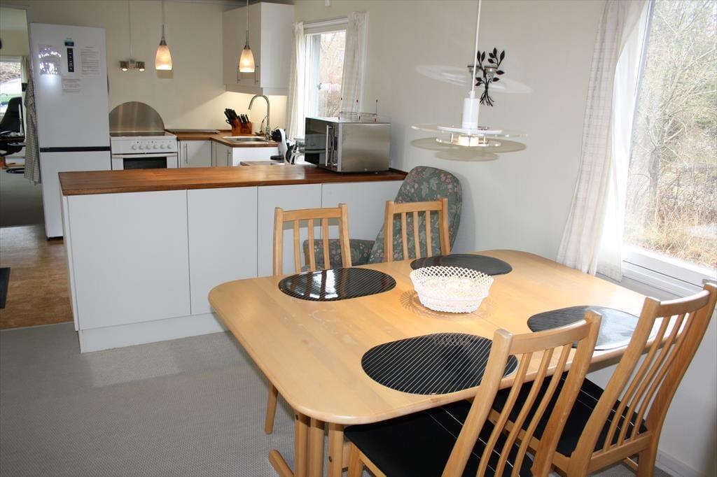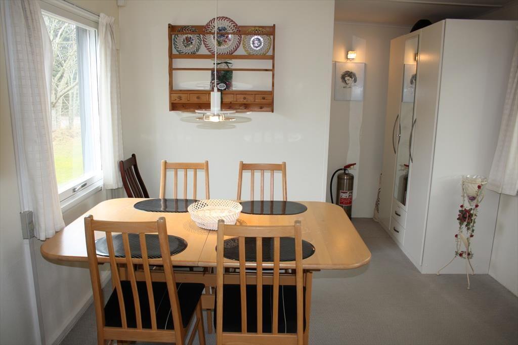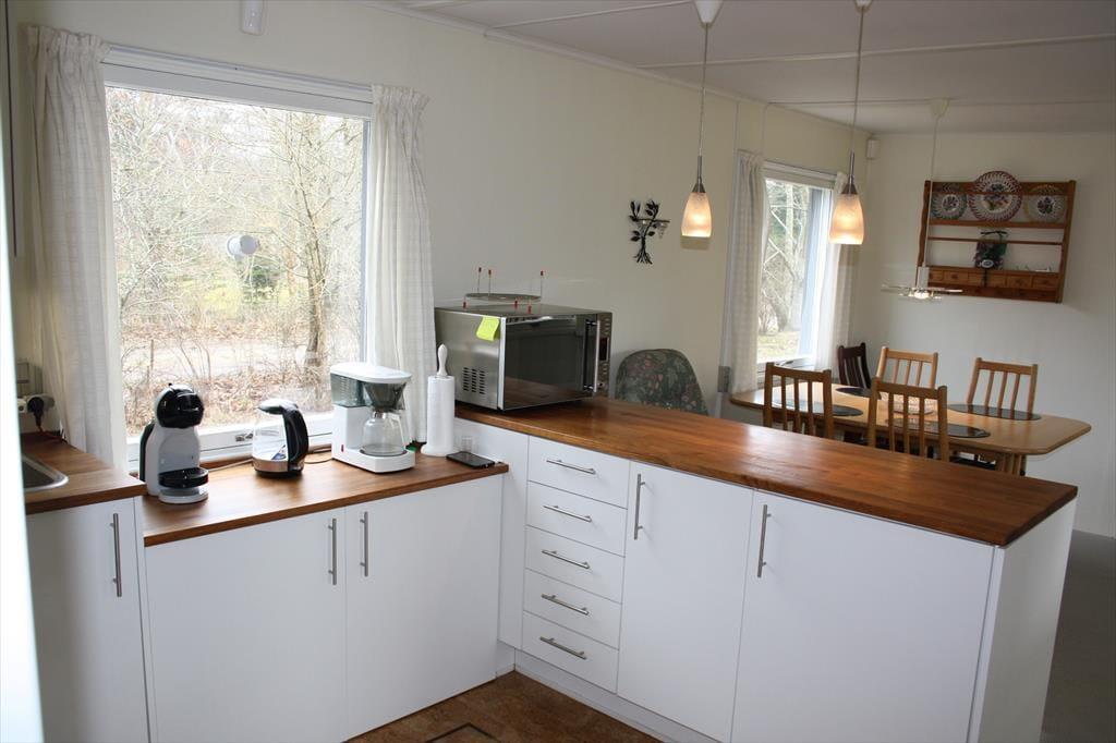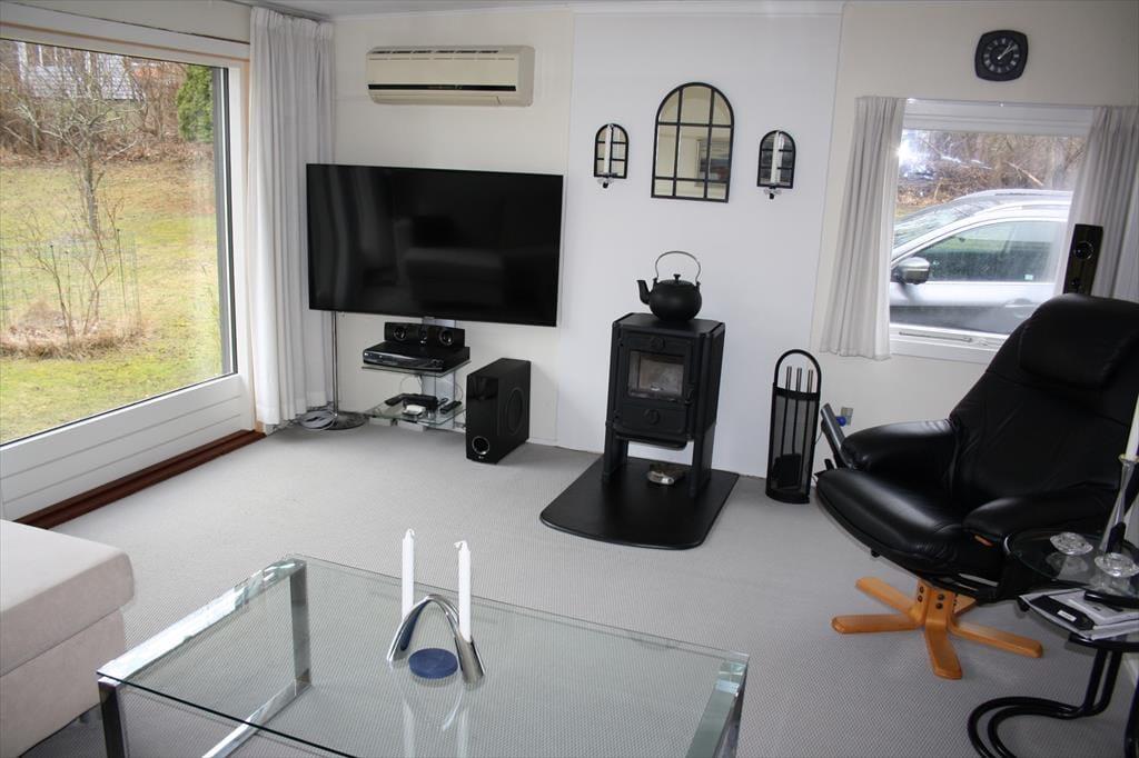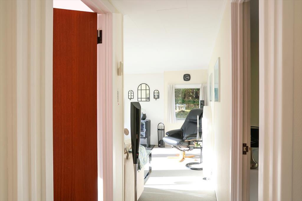Sommerhuset byder på mange hyggelige stunder sammen. Især sommerhusets stue er værd at fremhæve. Her er der et fantastisk lysindfald fra det store vinduesparti, hvor du kan sidde og kigge ud på den skønne grund, måske er du endda heldig at se et rådyr i haven. I stuen kan I samles om aftenen til et spil og drøfte dagens og morgendagens begivenheder, eller bare smække benene op og nyde en god bog. Værelserne i huset er godt fordelt omkring stuen, så den morgenfriske der er oppe at brygge morgenkaffen kommer ikke til at vække de andre. På badeværelset kan pladsen godt være lidt trang rundt om vaskemaskinen og ind til brusenichen.