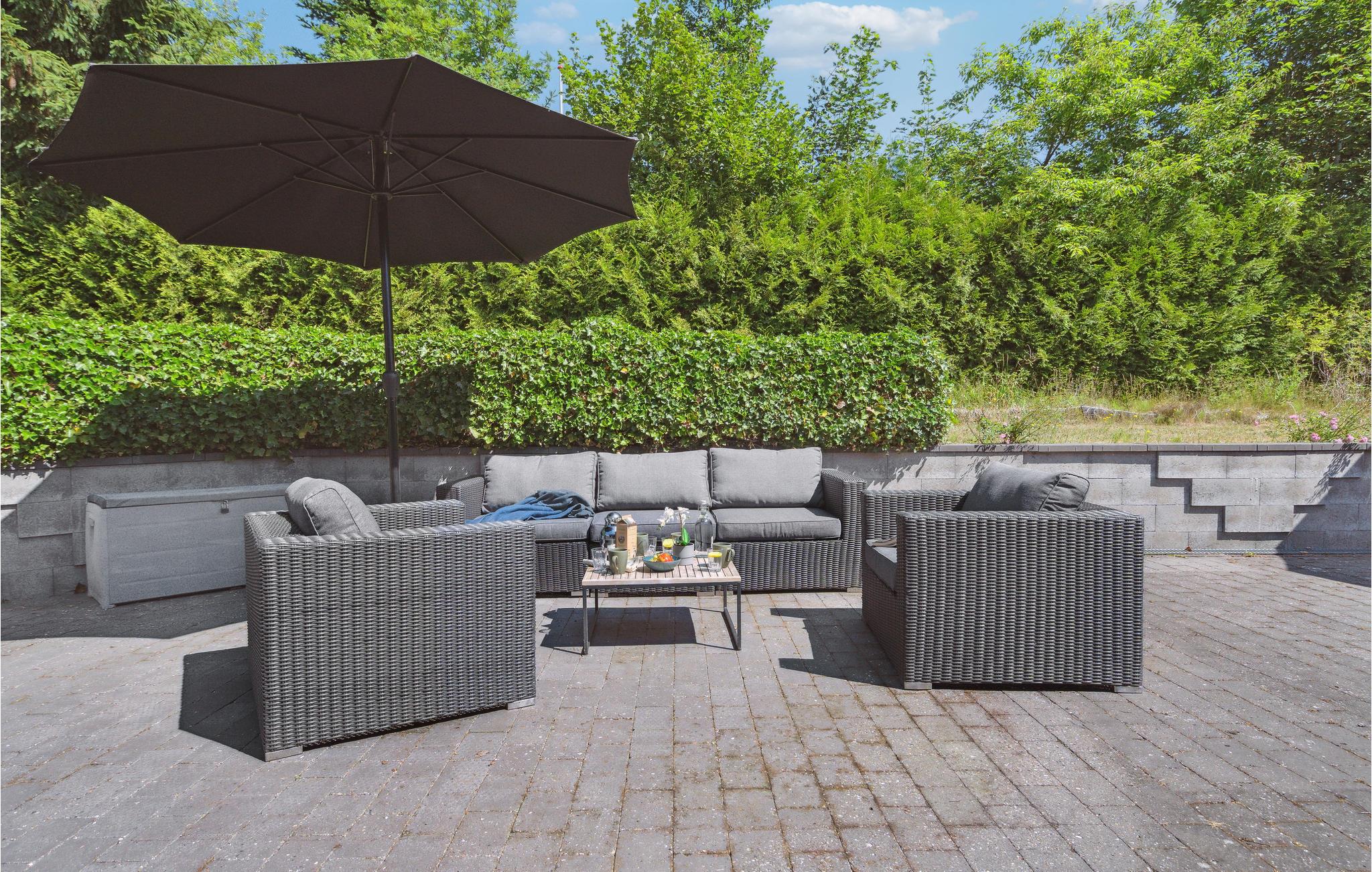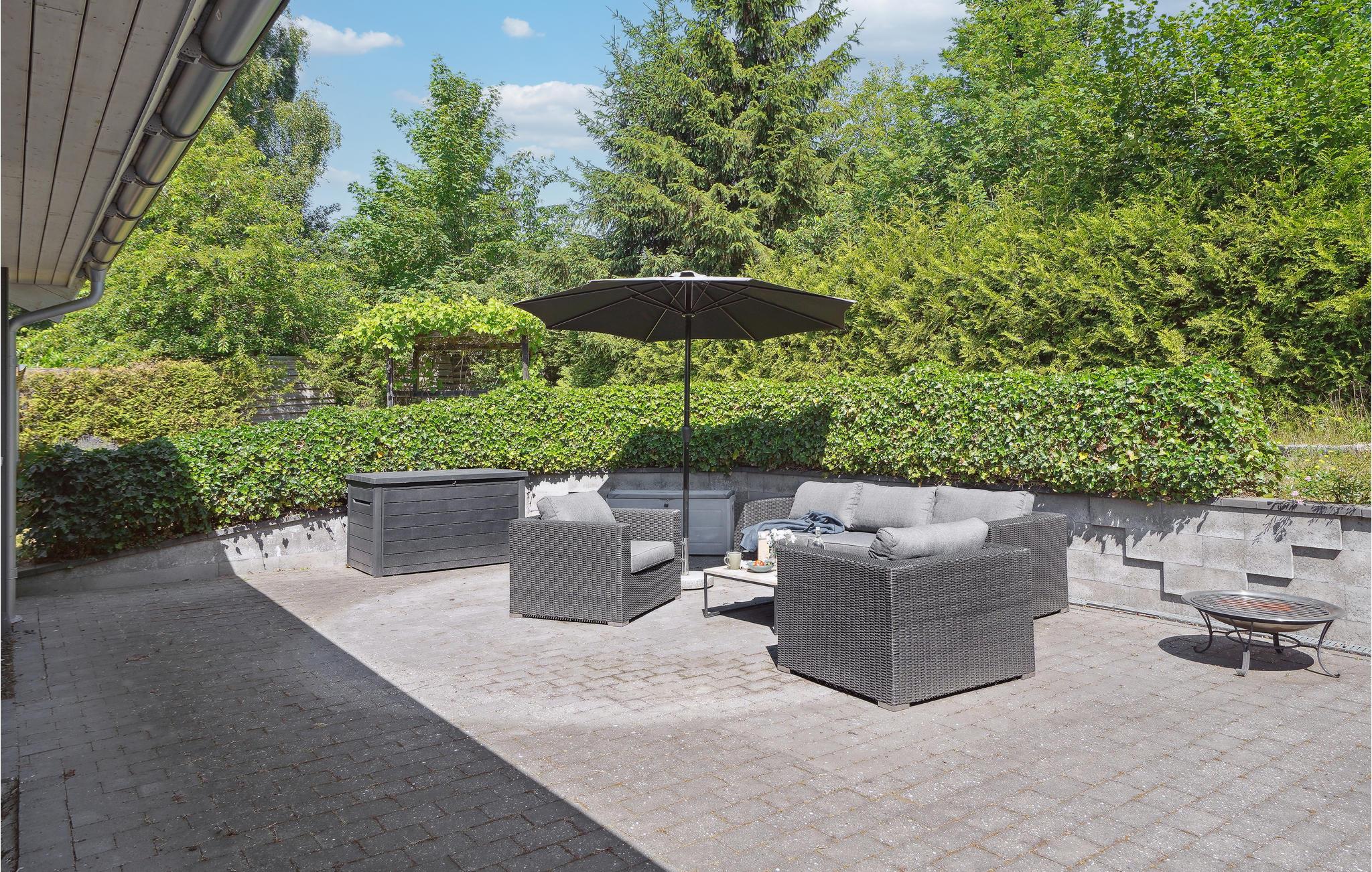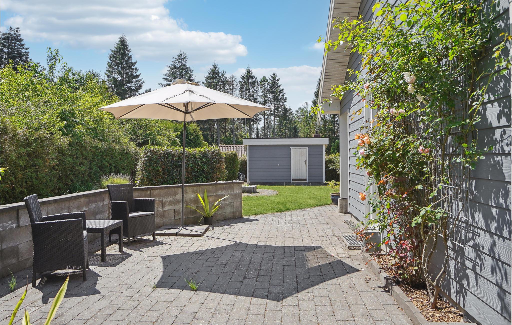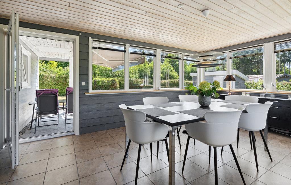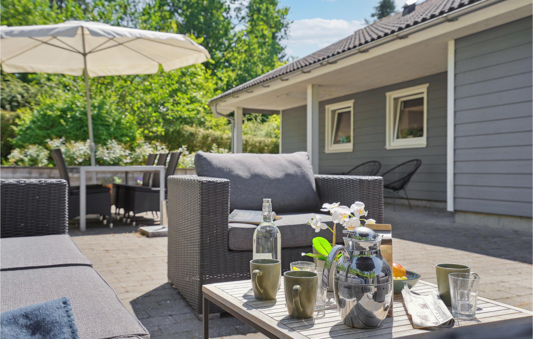 Dette komfortable feriehus ligger på en dejlig ugenert naturgrund omgivet af træer og indbyder til en ferie med ren afslapning. Huset er hjemligt indrettet med hyggelige møbler og dekorative detaljer. Her er der plads og tid til, at I kan lave mad og bage sammen med jeres børn. Måske står den på noget sødt? Arbejdet kalder ikke, og I bestemmer selv tempoet! Tænd op i brændeovnen om aftenen, tag plads i den store hjemmebiograf eller hyg jer med brætspil. Nyd forfriskninger under parasollen på terrassen, som inviterer til hygge i loungemøblerne. I haven venter mange timer med leg.