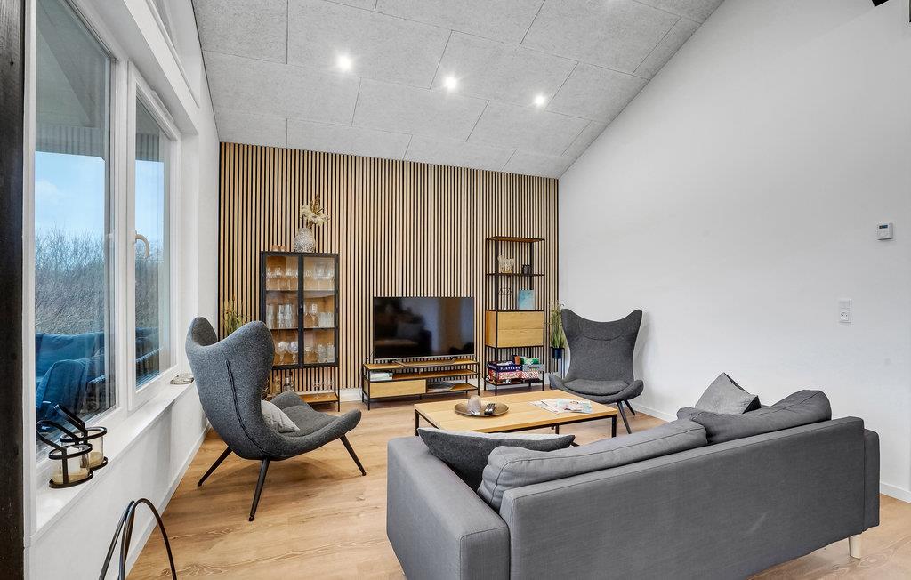Velkommen til Serup Strand og dette hyggelige og smagfulde feriehus, der opfylder alle jeres ønsker. Udover design er der lagt stor vægt på komfort, så man kan forvente et flot lysindfald og en skøn stemning i den høje stue på grund af de store vinduespartier. Sving grydeskeerne sammen i det flotte køkken, spil kort ved spisebordet eller læg fødderne op og se en underholdende film. Efter en aktiv dag i den friske luft er det skønt at slappe af i saunaen. På den overdækkede terrasse kan I starte morgenen med en lækker morgenmad og senere nyde en grillmiddag og slutte dagen af på loungemøblerne, mens jeres børn leger i haven.