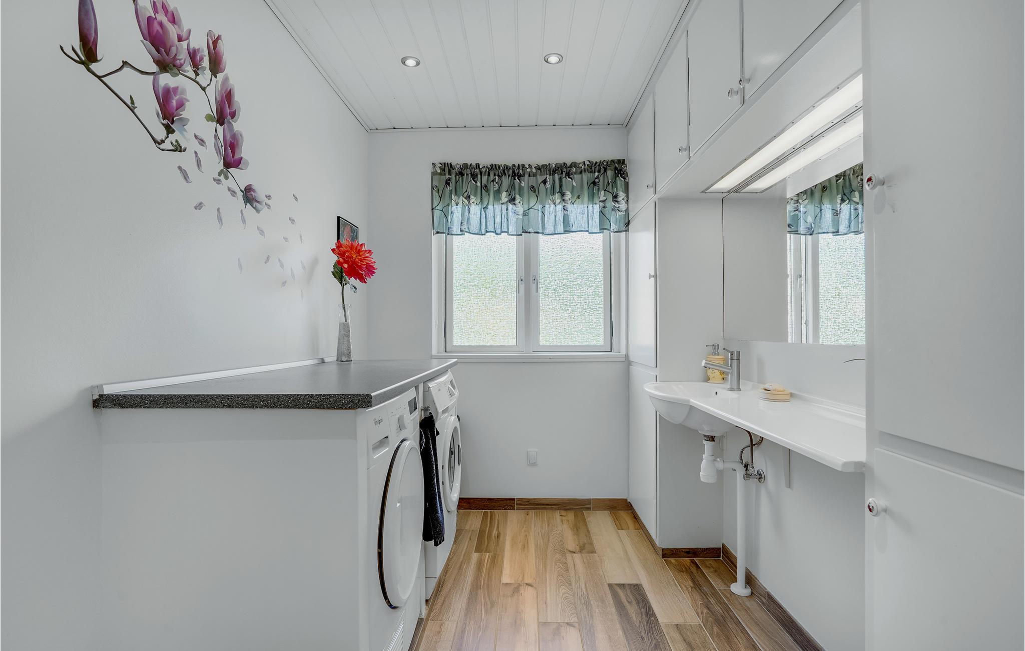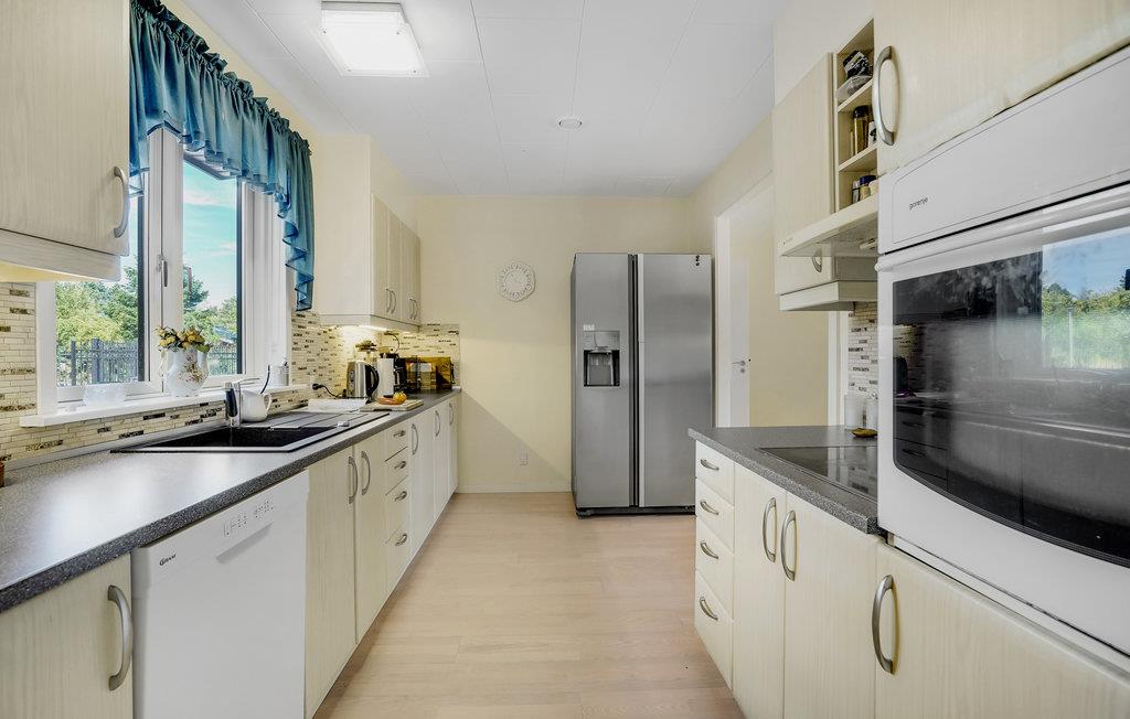 Velkommen indenfor i dette dejlige feriehus med masser af plads og mange, gode faciliteter. Den store stue lægger op til mange hyggelige timer sammen, hvad enten I er til brætspil, hygge foran pejsen eller afslapning i sofaen. Tilbered jeres yndlingsretter sammen i køkkenet. Det amerikanske køleskab har masser af plads og gør det nemt og bekvemt at nyde en kold drink. På den rummelige terrasse kan I spise sammen i det fri eller slappe af på liggestolene. Den store grund lægger op til sjov og leg for store og små på græsplænen.