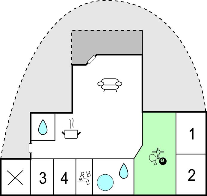 I et nyere feriehusområde og i gåafstand til den familievenlige sandbadestrand ligger dette akttraktive og personligt indrettet luksushus med alt, hvad hjertet kan begære. Det er optimalt og pragtfuldt indrettet med bl.a. et 30 m² stort aktivitetsrum for både voksne og børn indeholdende billard, bordtennis og dart. Der er to flotte badeværelser, hvoraf det ene med stor spa med plads til 3 - 4 pers. og sauna. Den eksklusive stue er smagfuldt møbleret og har en brændeovn. Fra stuen er der udgang til de skønne terrasser, hvor solen kan nydes fra morgen til aften.