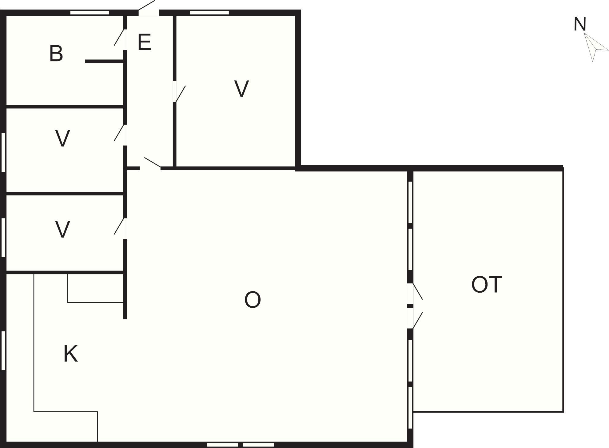 Huset har to soveværelser, åbent køkken-alrum, hyggelig stue med brændeovn og direkte udgang til stor, delvist overdækket terrasse med havemøbler og grill.