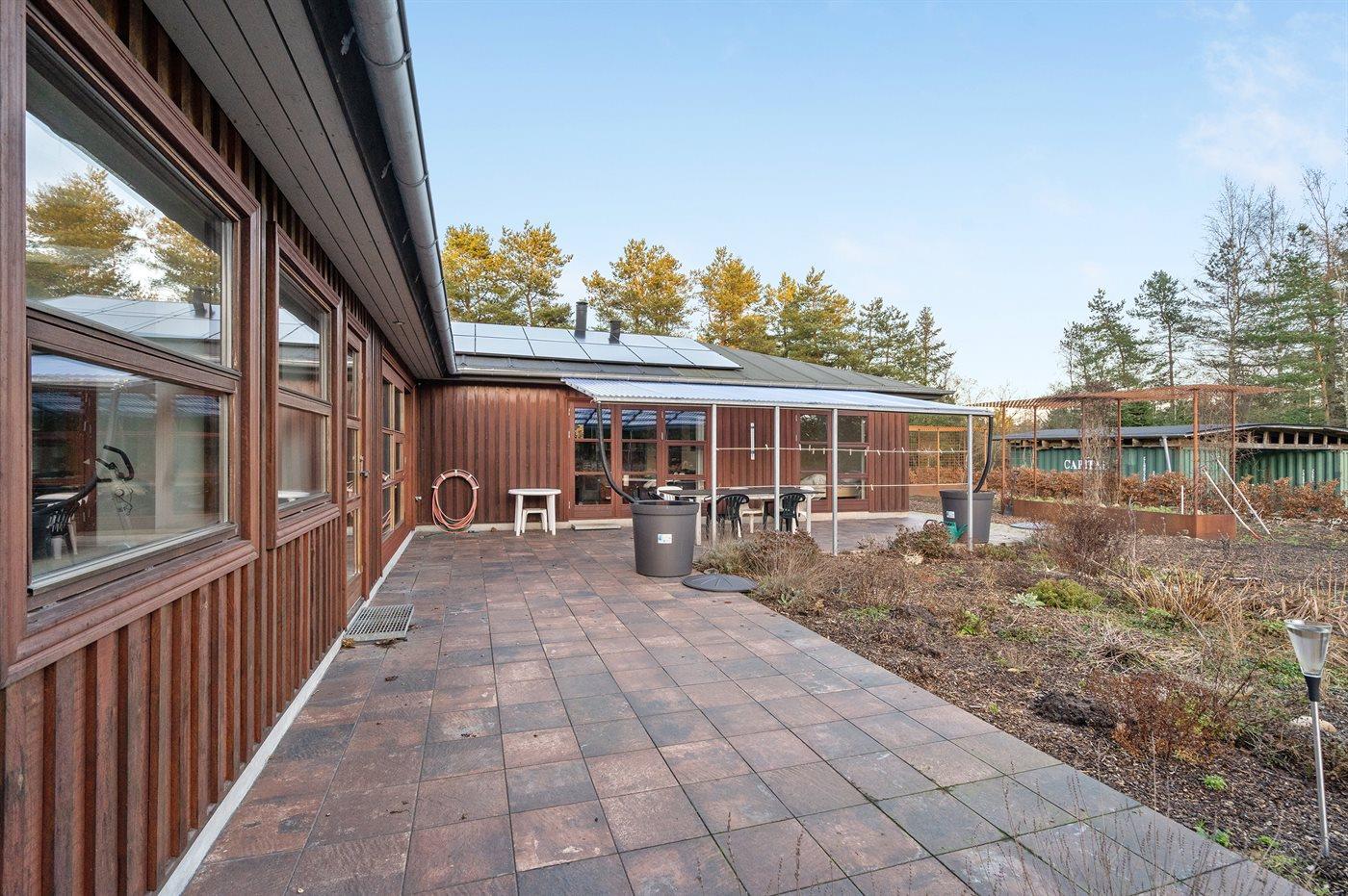Ferieboligen er beliggende på en 4463 m² stor naturgrund. Der er en sø i en afstand af 5000 m. Nærmeste forretning er beliggende i en afstand af 3000 m. Der er en golfbane i en afstand af 4300 m. Til ferieboligen hører åbent og overdækket terrasseareal. Bålfad. Shelter. Gasgrill til rådighed. Der er garage til rådighed. Parkering ved ferieboligen.