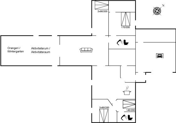 Der er i alt 4 soveværelser. Sovepladserne fordeler sig på: 8 sovepladser i dobbeltsenge.
