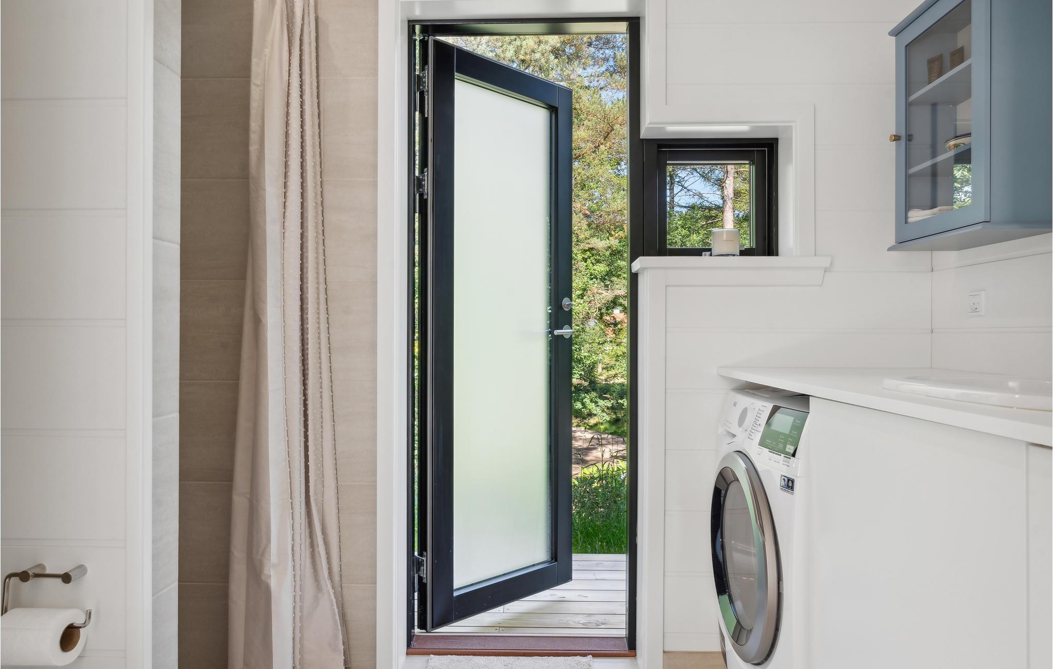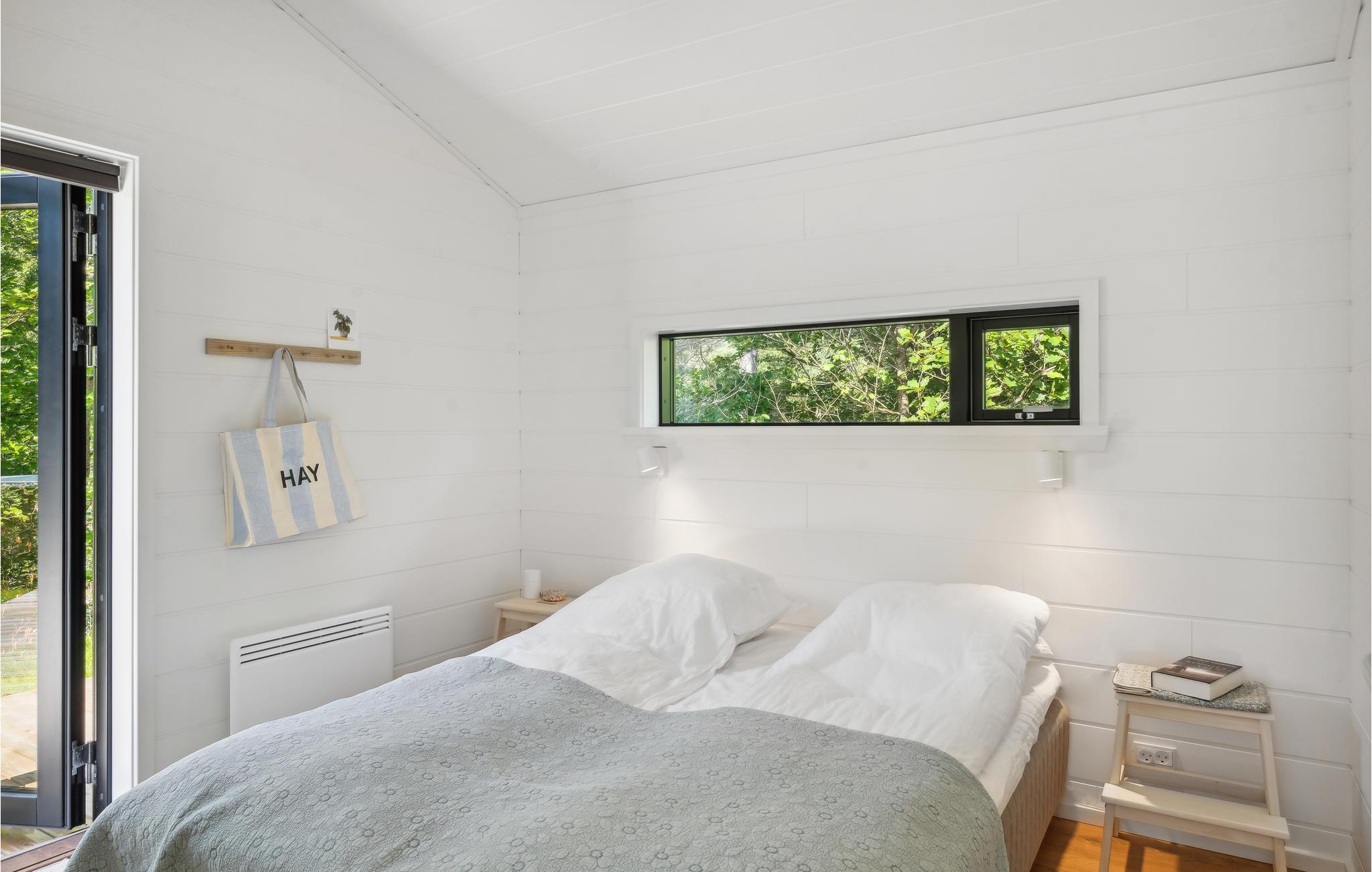 Tilbring en dejlig familieferie i dette moderne og attraktive feriehus. Her vil I uden tvivl føle jer hjemme, og i den store stue venter sjovt samvær og nærvær. Herfra har I ikke kun en fantastisk udsigt over haven gennem panoramavinduerne, men I kan også fremtrylle lækre retter i det åbne køkken eller hygge jer med en god film og snacks om aftenen. Den store træterrasse bliver jeres anden stue og indbyder til solbadning, grillaftener og afslappet tilbagelænen med en drink i hånden. Lyt til fuglenes sang fra trætoppene, mens I mærker roen i vildmarksbadet, og se jeres børn lege gemmeleg i haven.