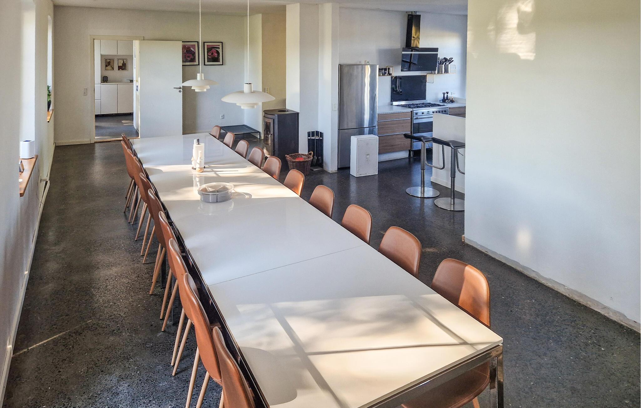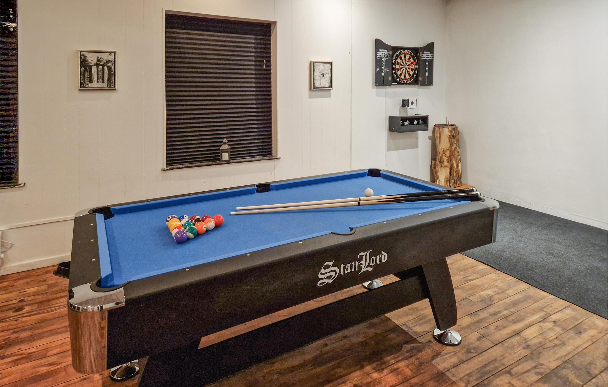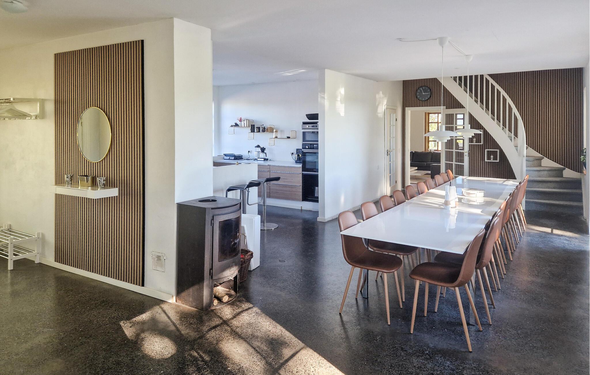 Dette rummelige hus danner den perfekte ramme om en uforglemmelig ferie for flere familier eller en stor vennegruppe. Læn jer tilbage i den hyggelige sofagruppe, eller nyd behagelige aftener med fælles måltider ved det lange spisebord. Dyst i billard, på PlayStation eller Nintendo Wii. Saunaens beroligende varme byder på rolige øjeblikke.